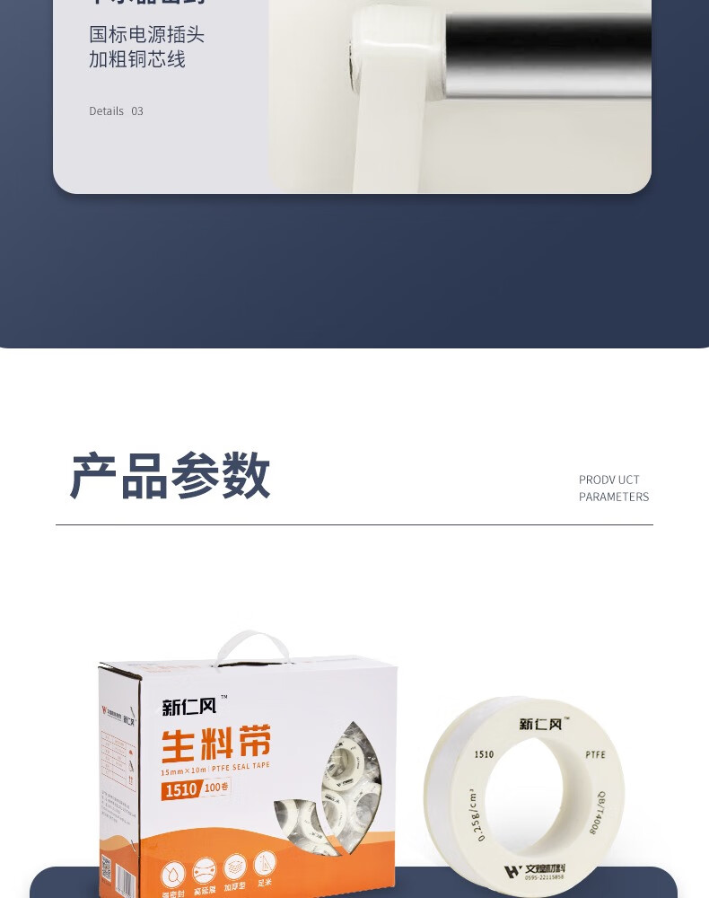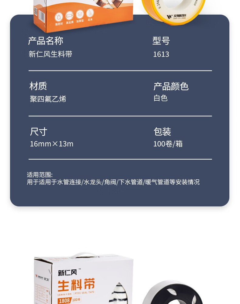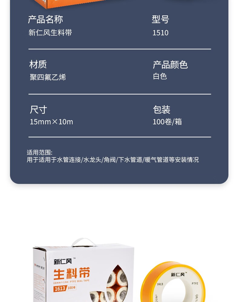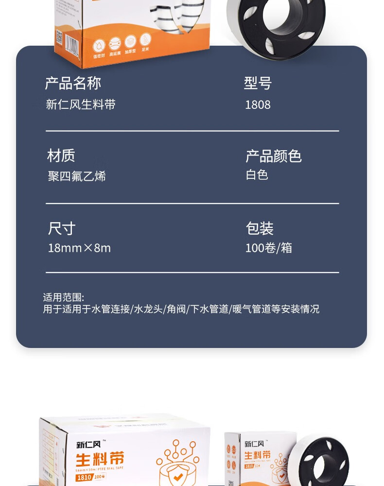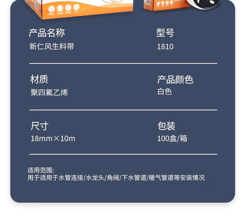 Xinrenfeng raw material tape raw tape sealing tape PTFE high temperature resistant water pipe faucet thickened waterproof 1810 raw material tape 3 rolls