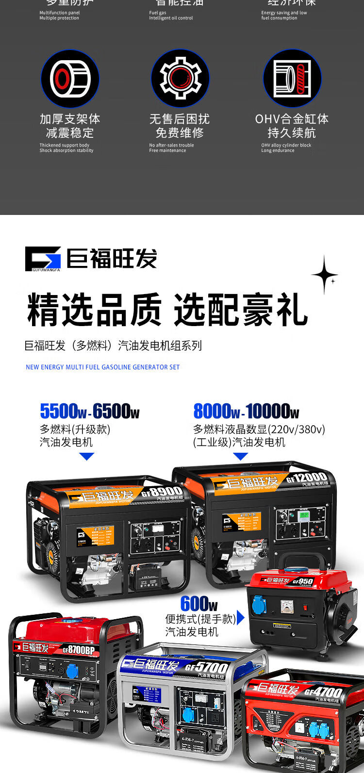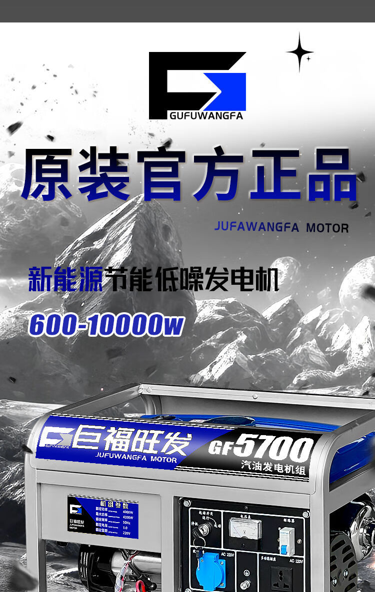 Wen Yijia gasoline generator 220V household small single-phase 4KW/5/6/8/10 kilowatt three-phase electricity 380V 4000W flashlight dual start burning gasoline 220V