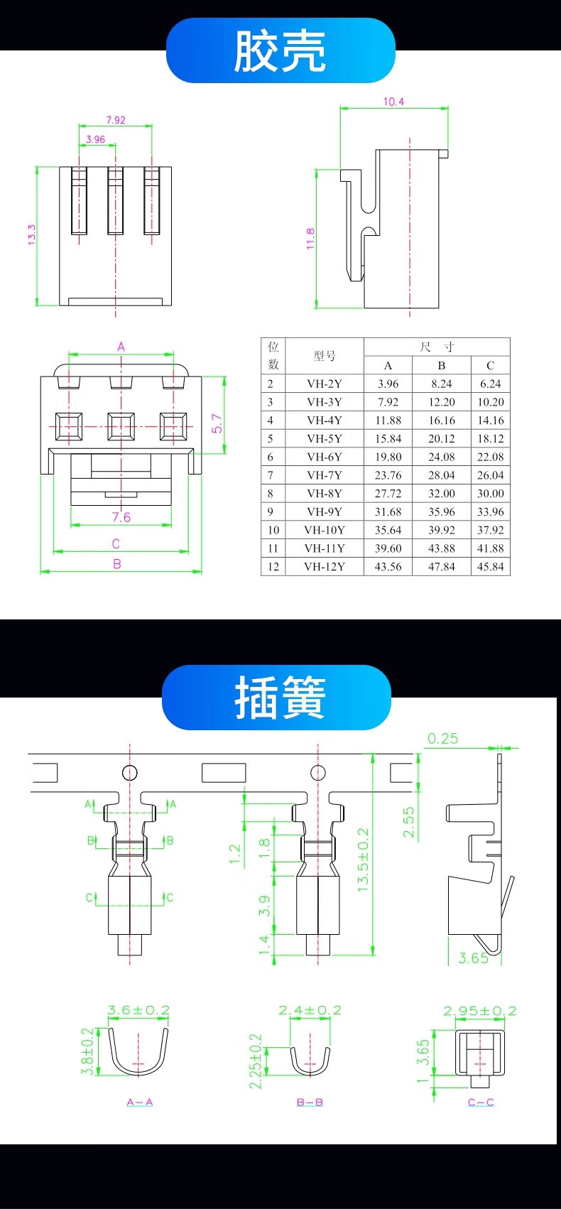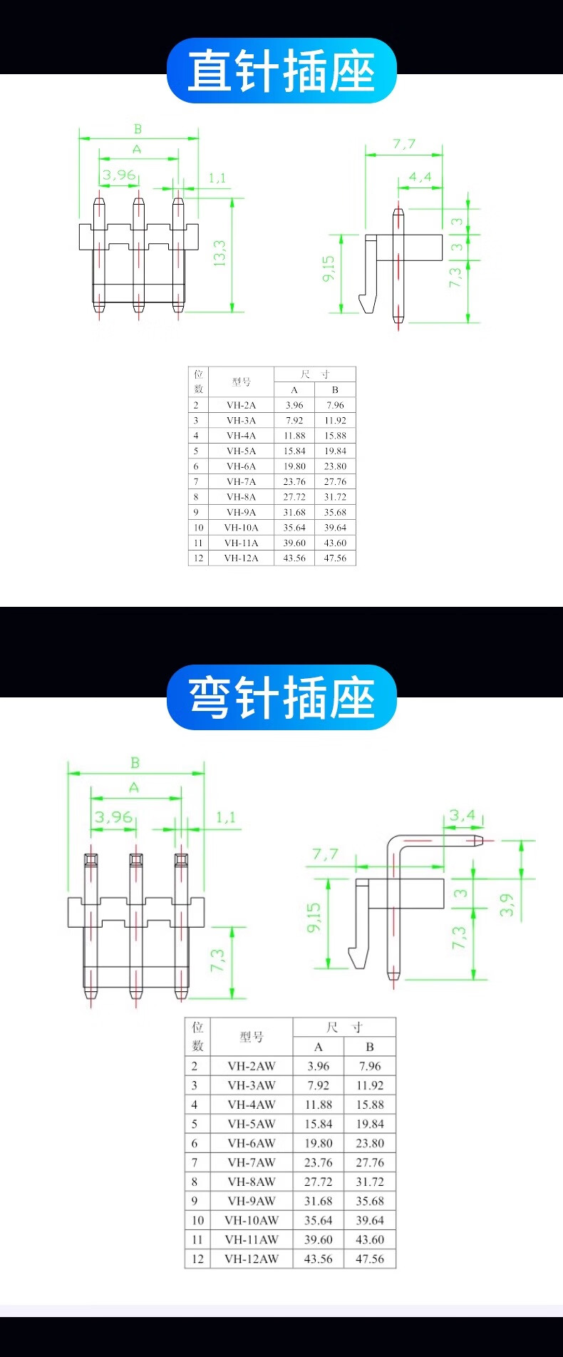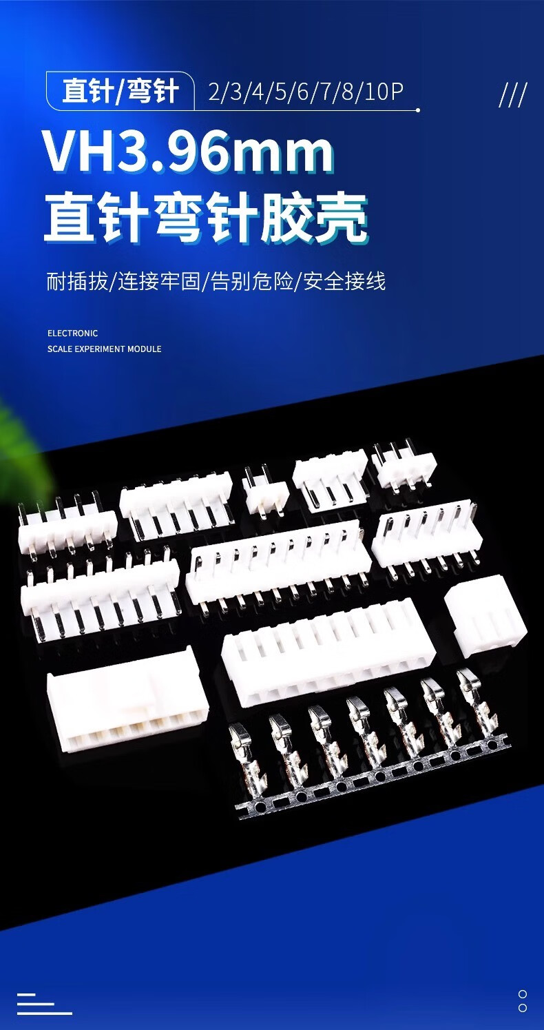 VH straight needle curved needle rubber shell 3.96mm pitch 2/3/4/5/6/7/8/10P female plug socket connector VH3.96mm (100 pieces)