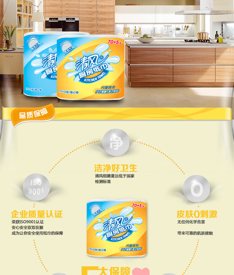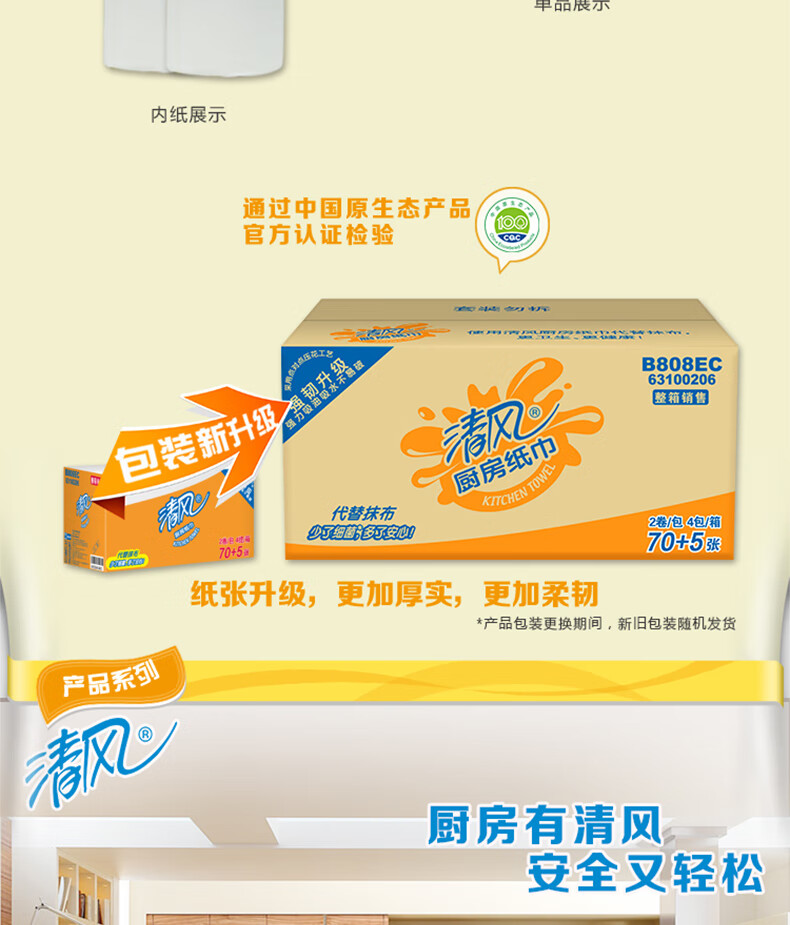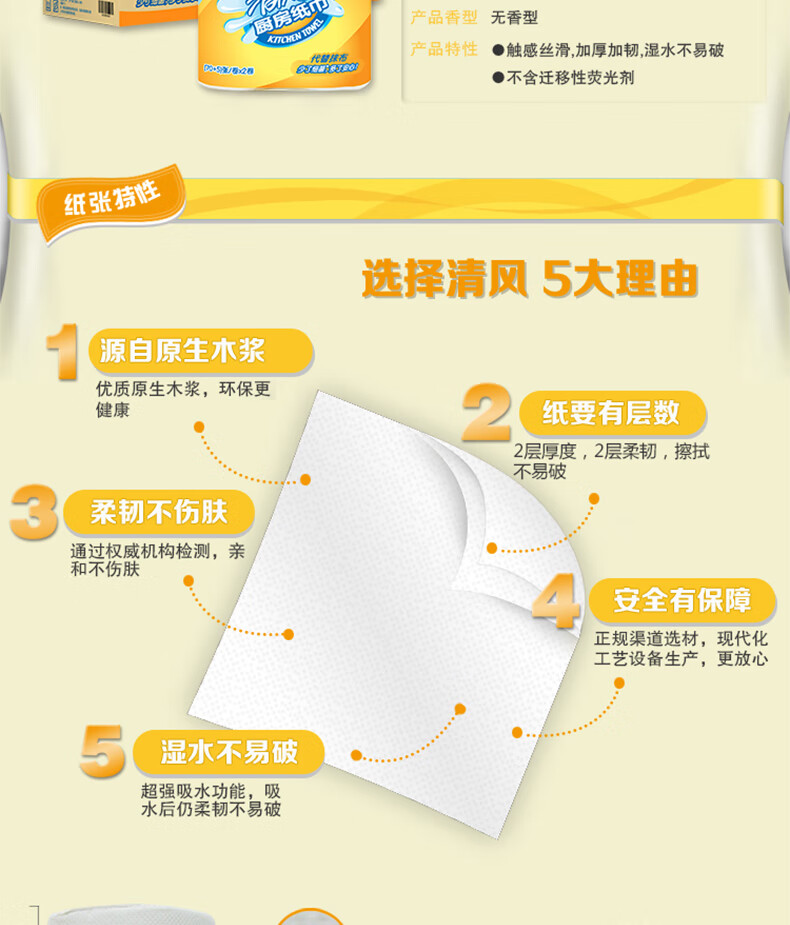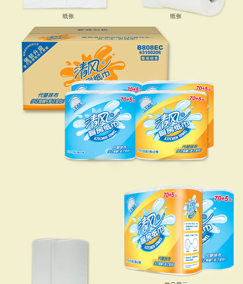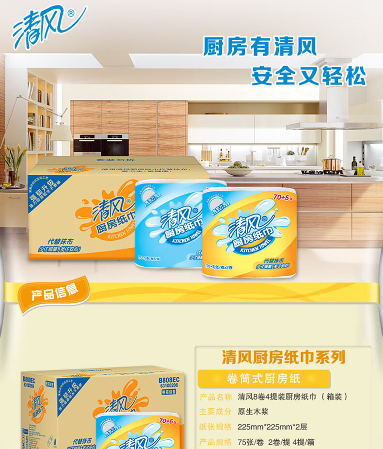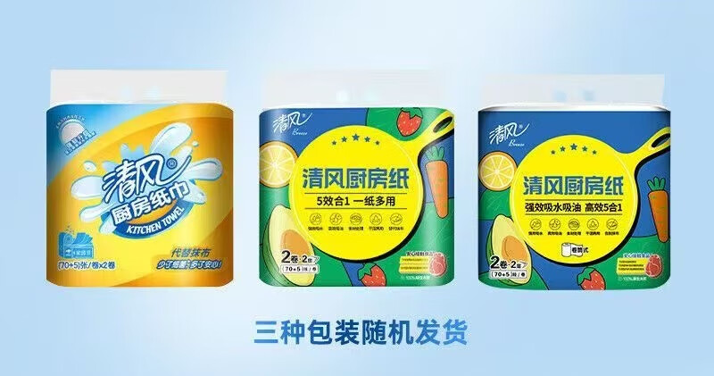 Qingfeng kitchen paper kitchen roll 75-section oil-absorbing and water-absorbing frying paper cooking special for home kitchen 4 packs 8 packages 2 1 layer 1 pack*2 packs
