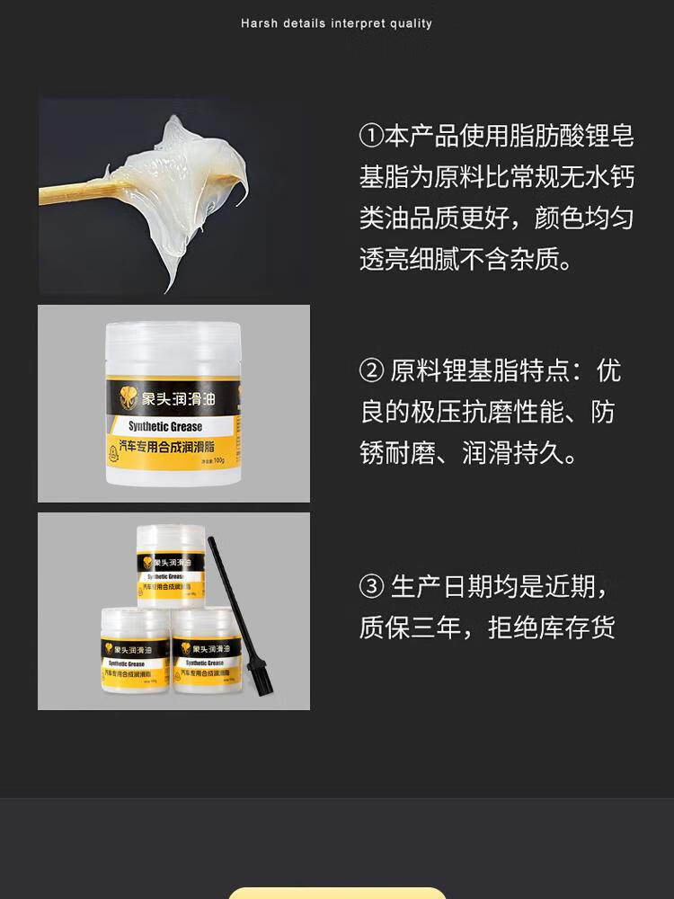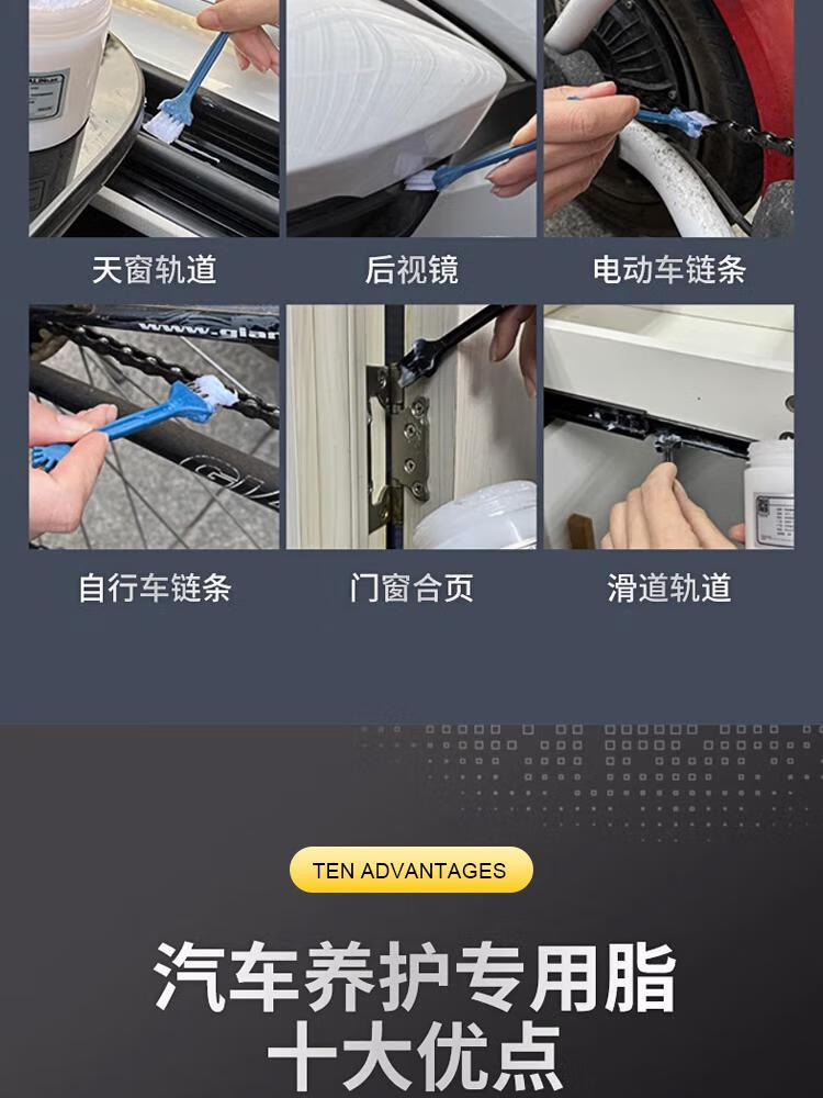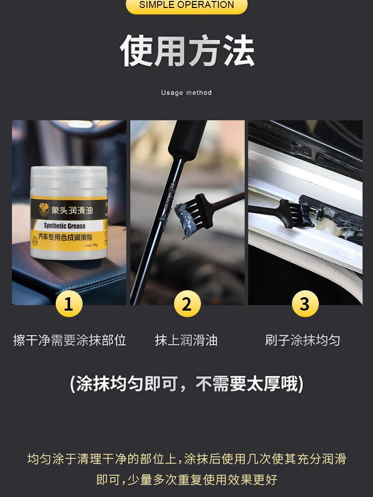 Car special maintenance grease, door sunroof lubricant, hinge slide maintenance track, stuck and abnormal noise white oil, elephant head grease 100g three bottles, free brush, car special