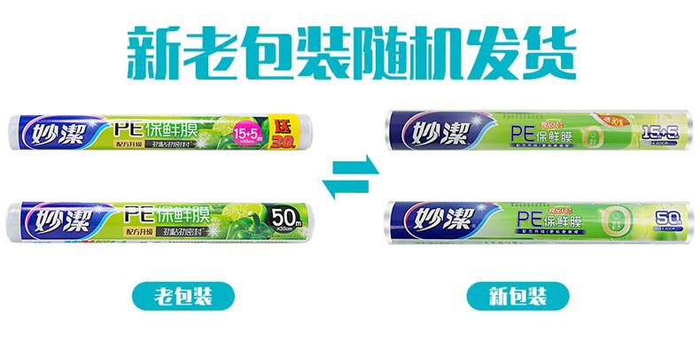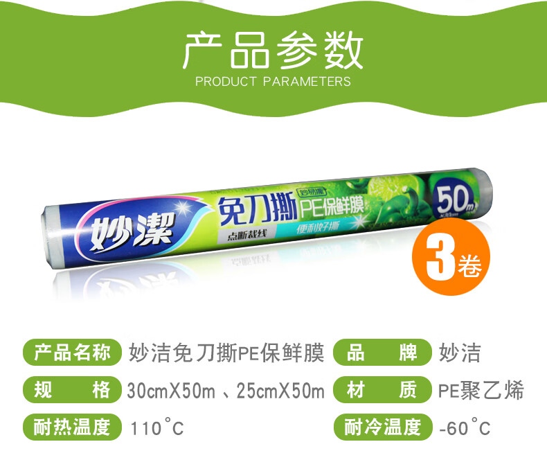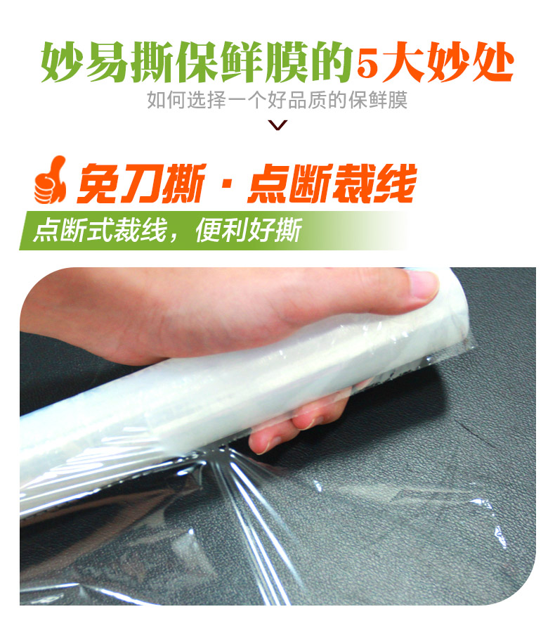 Miaojie cling film point-breaking PE food-grade household kitchen refrigerator microwave oven knife-free disposable food use small size 20cm*100 meters total 1 roll