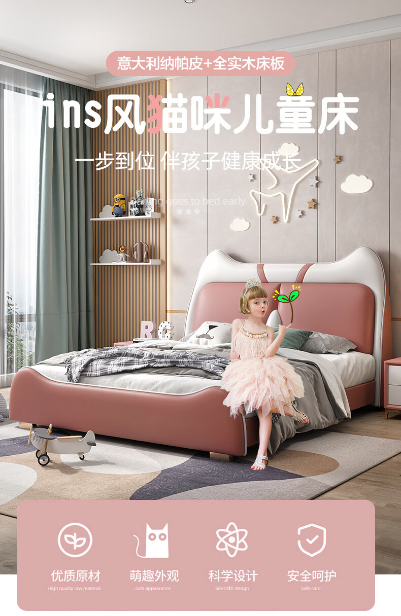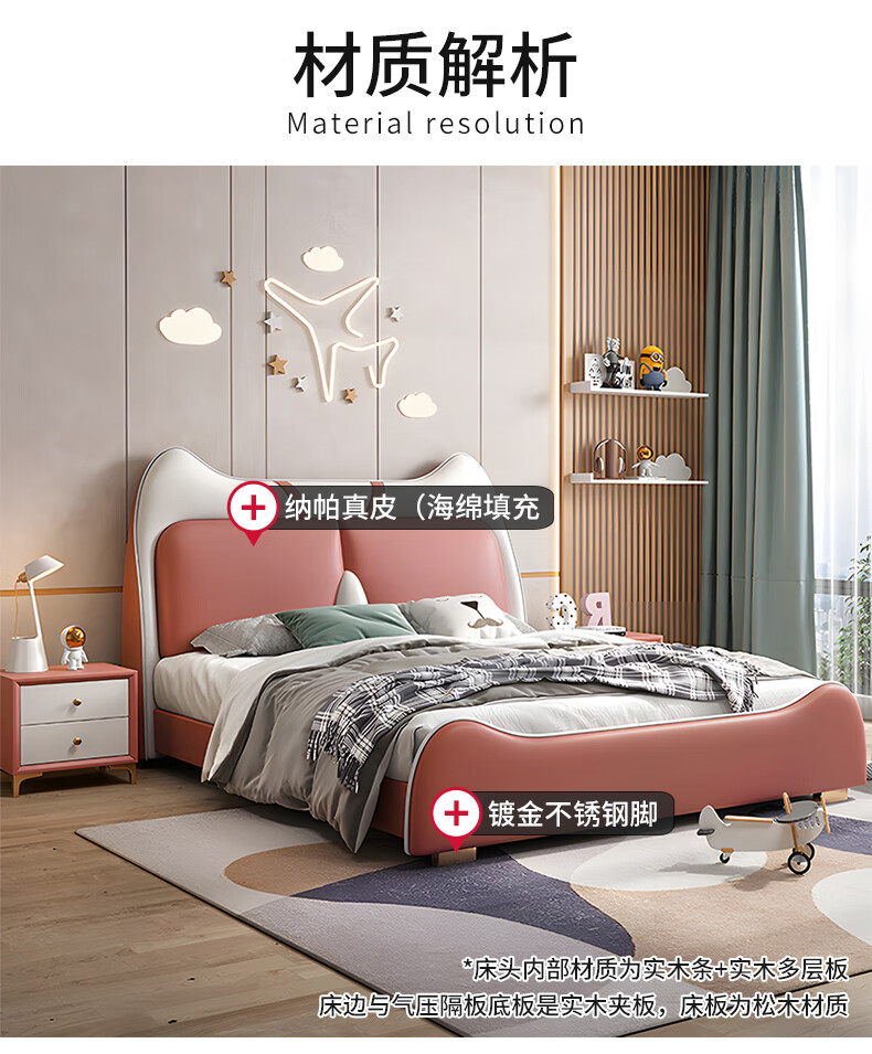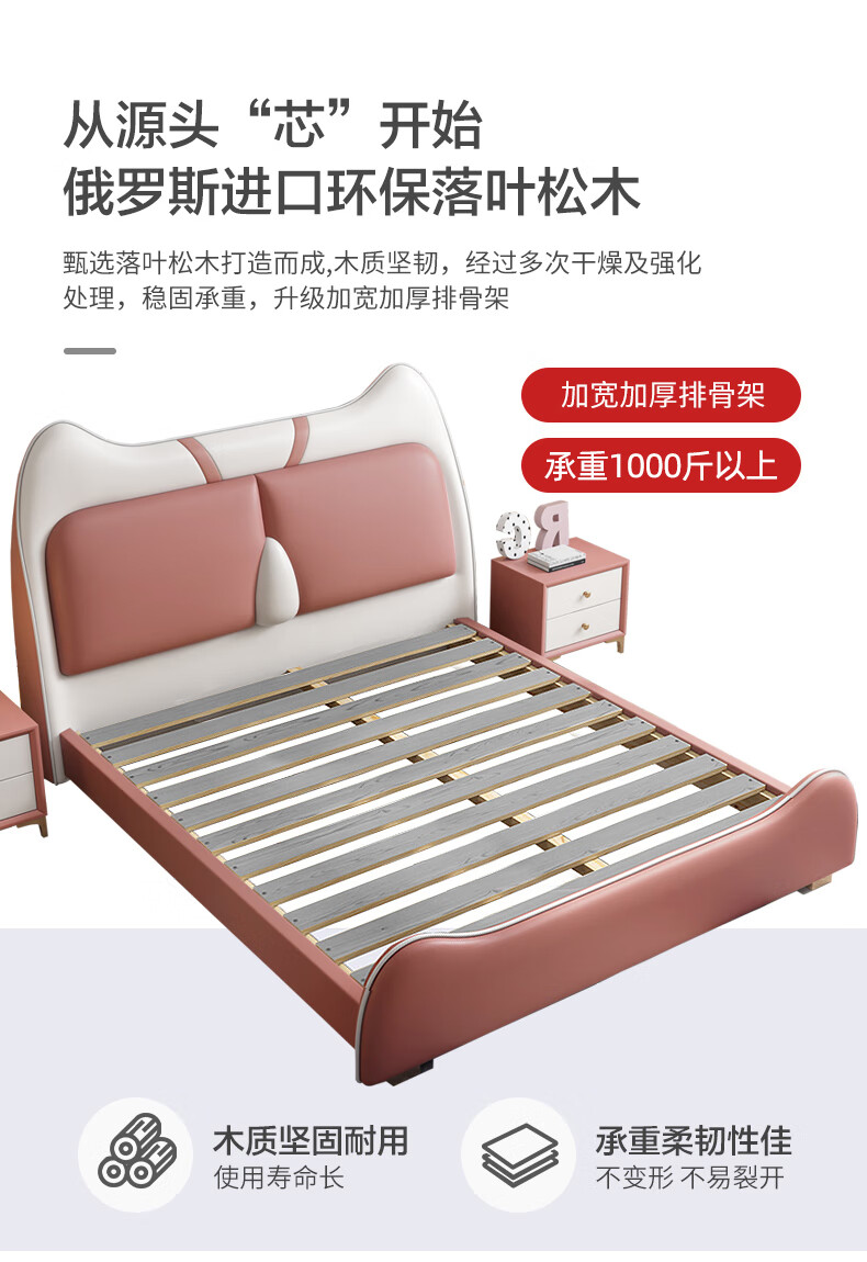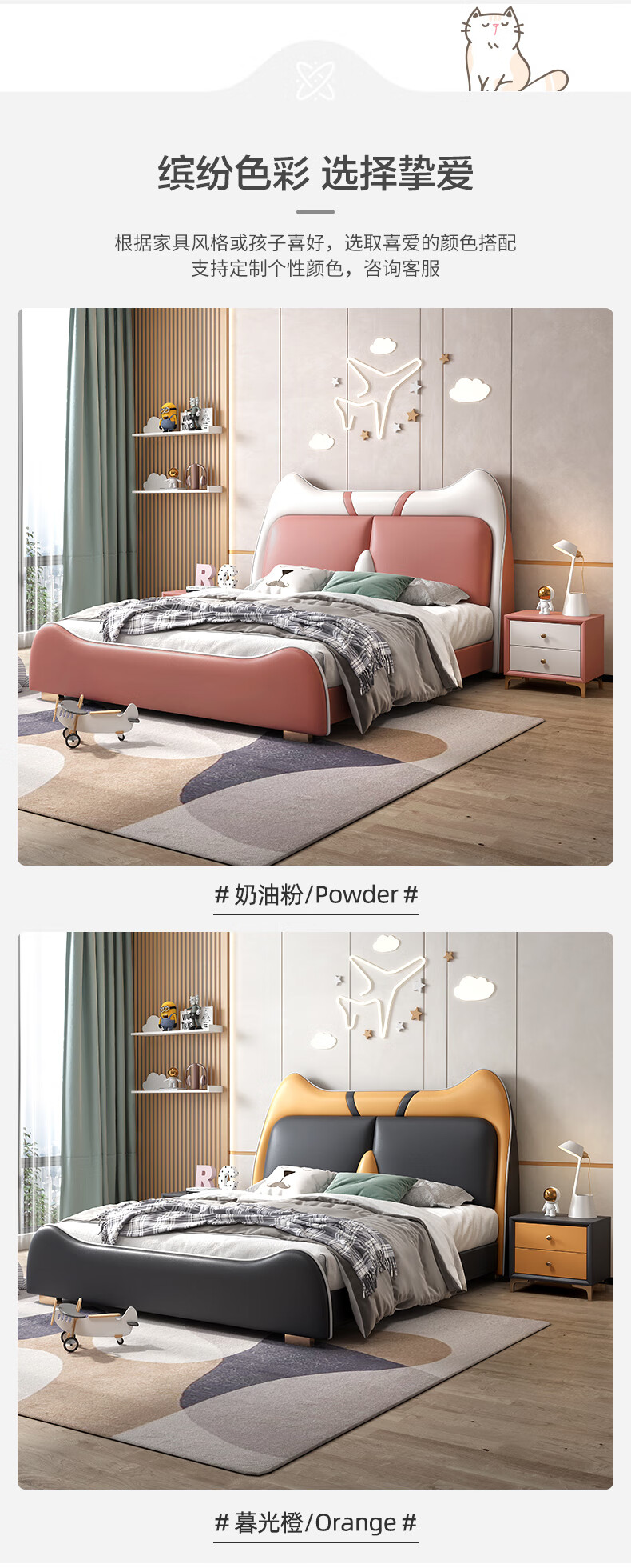 Jingxifu Children's Bed Double Bed Boy Light Luxury 1.5 Meter Leather Bed Teenage Girl Modern Simple Princess Single Bed Single Bed Please Note Color - Delivery to Home 1500mm*2000mm Frame Structure