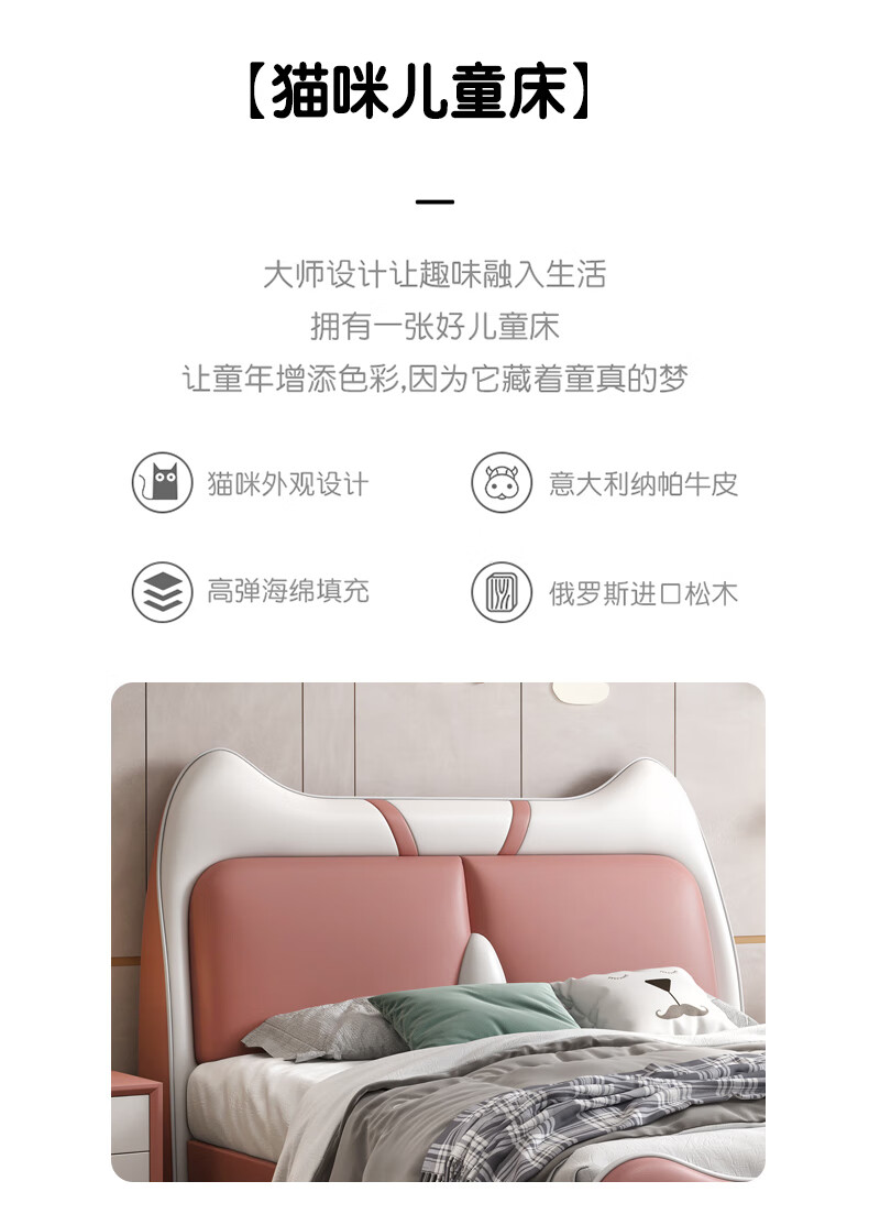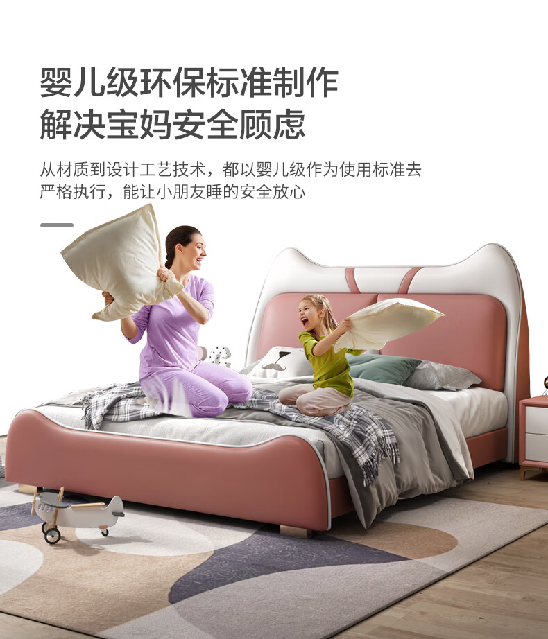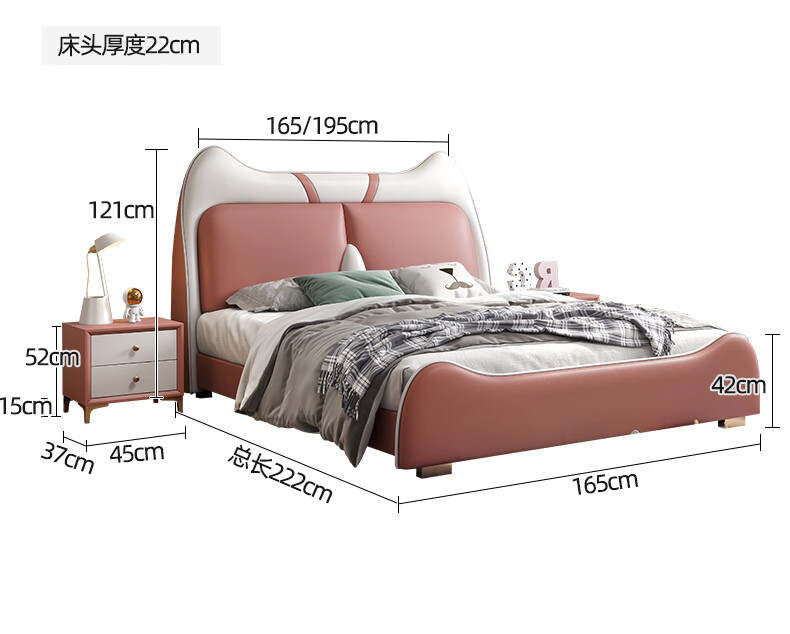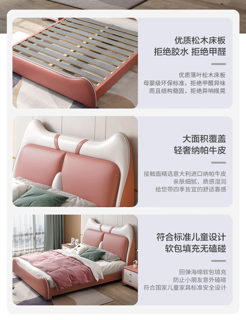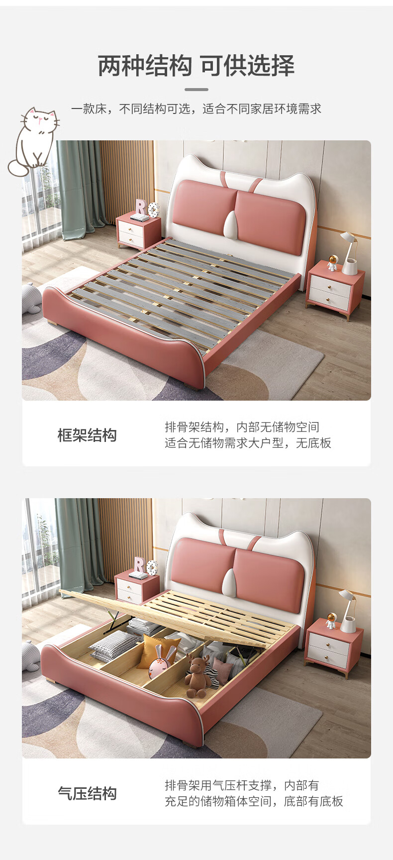 Jingxifu Children's Bed Double Bed Boy Light Luxury 1.5 Meter Leather Bed Teenage Girl Modern Simple Princess Single Bed Single Bed Please Note Color - Delivery to Home 1500mm*2000mm Frame Structure