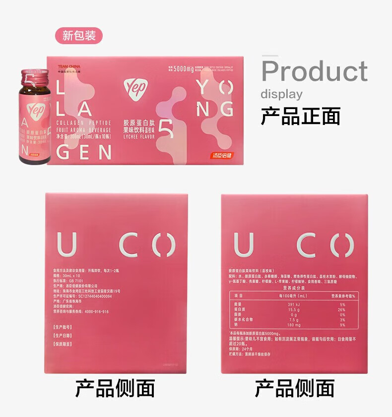 BYHEALTH collagen peptide oral liquid protein peptide small molecule peptide yep small powder bottle collagen drink gift box for girlfriend 5g collagen 10 bottles * 1 box (lychee flavor)
