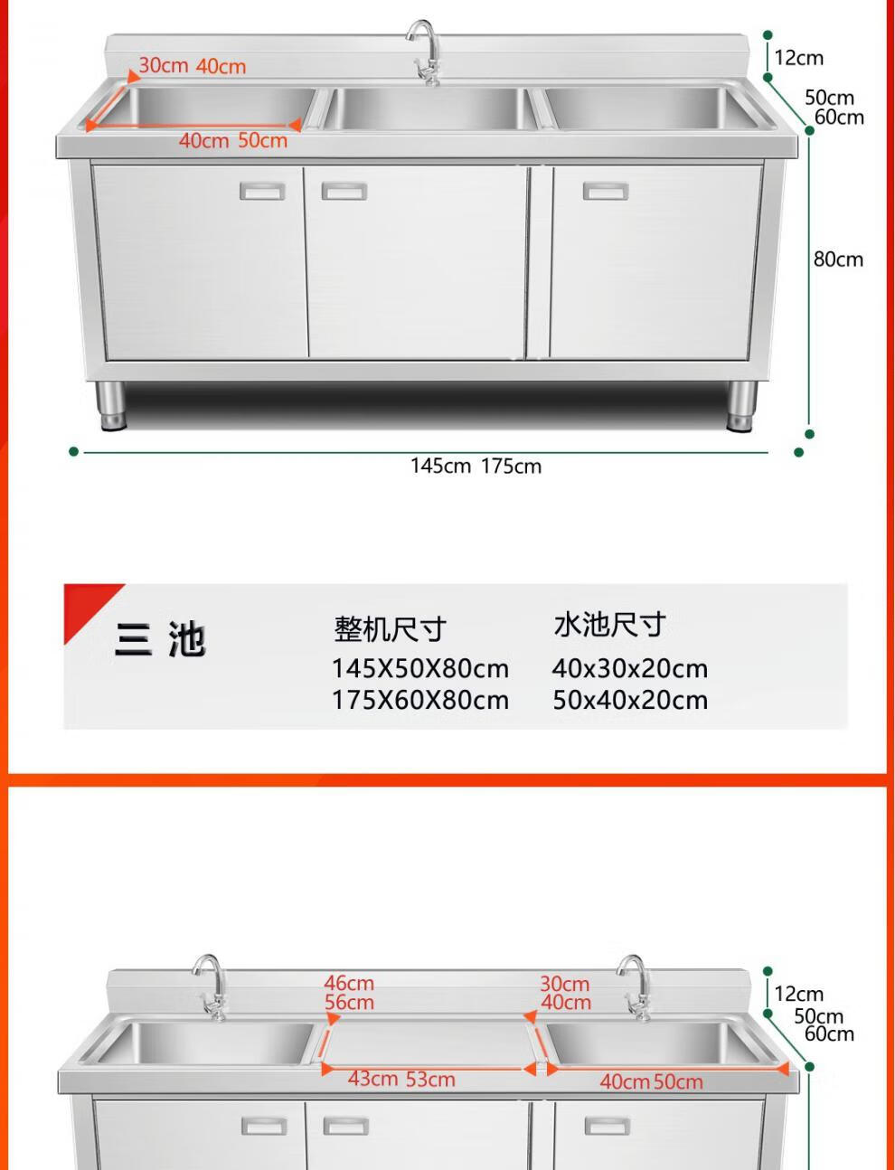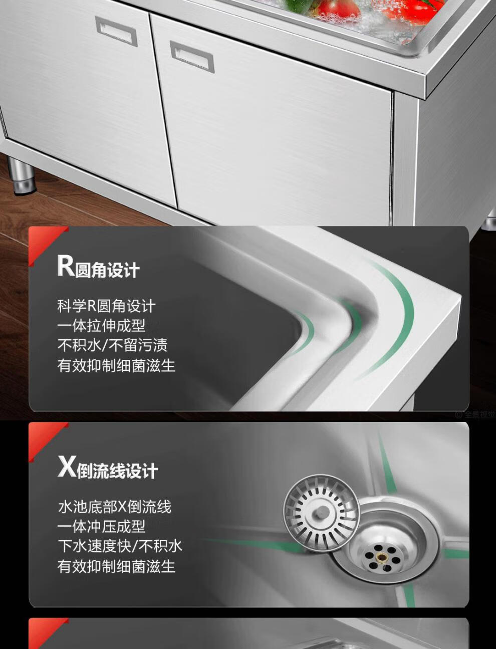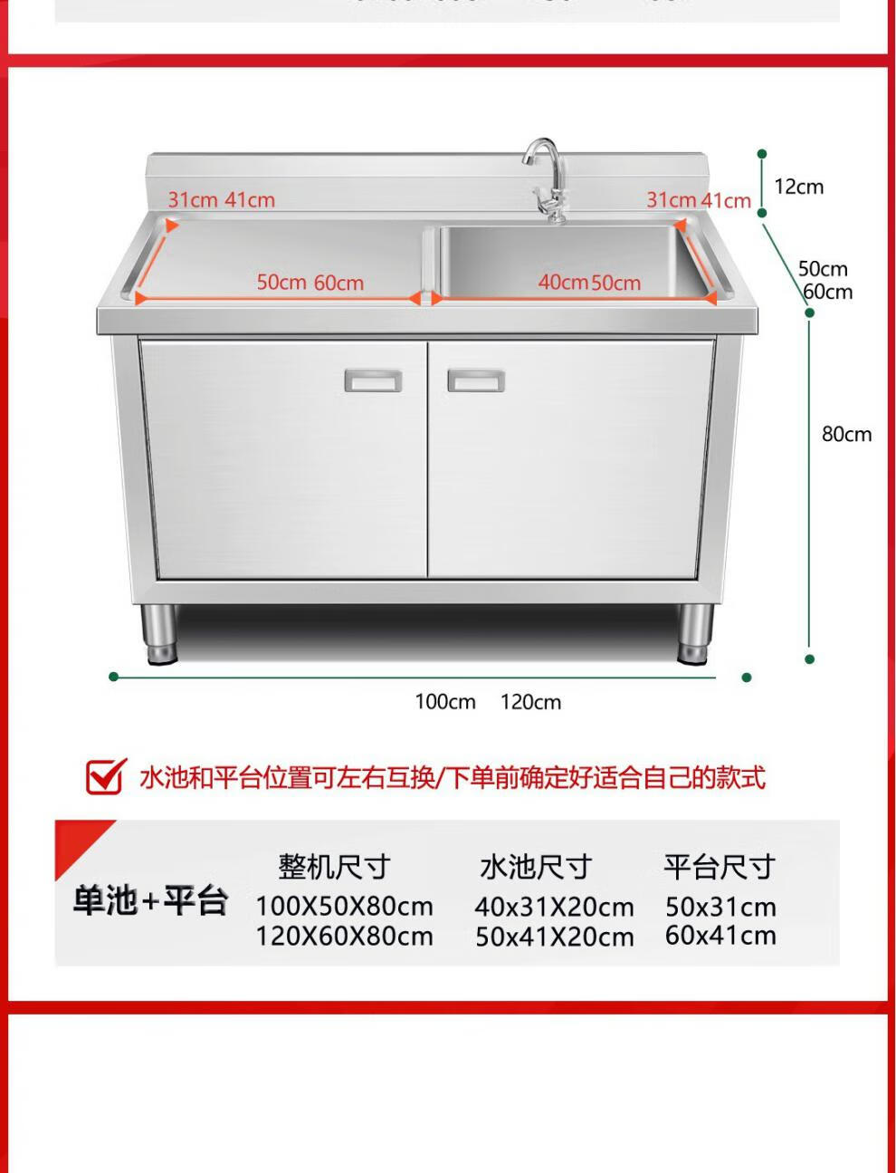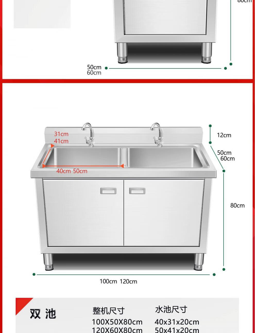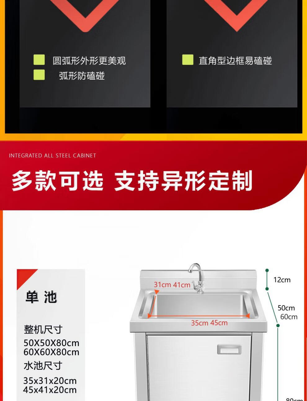 Yeyu stainless steel commercial sink cabinet integrated sink cabinet kitchen cabinet dishwashing integrated household dishwashing pool 50*50 single pool thickened