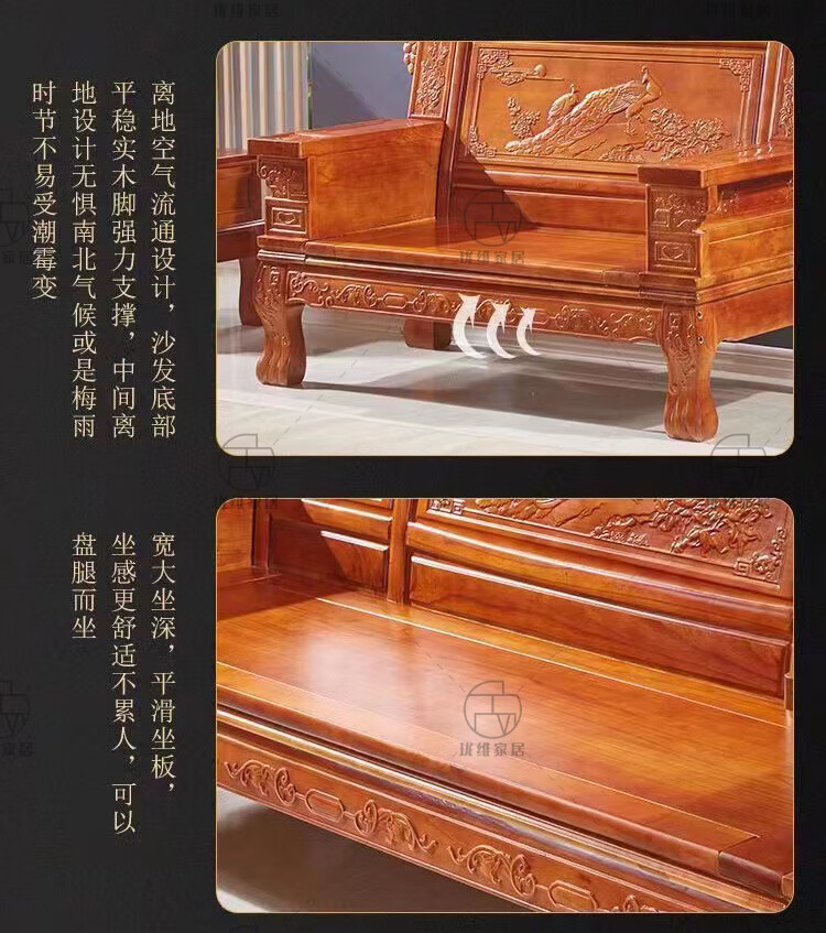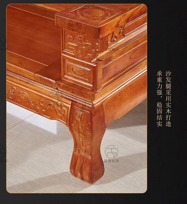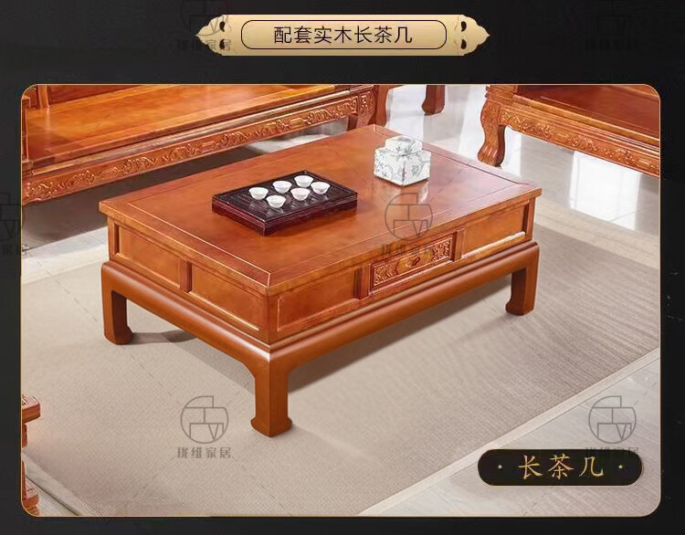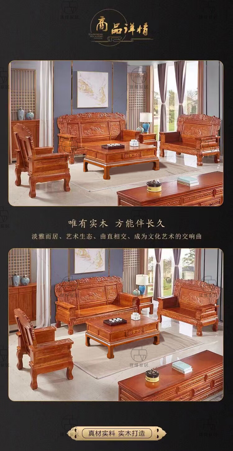 Longwei Foshan rosewood solid wood sofa combination Ming and Qing classical carving Chinese style mortise and tenon joint winter and summer living room furniture 1+2+3+coffee table+side table+TV cabinet