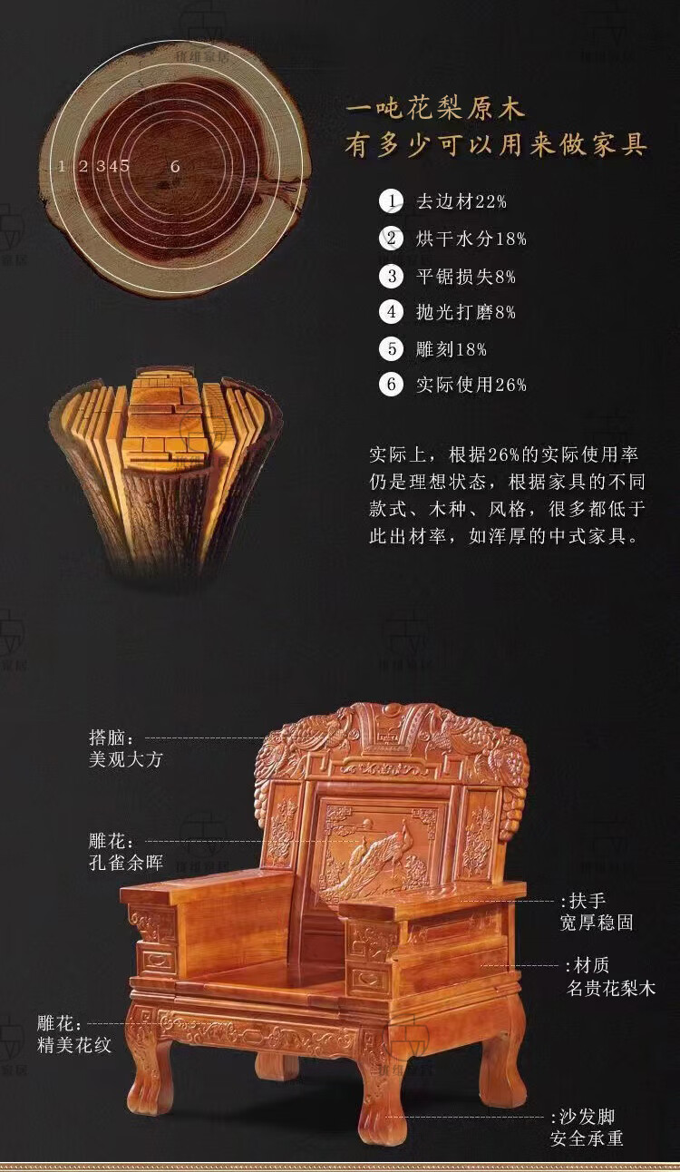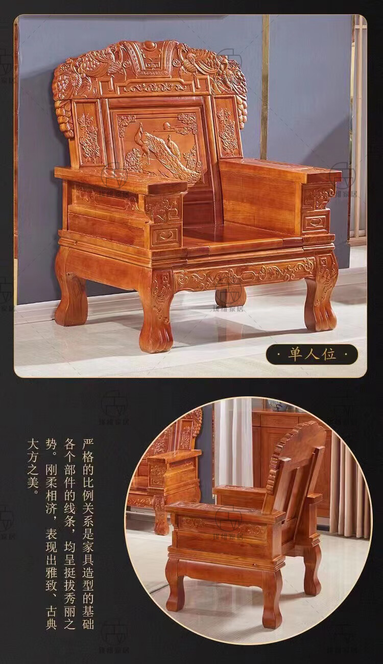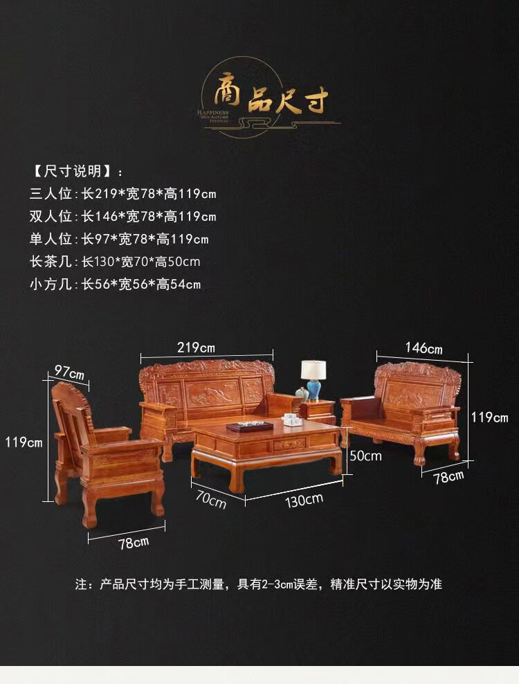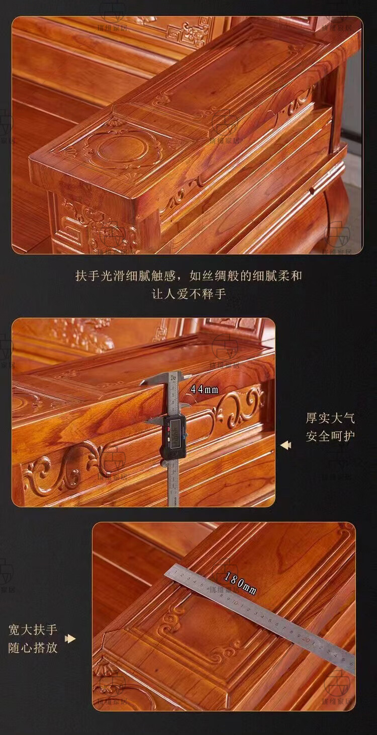 Longwei Foshan rosewood solid wood sofa combination Ming and Qing classical carving Chinese style mortise and tenon joint winter and summer living room furniture 1+2+3+coffee table+side table+TV cabinet