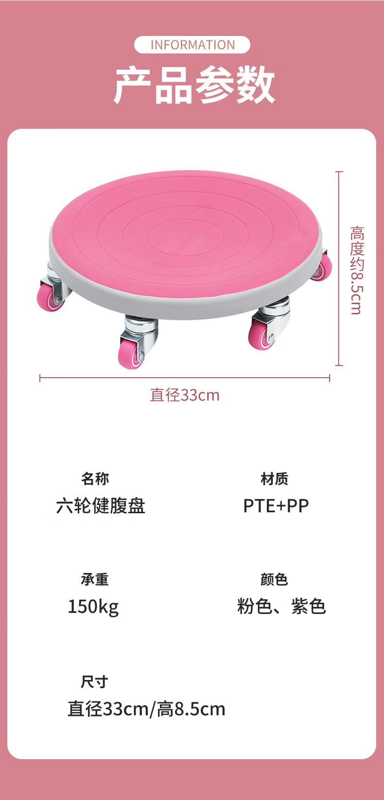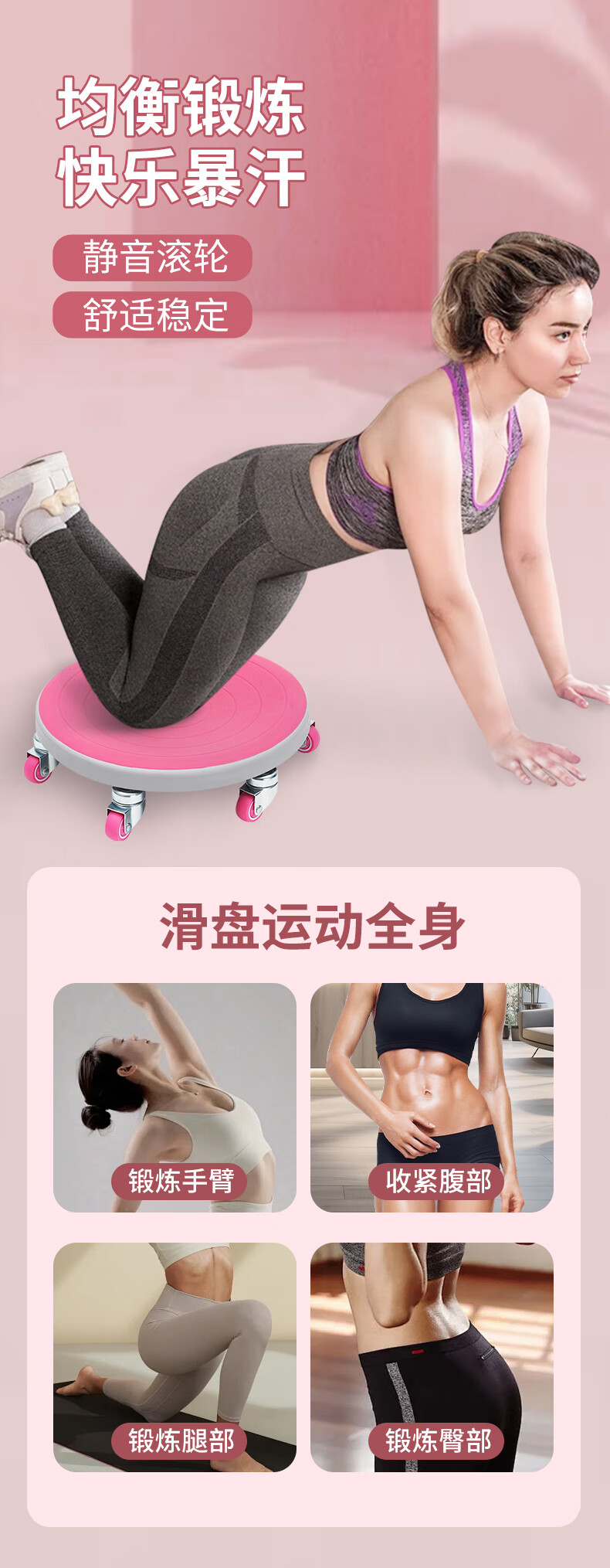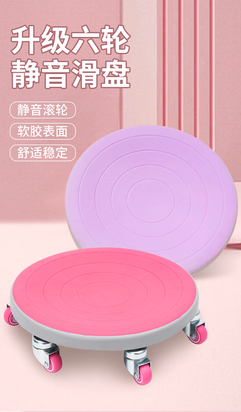 Sliding disc fitness silent six-wheel second-generation universal wheel abdominal muscle training home core strength trainer Sakura Pink-six wheels + extra large and thick (50*40*6cm) support pad