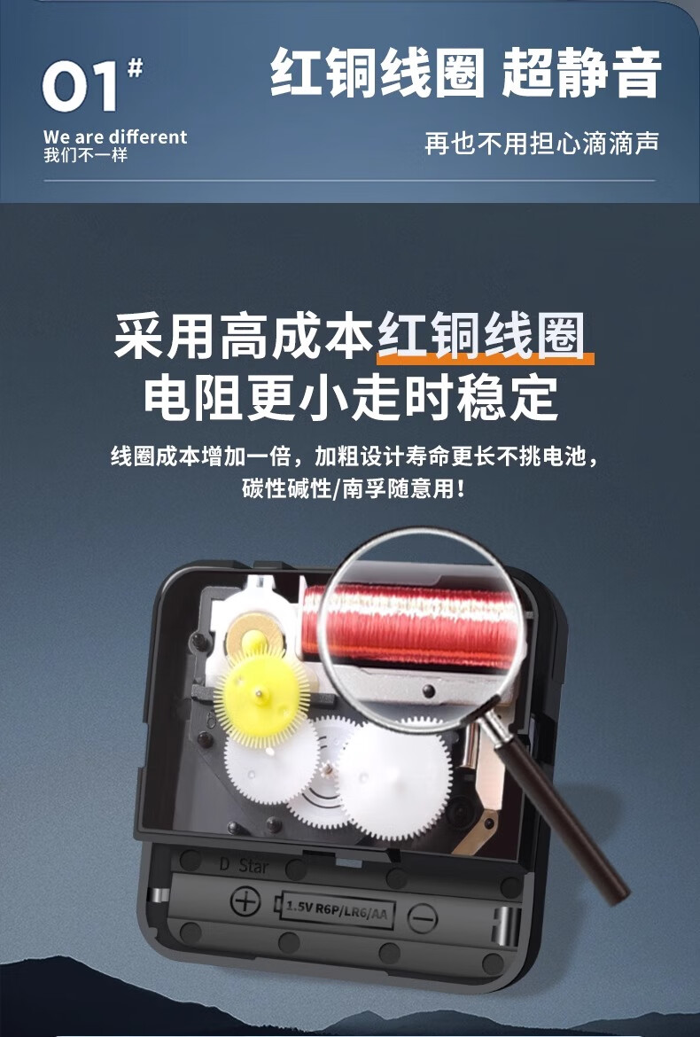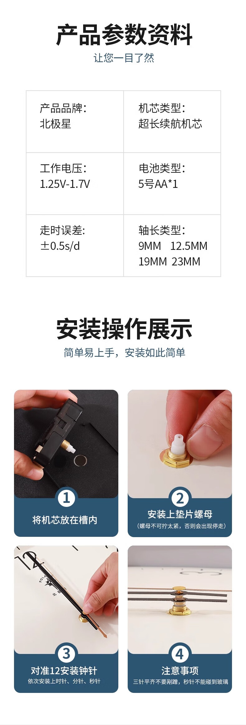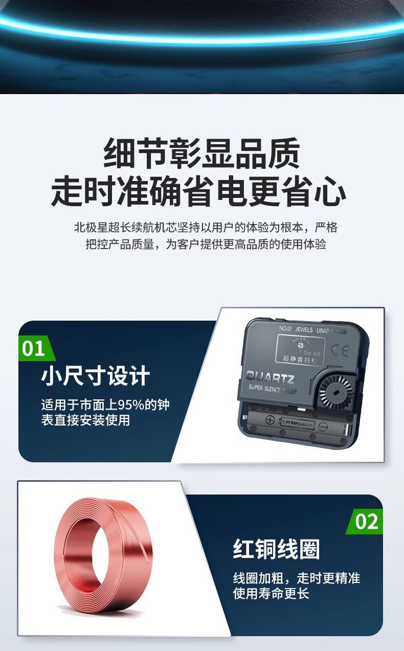 POLARIS clock movement, quartz clock movement, long battery life, silent sweep second wall clock, cross-stitch movement, living room decoration, separate movement (no hands), universal original factory, ultra-quiet and energy-saving