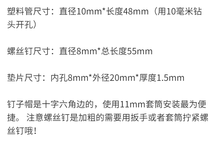Ye Yu LCD TV mount expansion screws thickened plastic expansion tube nails TV bracket expansion thickening screws 10mm plastic tube 8mm screws-8 sets