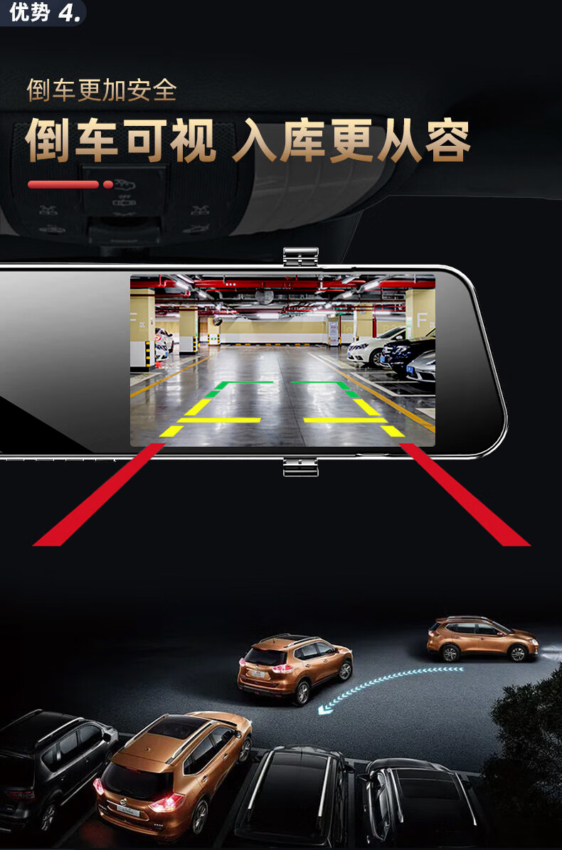 Renwoyou (GOU) driving recorder for car and cargo, front and rear dual-camera reversing image, high-definition night vision, 360 panoramic view, installation-free wiring, ultra-clear mobile Internet version, 4k+64G card, dual lens