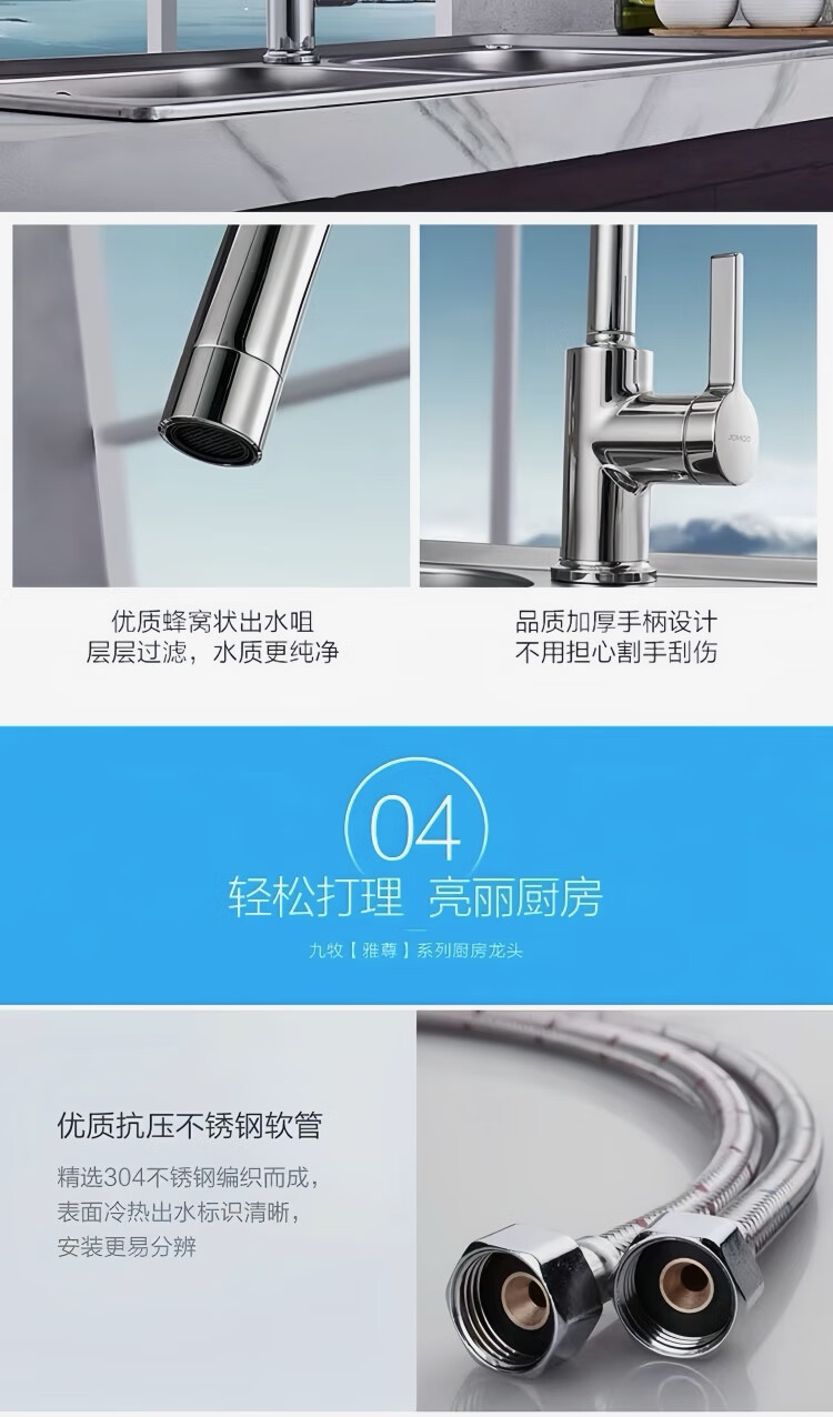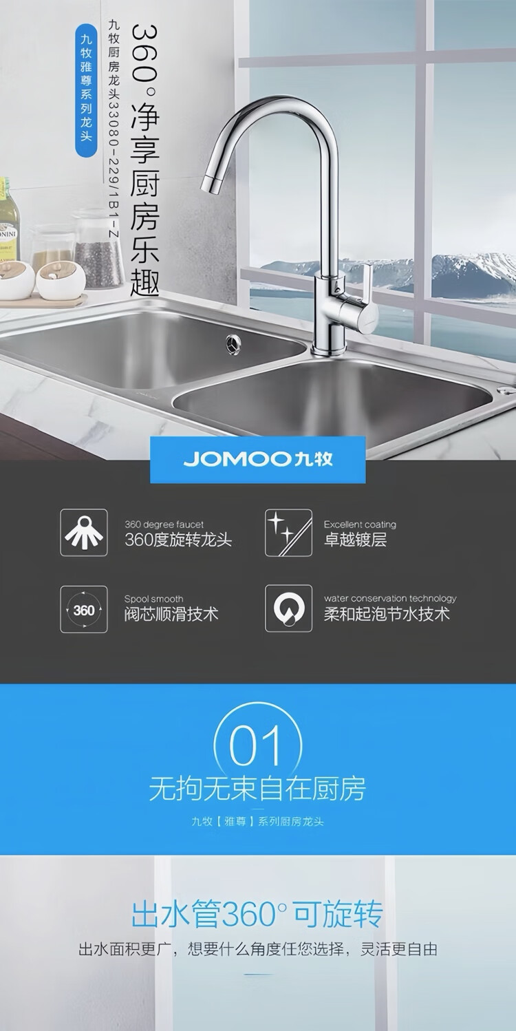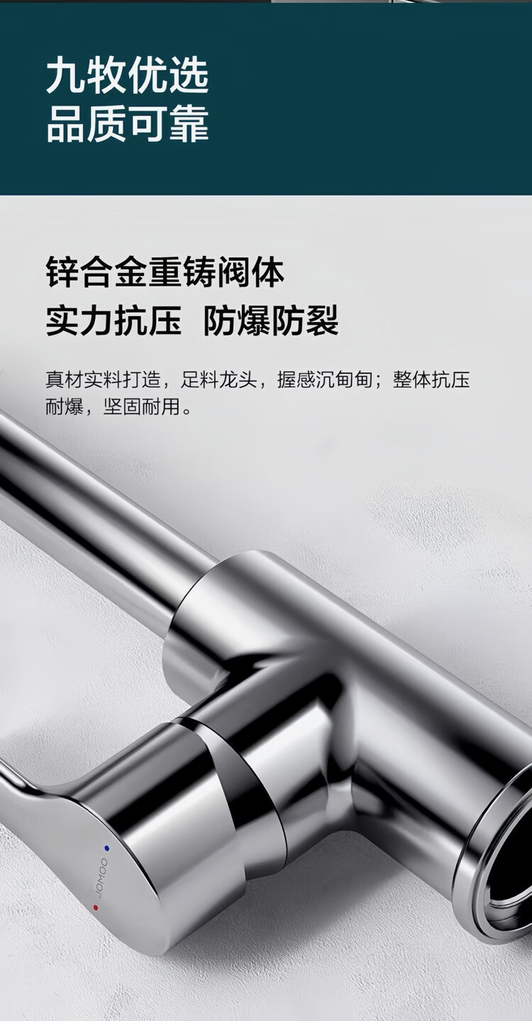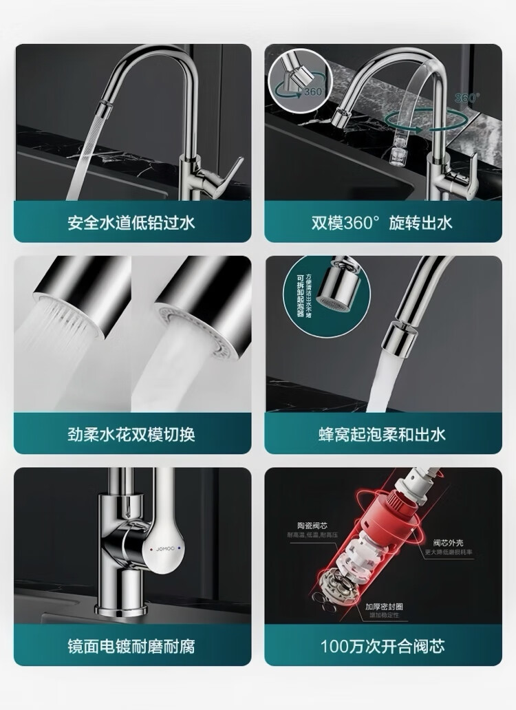 Jomoo stainless steel faucet hot and cold water dual-purpose universal rotating sink faucet single handle single hole 33080 anti-splash 33080 universal rotating faucet - free 60cm hose