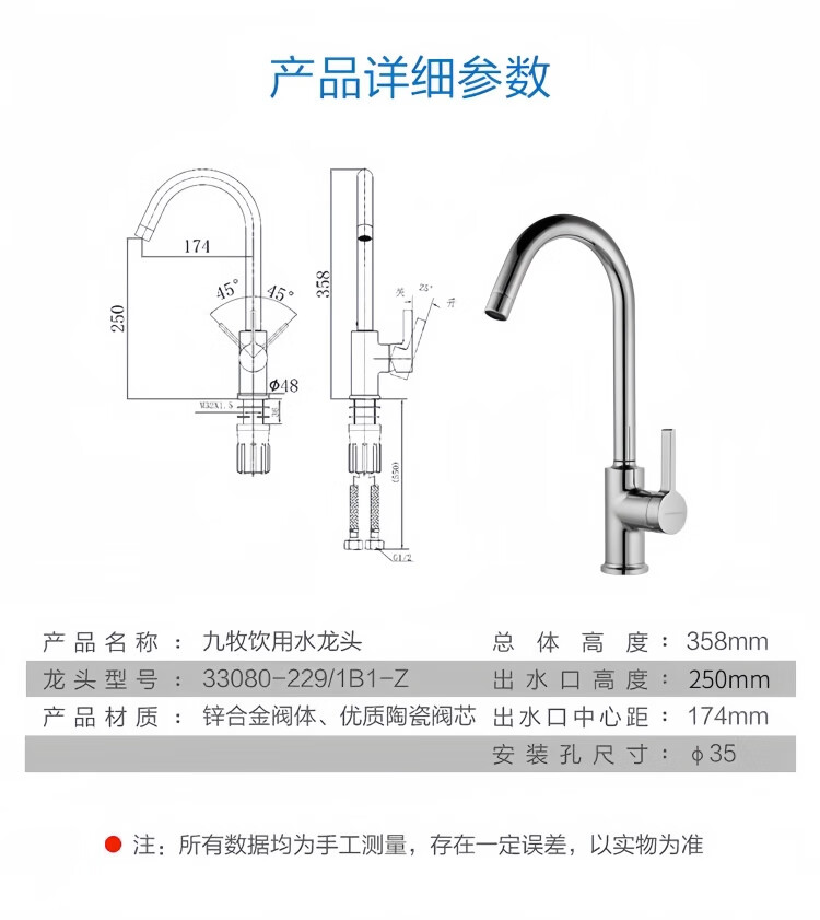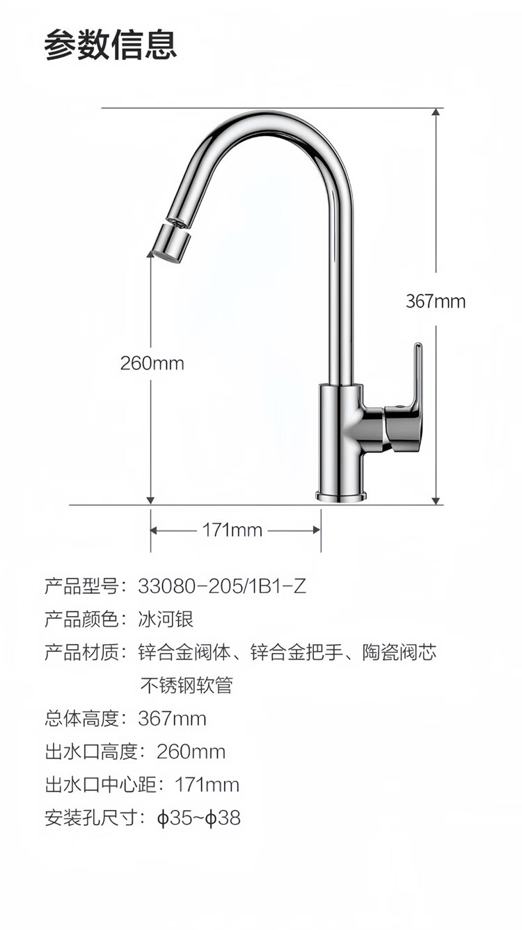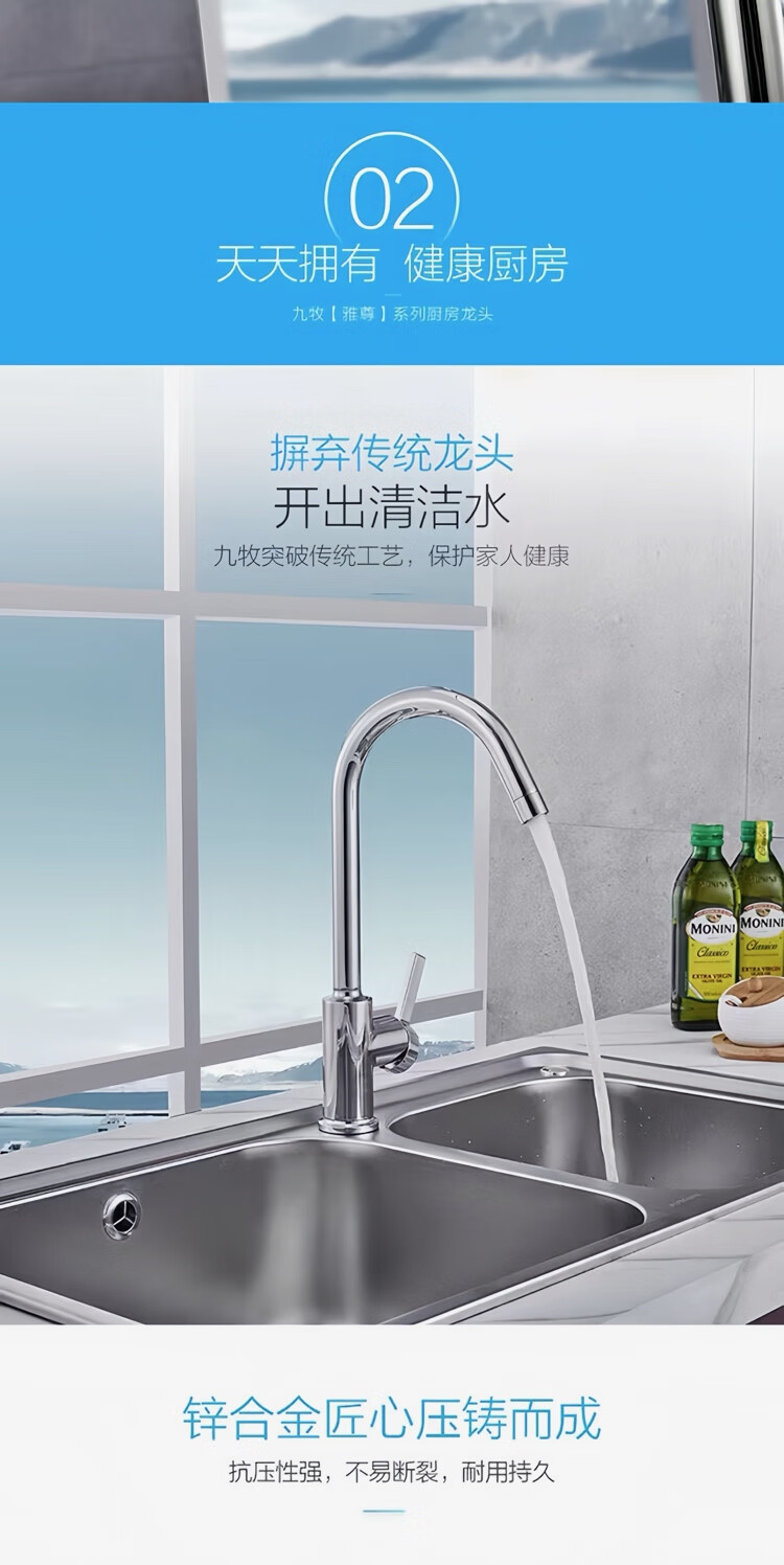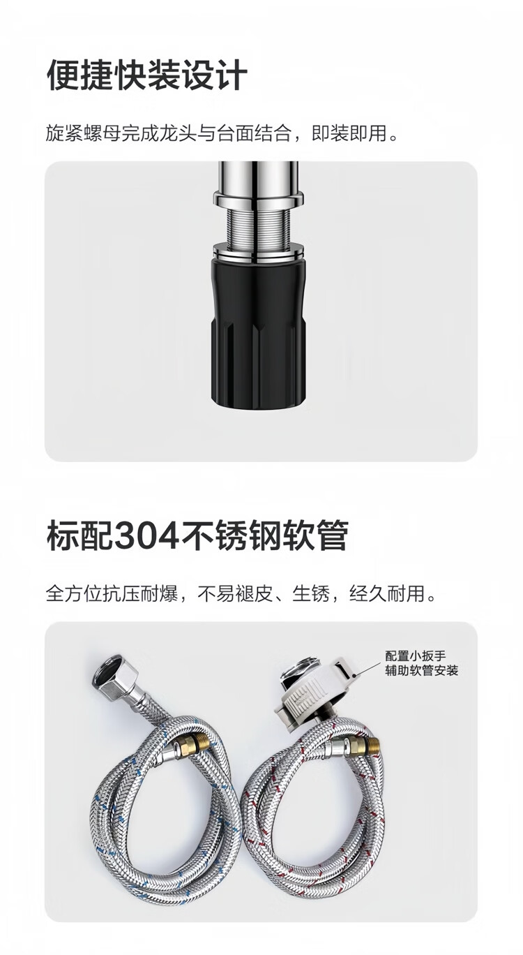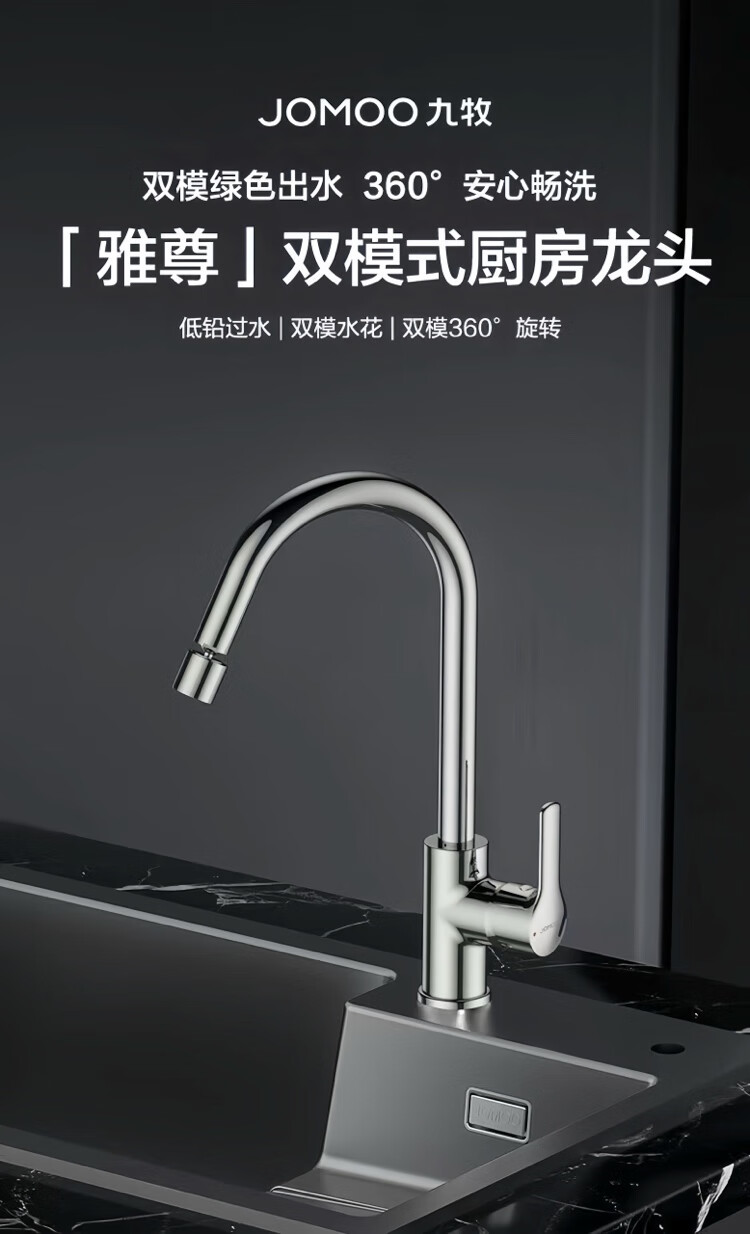 Jomoo stainless steel faucet hot and cold water dual-purpose universal rotating sink faucet single handle single hole 33080 anti-splash 33080 universal rotating faucet - free 60cm hose