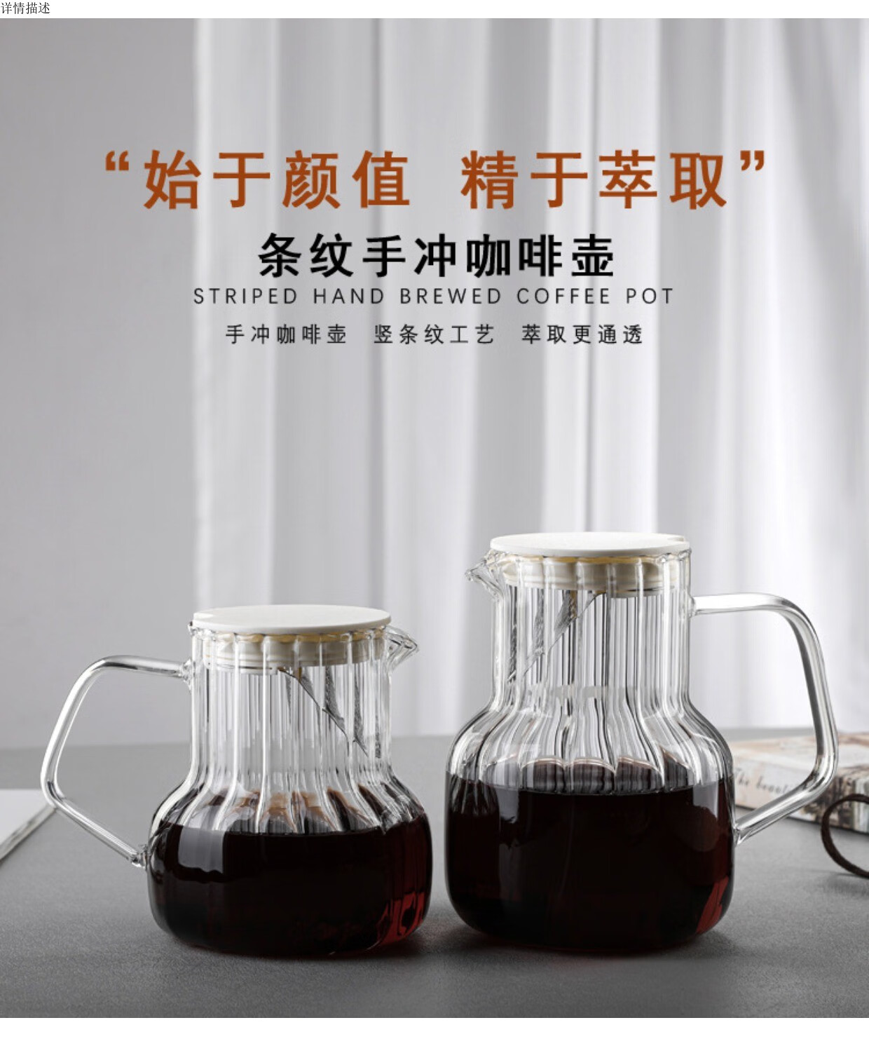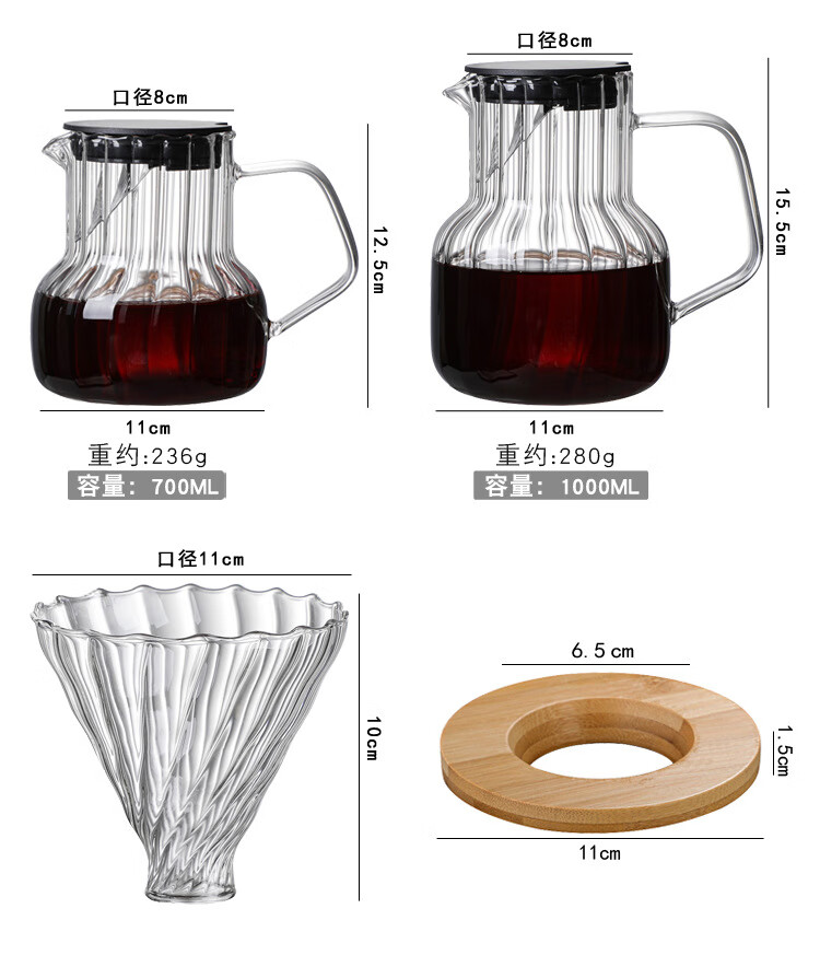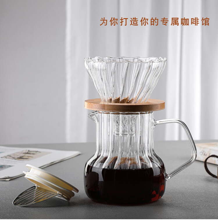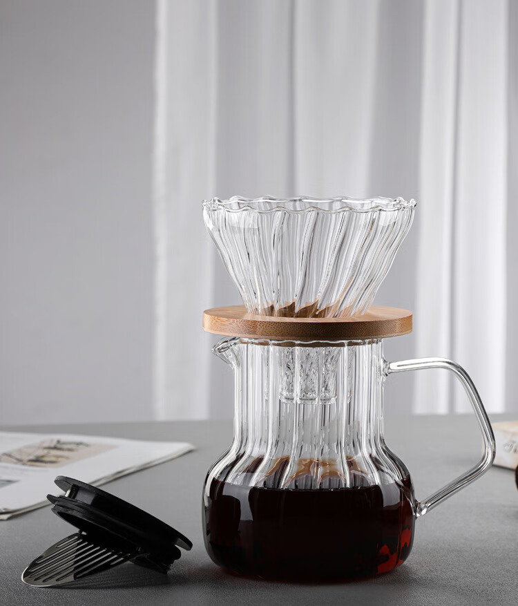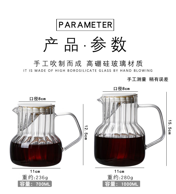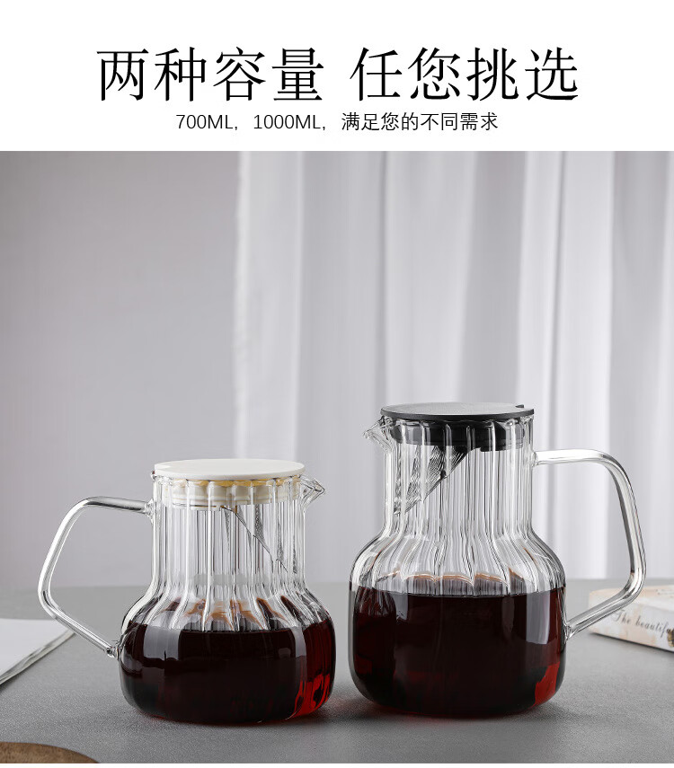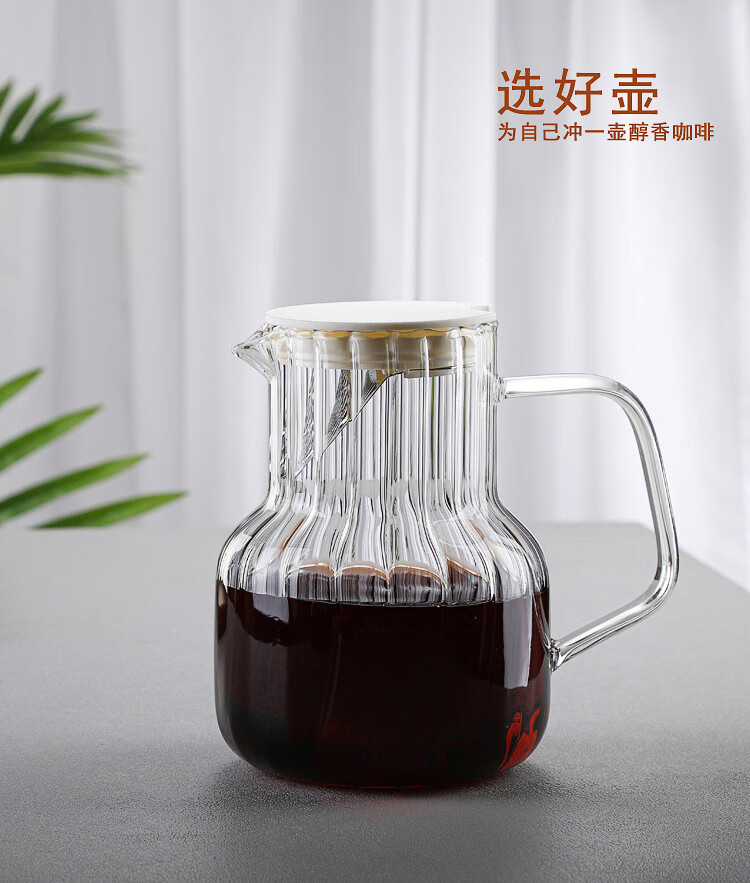 Steel Shield German imported quality hand brewed coffee pot glass with lid coffee sharing pot home coffee brewer cold brew coffee 1000ML vertical pattern pot (white lid)