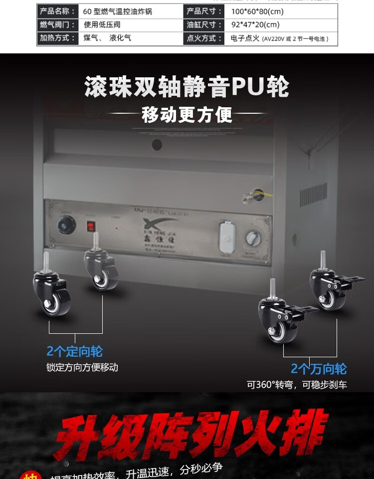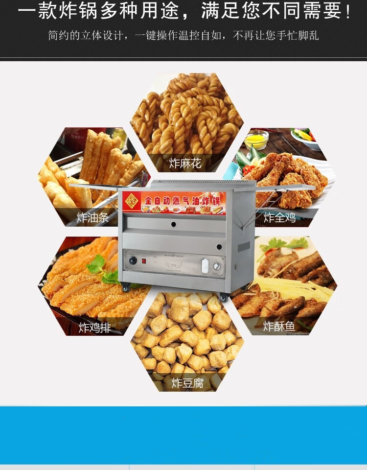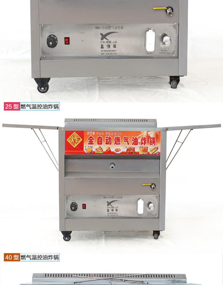 Xinhengjia fully automatic temperature-controlled gas fryer commercial stall deep-fried fried dough sticks chicken steak twist smart fryer gas liquefied gas 15 liter automatic temperature-controlled frying single pot return oil pan