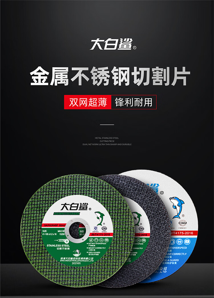 BIGWHITESHARK Great White Shark angle grinder cutting blade hand grinding wheel stainless steel special cutting blade metal small slice resin grinding wheel saw blade Great White Shark 105*1.2 Green Double Net 800 pieces