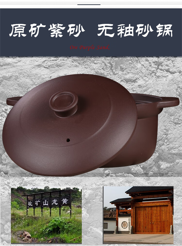 Yusenyi Yixing Claypot for Soup Open Fire Unglazed Earthenware Pot for Porridge Home Fired Hot Pot Small 3.9L 0ml