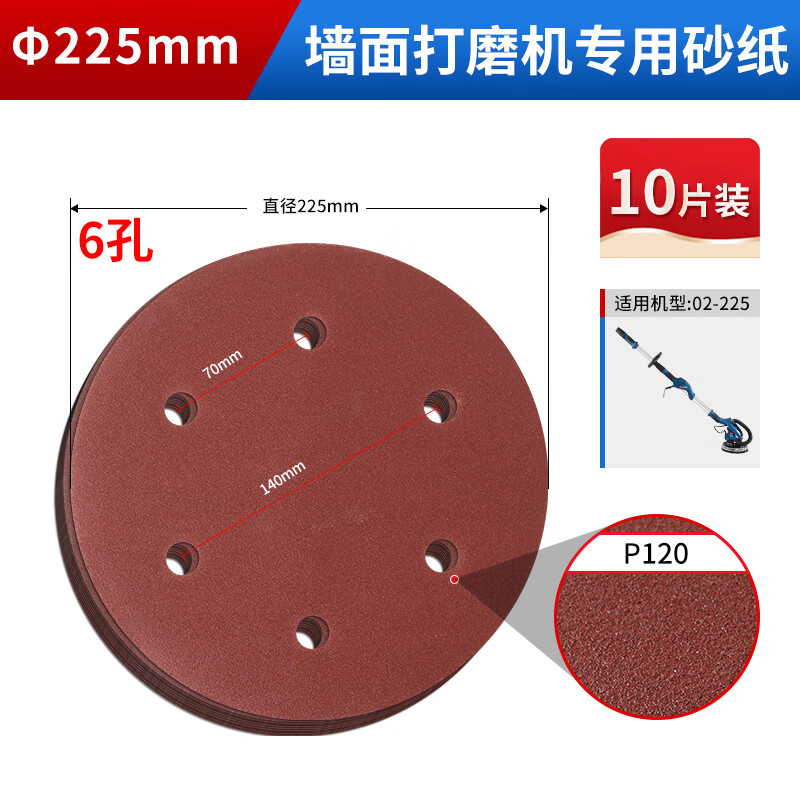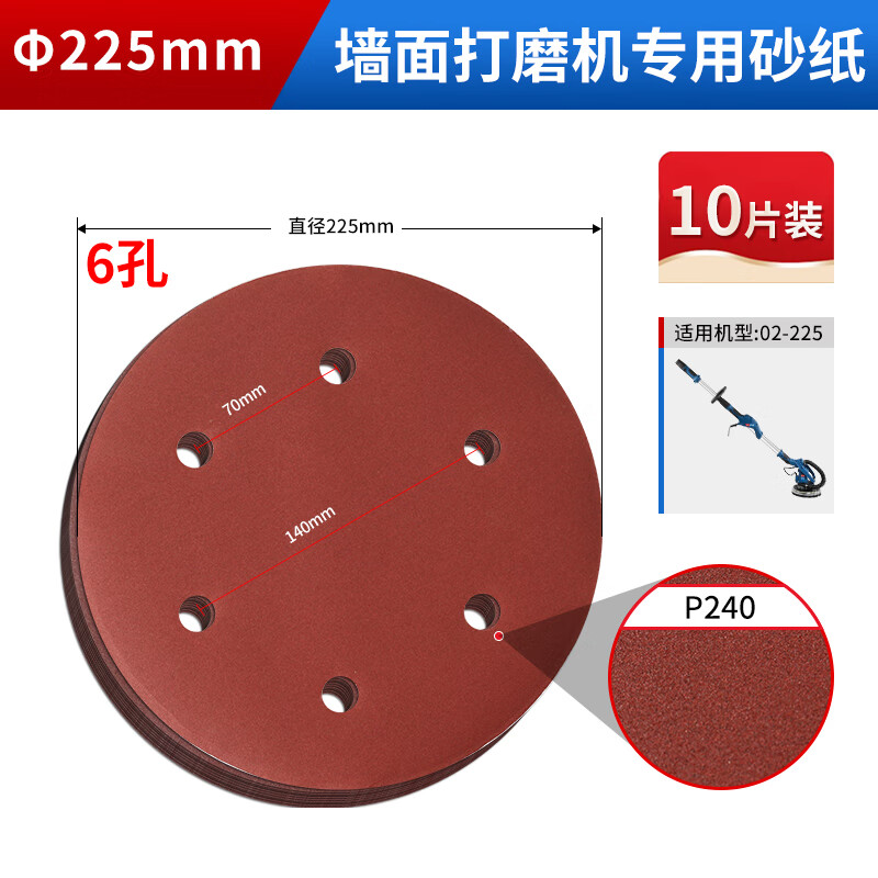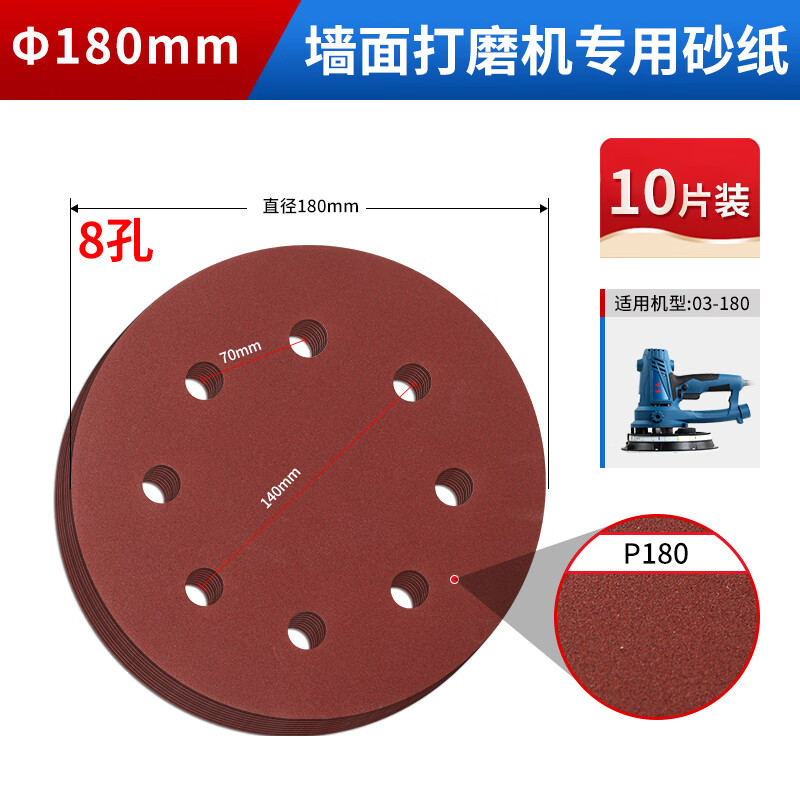 Dongcheng round sandpaper sandpaper putty wall self-adhesive flocking wall grinding machine special tool 1 180120 mesh * 10 sheets