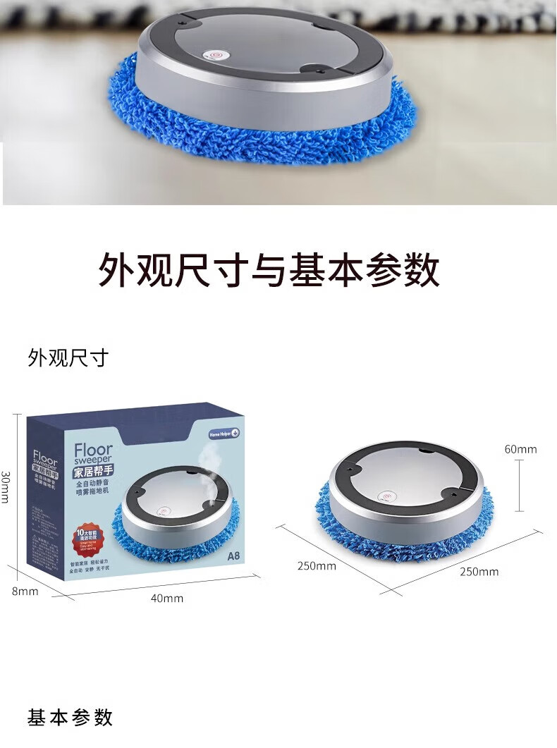 Kodyson Genuine Home Mopping Robot Intelligent Lazy Artifact High Power Wireless Cleaner Sweeping Floor Wiper Multifunctional Silent Gift Spray Mopping Fully Automatic Floor Washing Machine Silver Wet and Dry Use + Atomized Humidification + Low Noise Cleaning