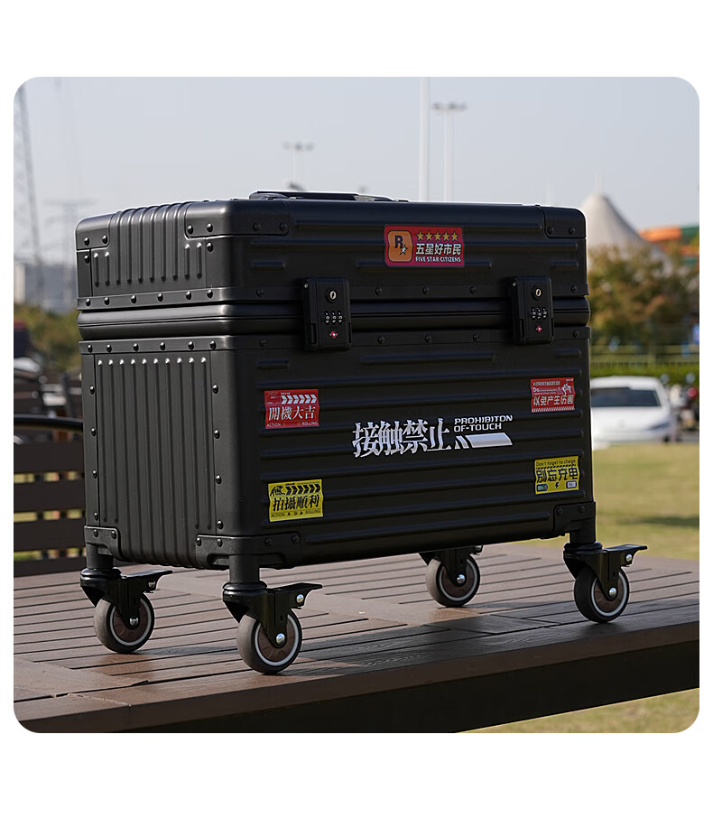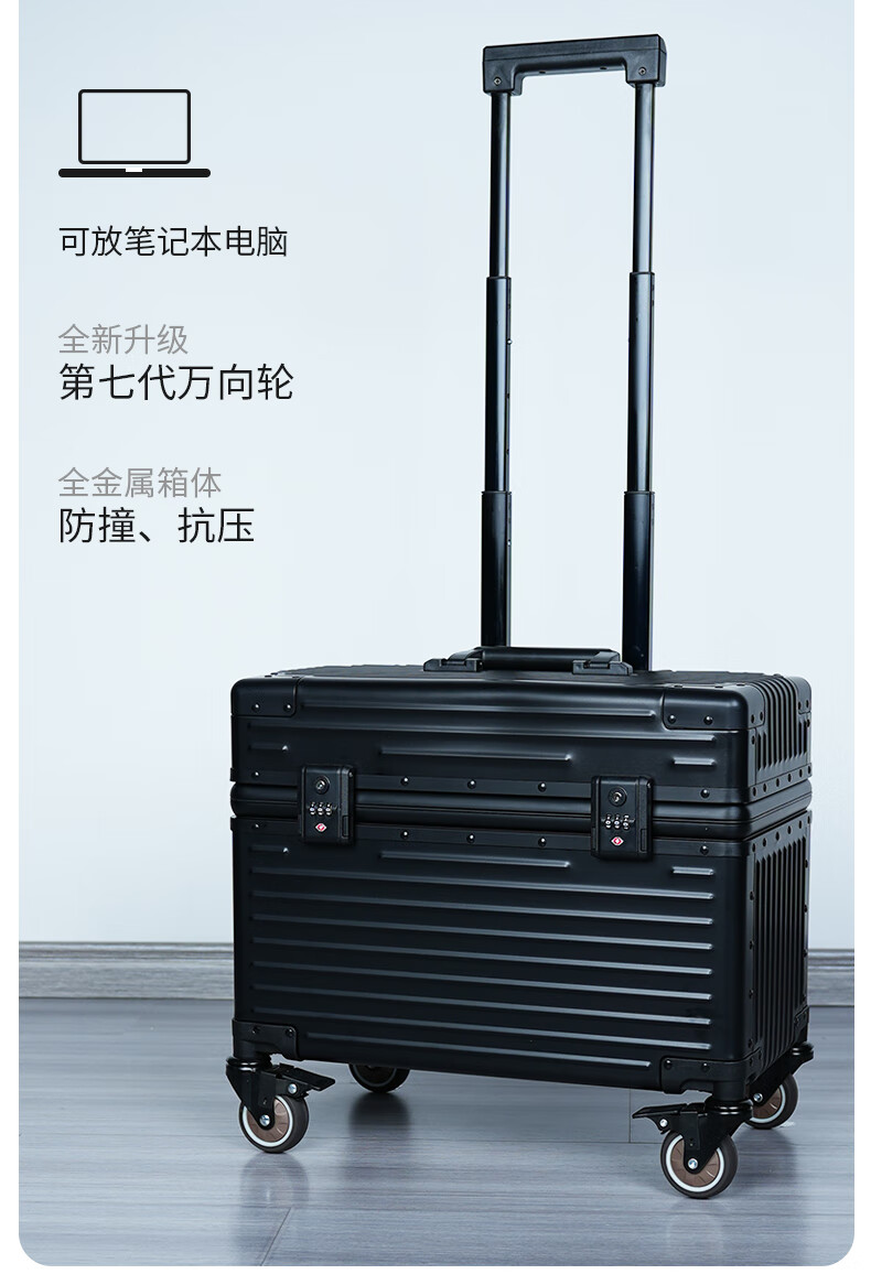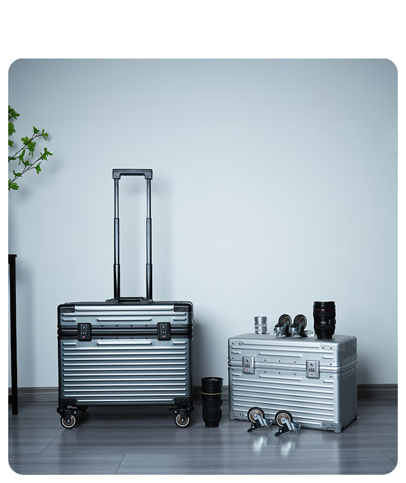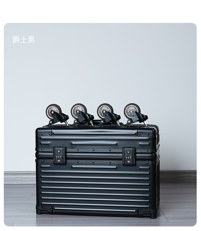 Yuemeng All Aluminum Magnesium Alloy Photography Case Luggage Camera Trolley Case Photography Equipment Case Metal Shockproof Instrument Toolbox Jazz Black (Seventh Generation Upgraded Wheels + Photography Liner) 25 inches Only available for domestic boarding