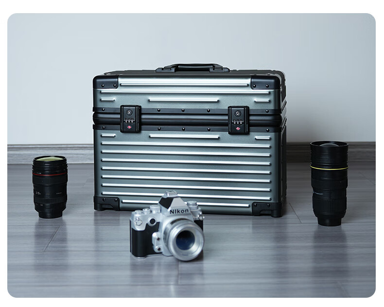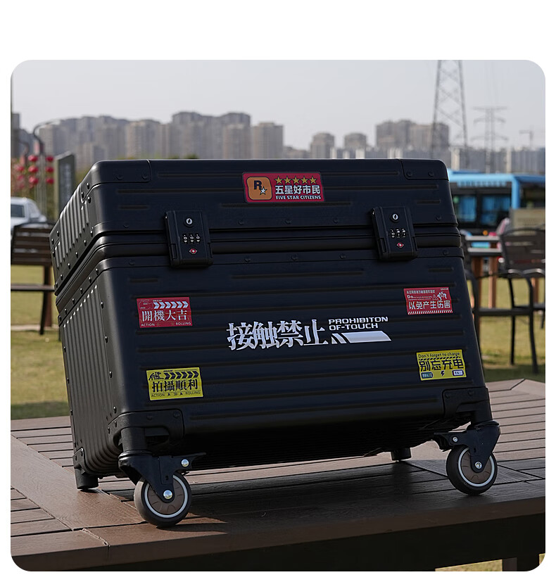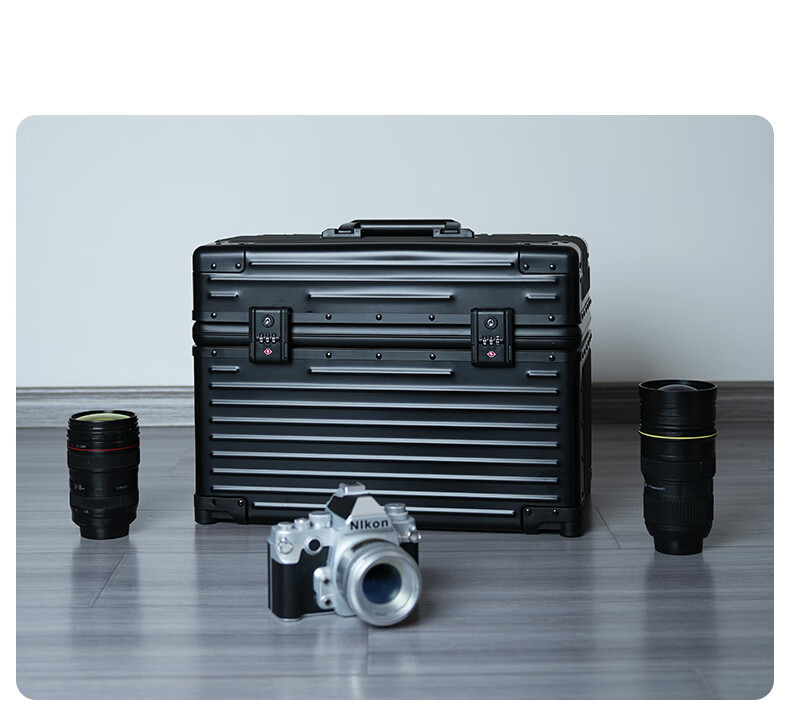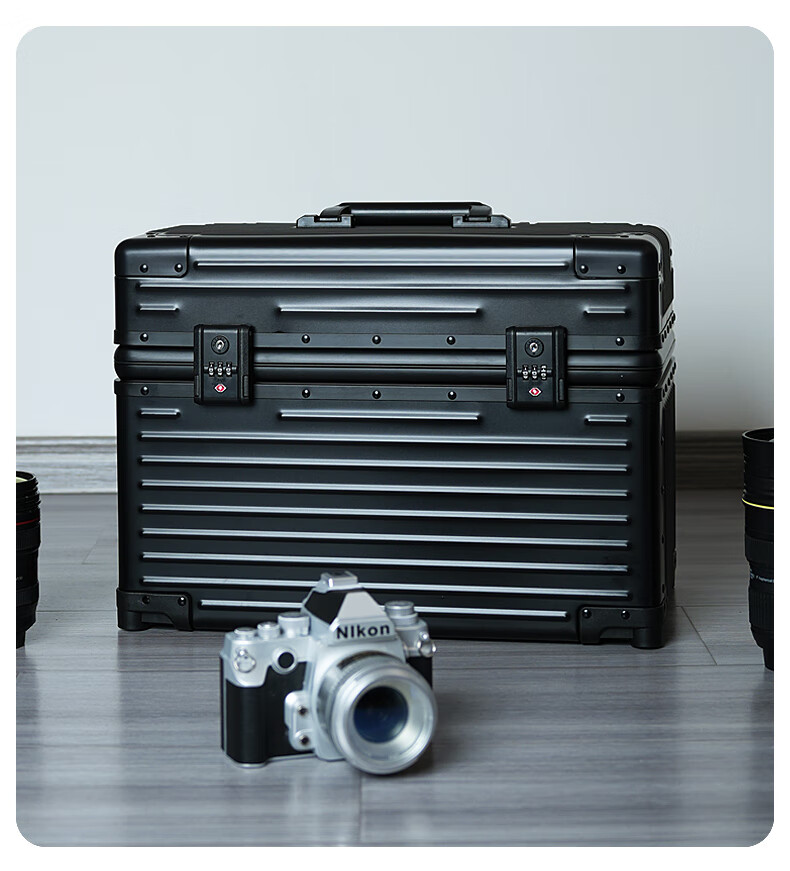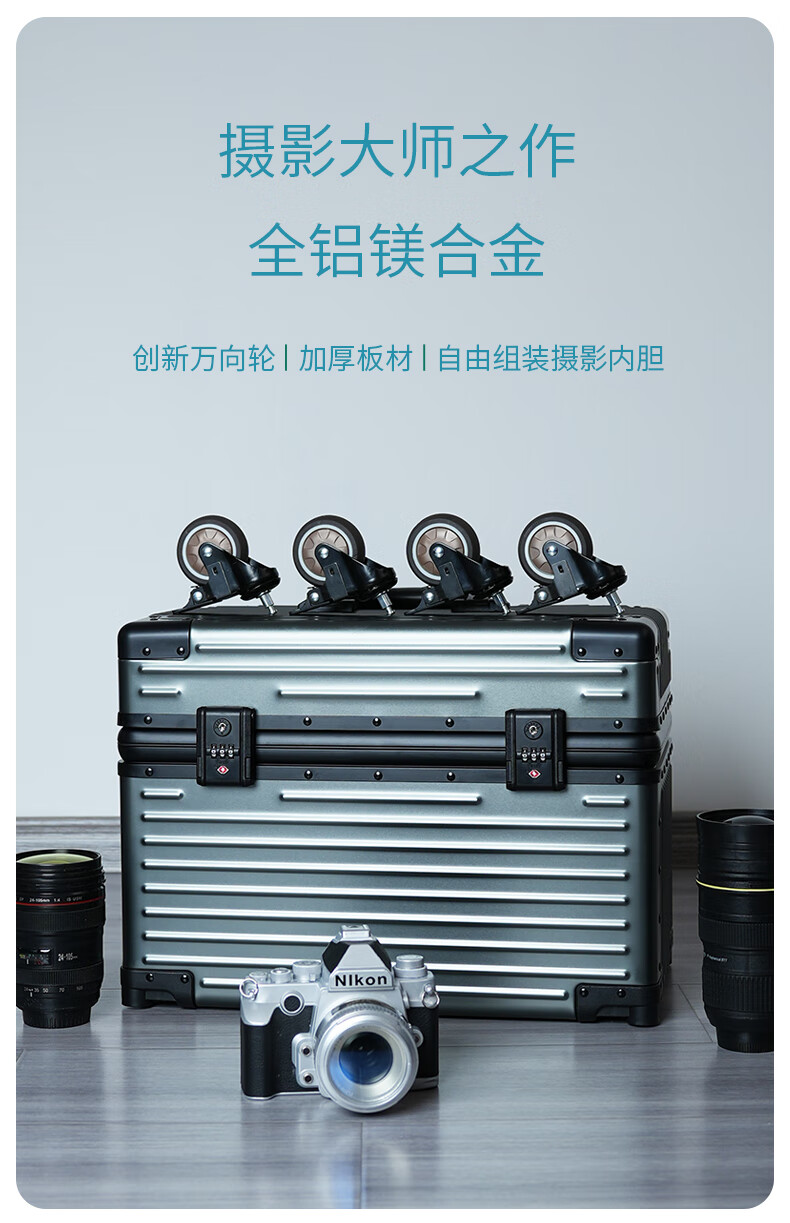 Yuemeng All Aluminum Magnesium Alloy Photography Case Luggage Camera Trolley Case Photography Equipment Case Metal Shockproof Instrument Toolbox Jazz Black (Seventh Generation Upgraded Wheels + Photography Liner) 25 inches Only available for domestic boarding