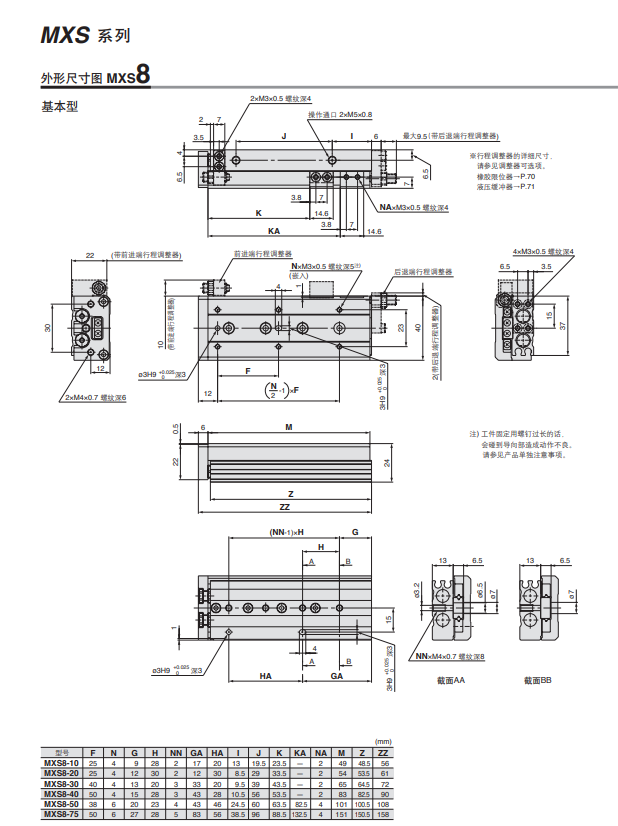 Slide cylinder MXQ12/8/6L-10-20-30-40-50-75-100A/AS/BT/AS/BS/CS MXQ12-75A