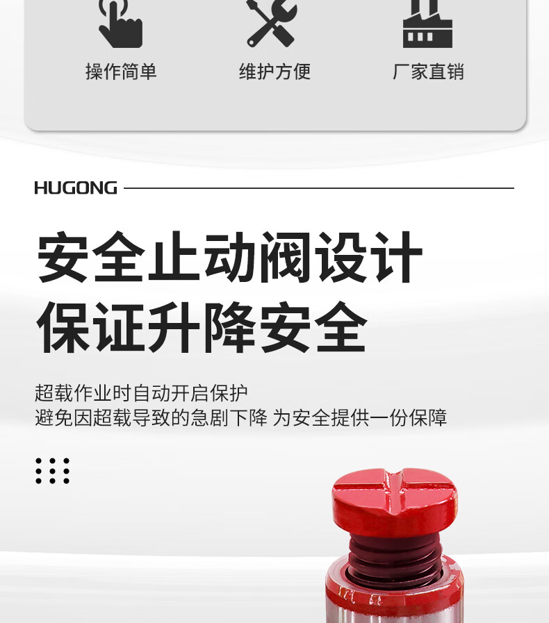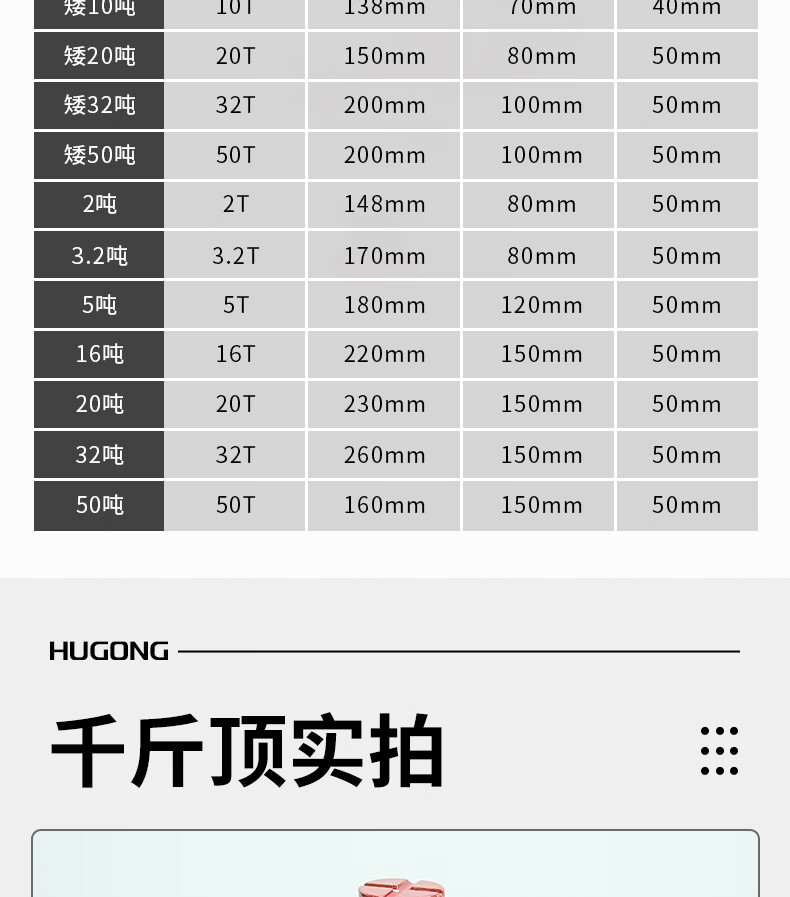 Hugong low jack vertical hydraulic 10 tons 20 tons low jack manual hydraulic car jack 20T itself is 23cm high
