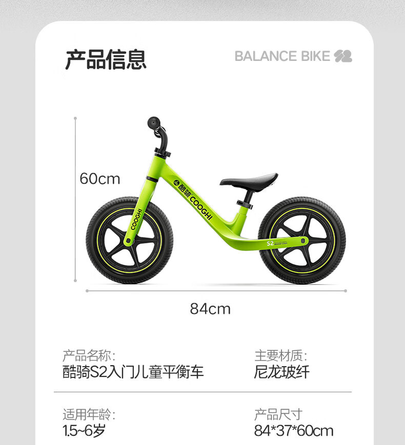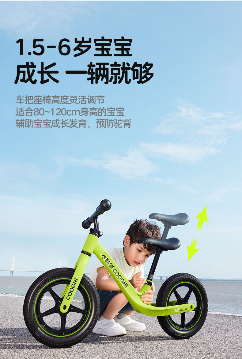 COOGHI S2 children's balance car 1-3-6 years old sliding baby walker ultra-light entry-level S2 balance car - COOGHI green 12 inches