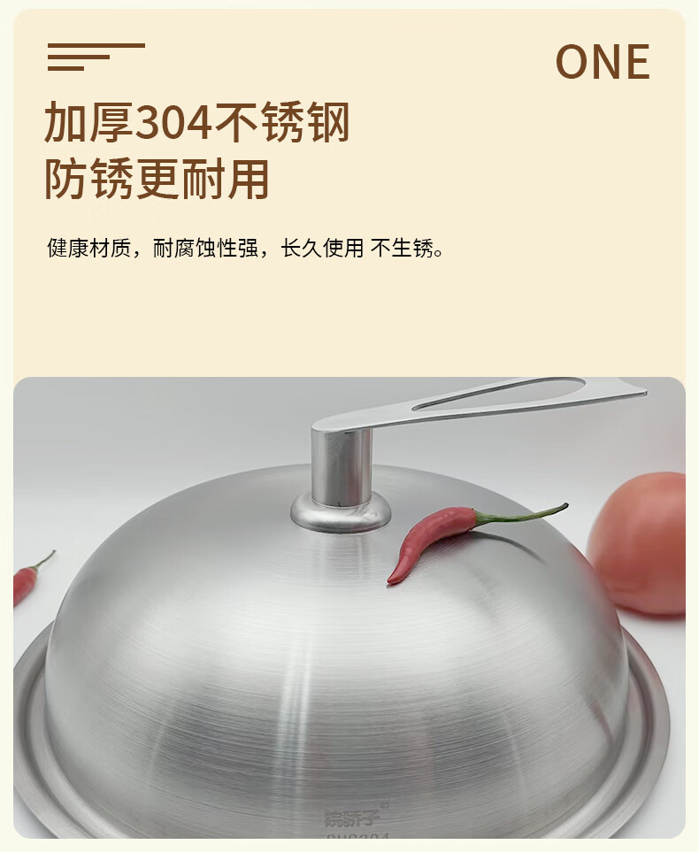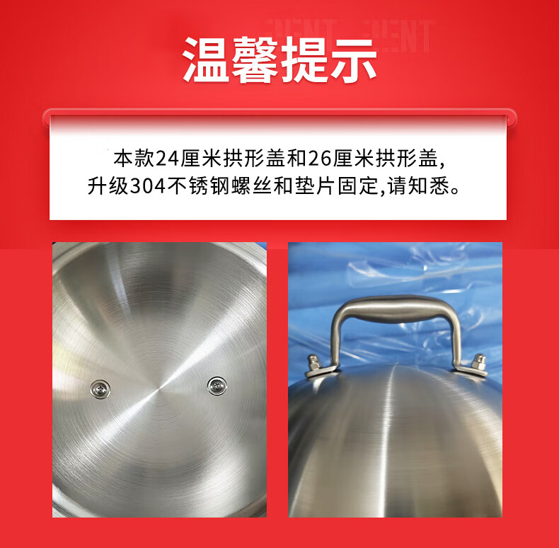 Wanjiaozi household 304 stainless steel lid 304 pot lid wok lid 304 lid universal pot lid thickened food grade 304 26 lid inner diameter 24 pot arched stainless steel lid