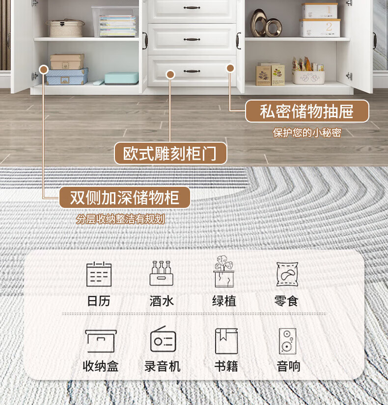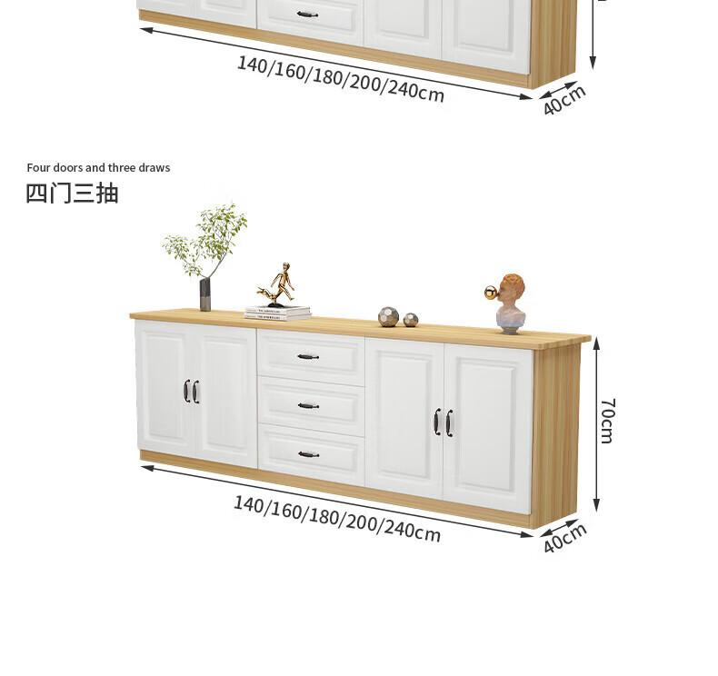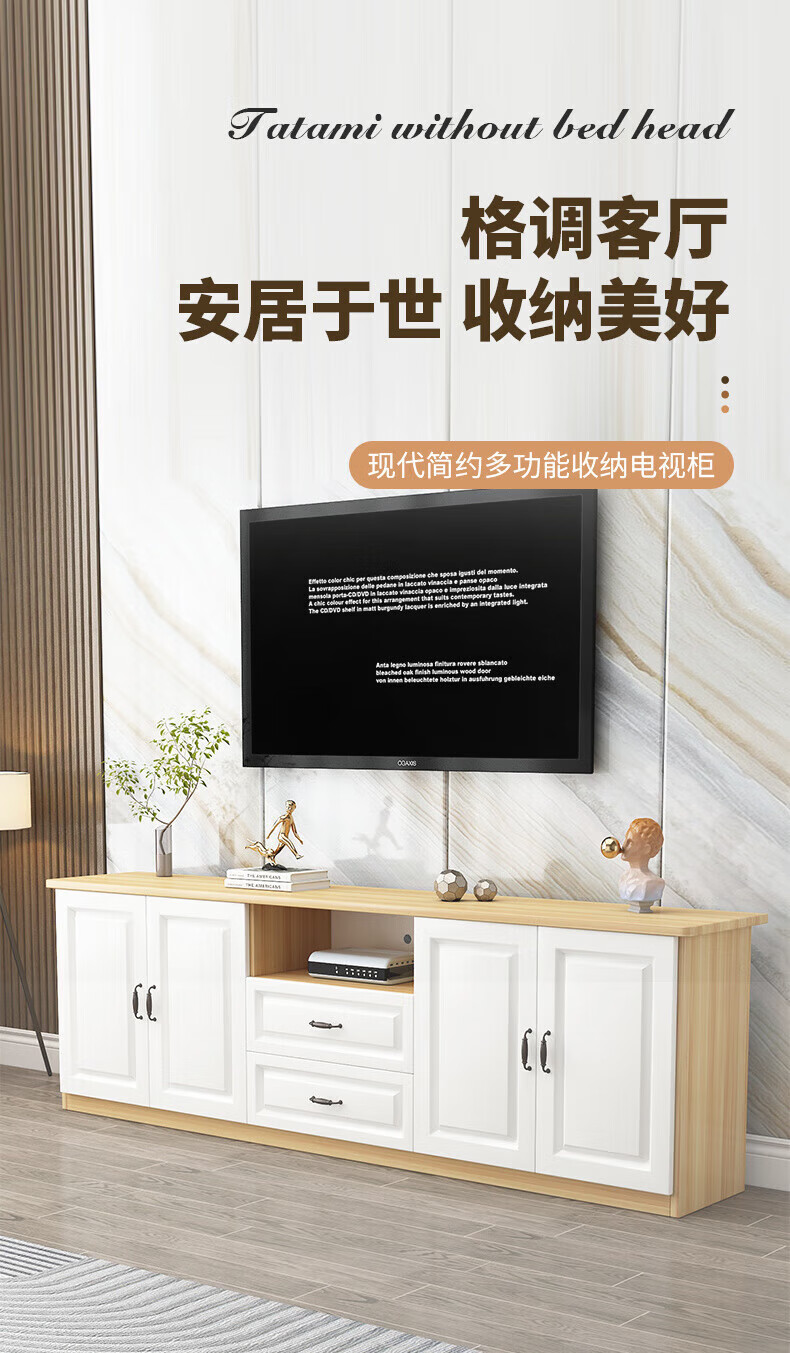 Yinhe solid wood TV cabinet modern simple small apartment living room new home bedroom European storage multi-functional high cabinet walnut color self-installation 240x40x70 four doors and three drawers