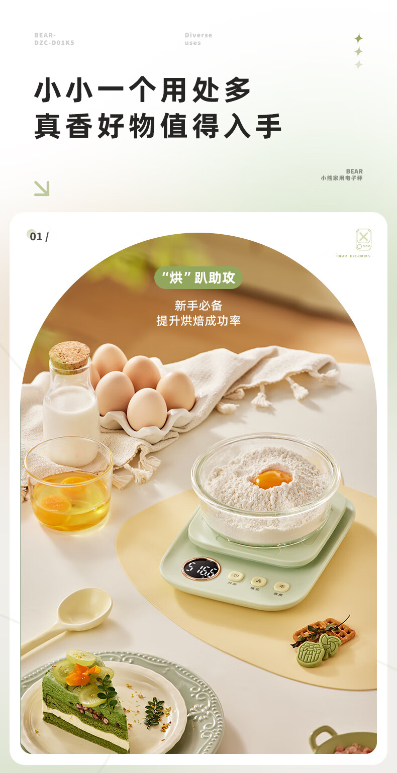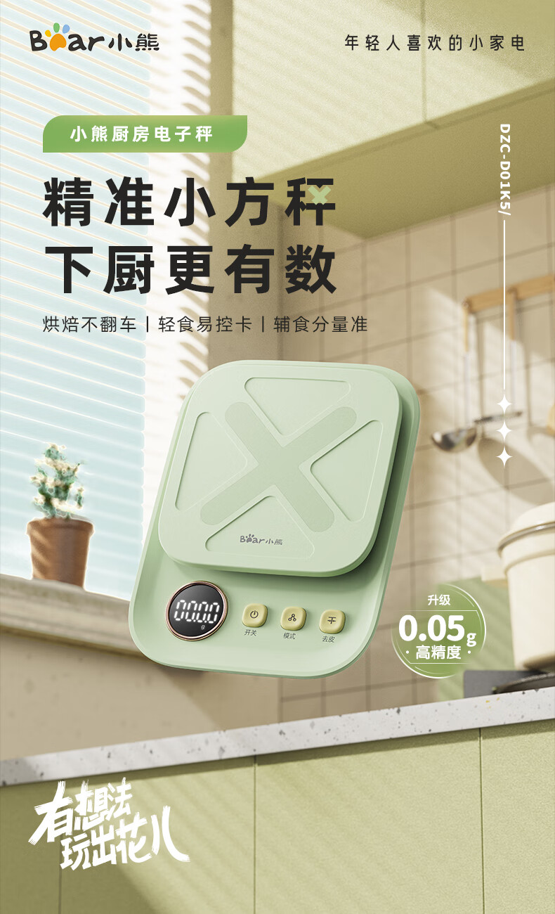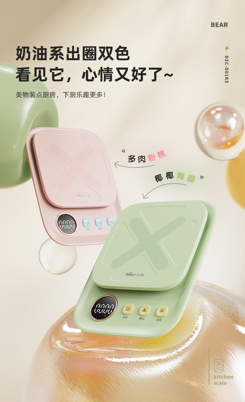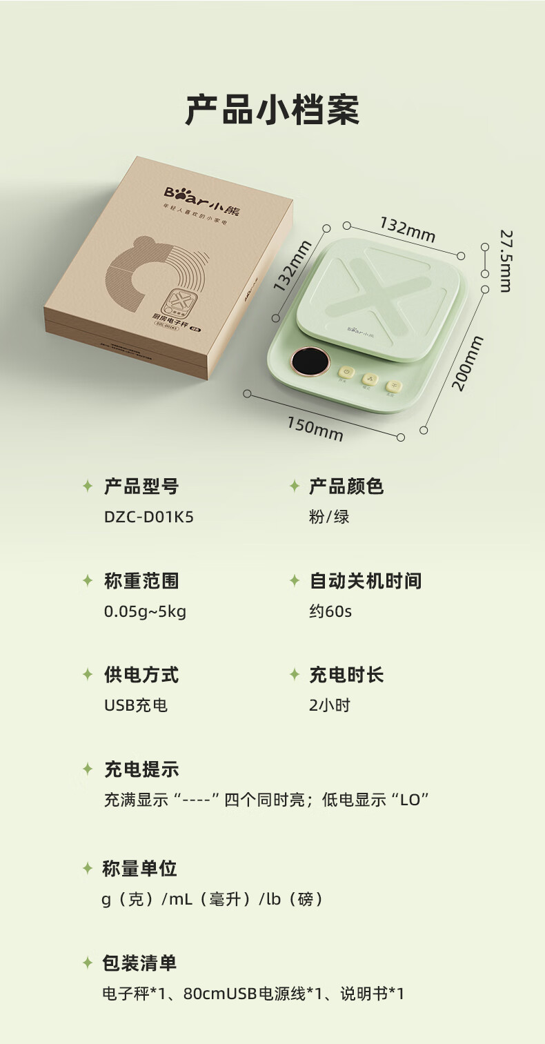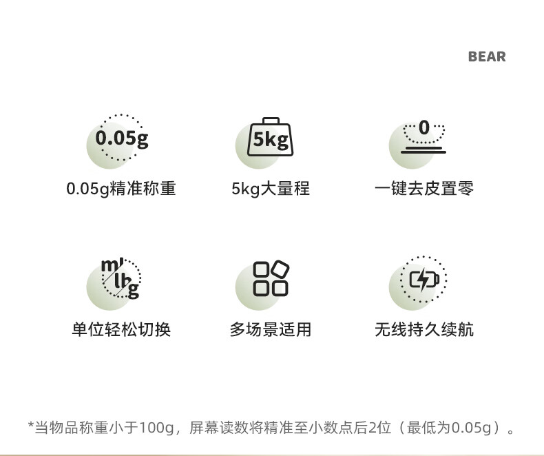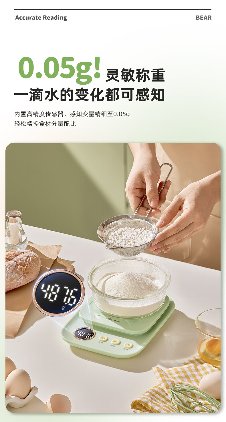 Bear kitchen electronic scale household electronic scale food scale baking scale gram scale kitchen gram scale fans dzc-d01k5 mint green-rechargeable 5kg0.