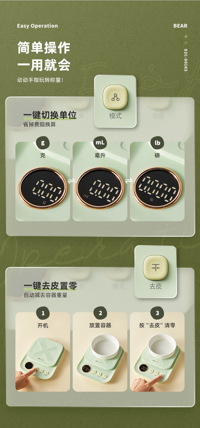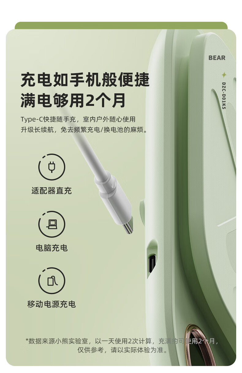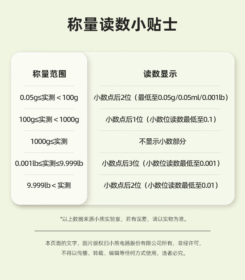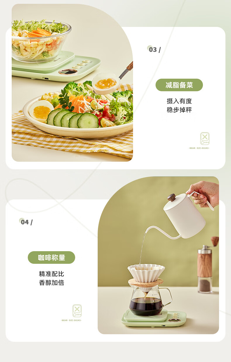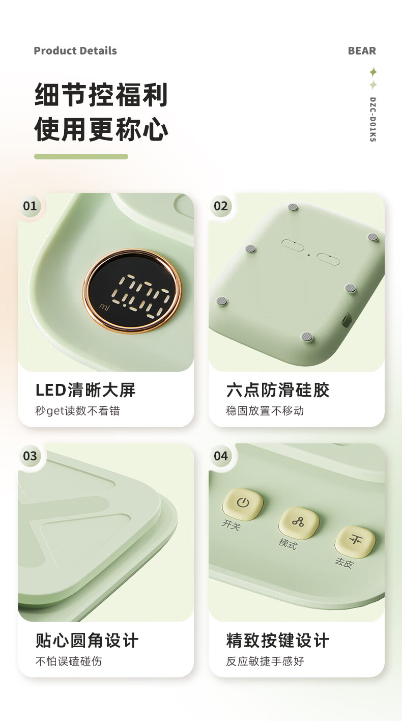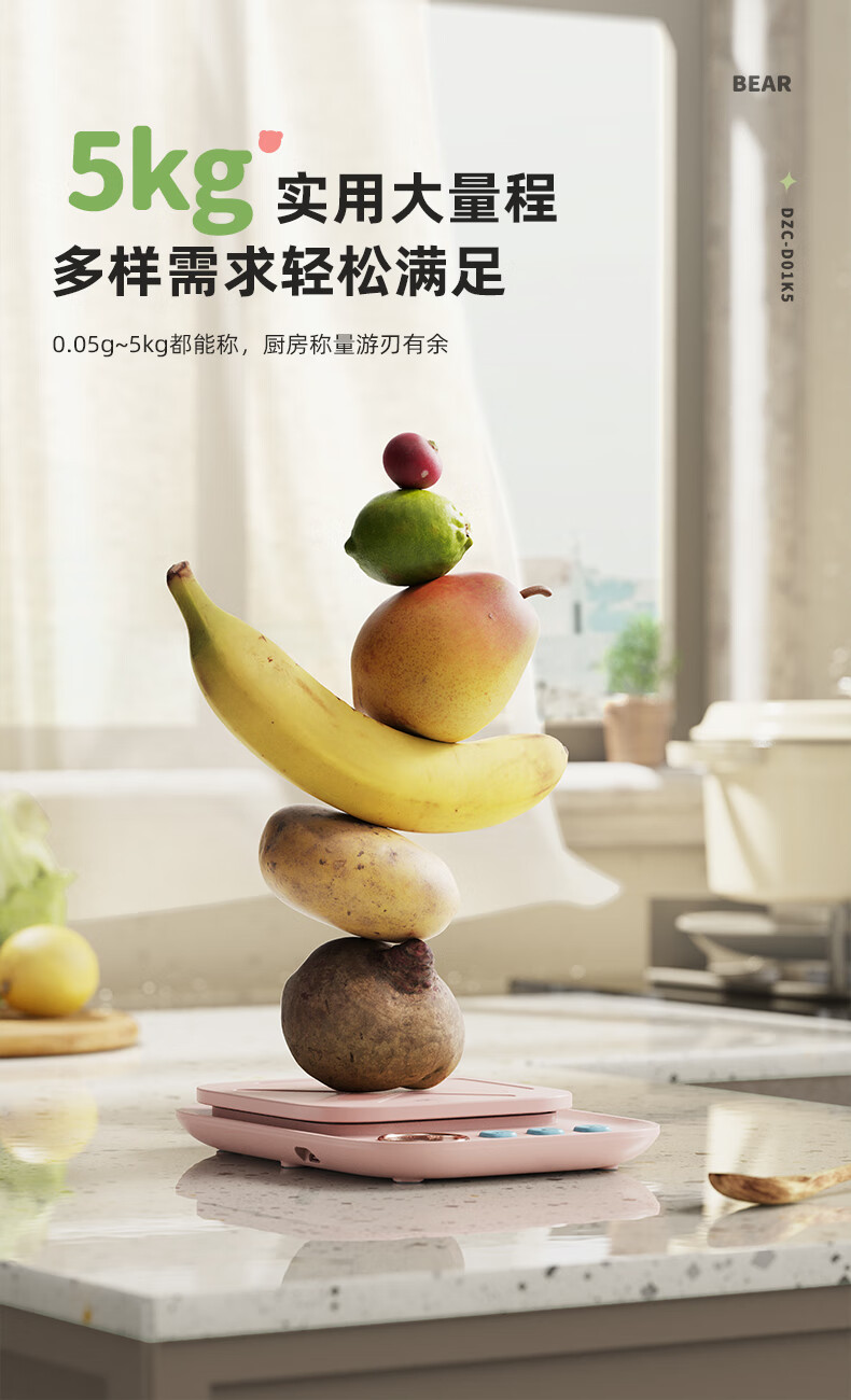 Bear kitchen electronic scale household electronic scale food scale baking scale gram scale kitchen gram scale fans dzc-d01k5 mint green-rechargeable 5kg0.