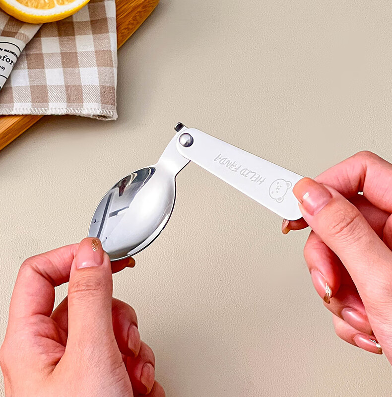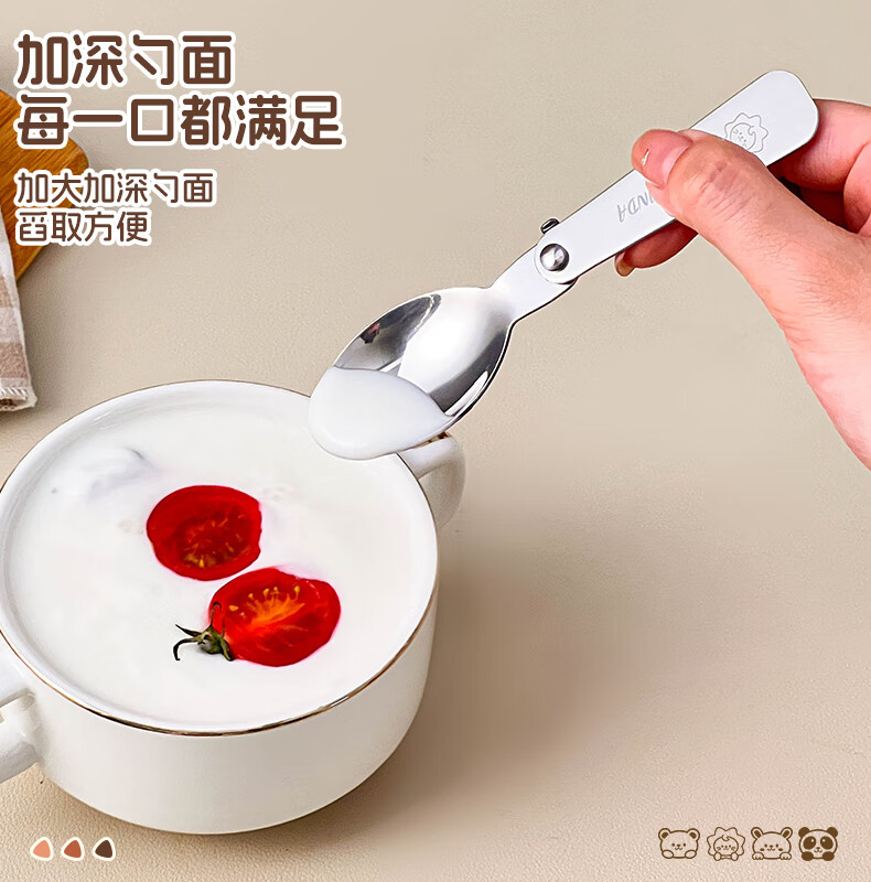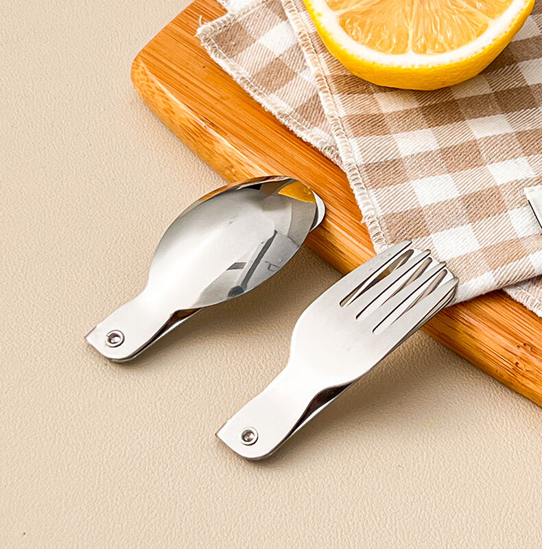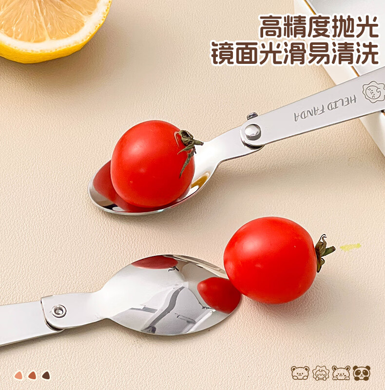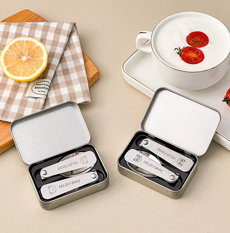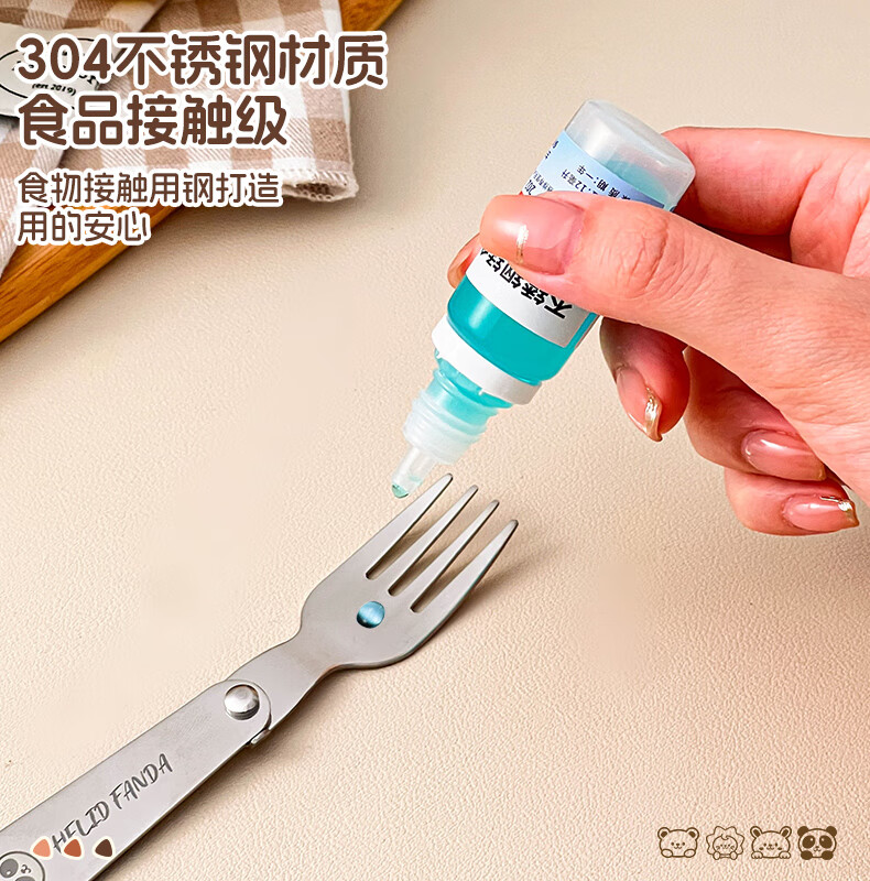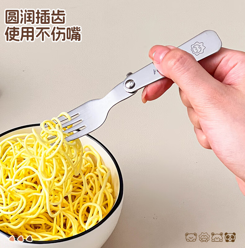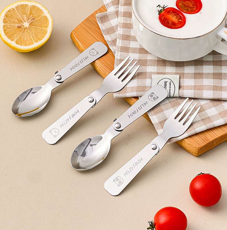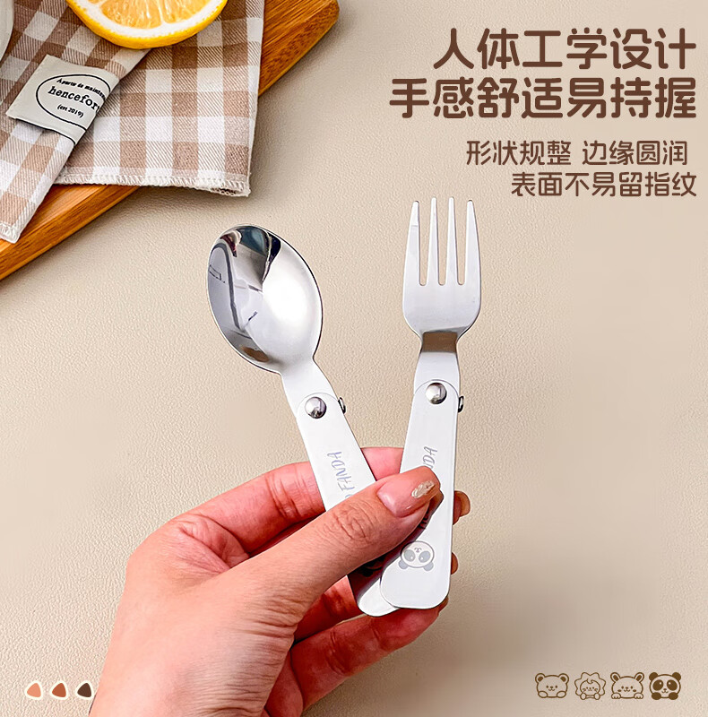 WORTHBUY foldable portable tableware 304 stainless steel spoon and fork set for one person traveling three-piece set with storage box Hehe Bear storage box + spoon and fork