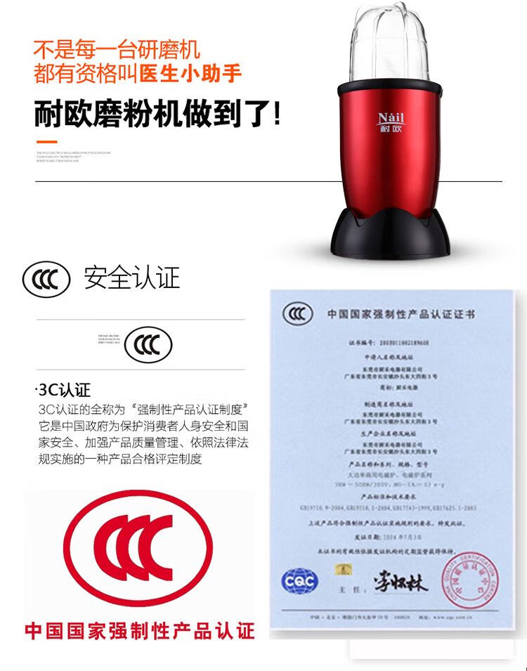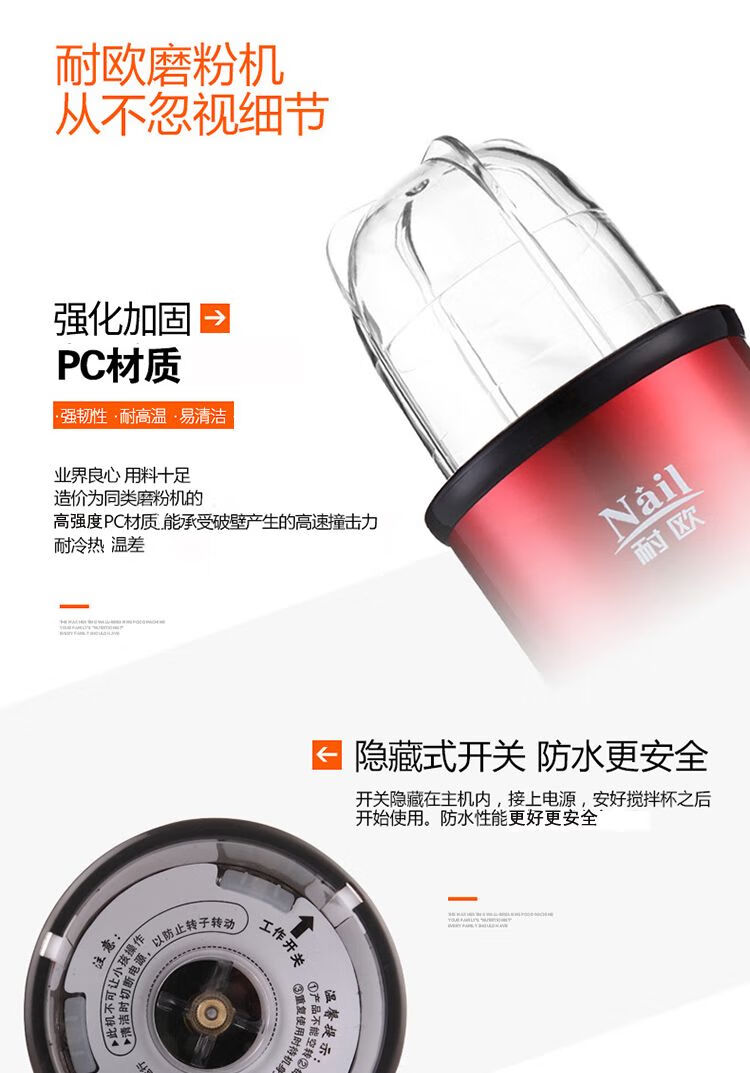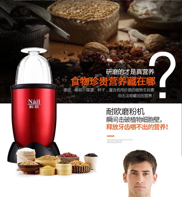 Niou/Small Electric Food Mill Tablet Grinder Medicinal Crusher Western Medicine Powdering Machine Red 150ml Slotted Knife