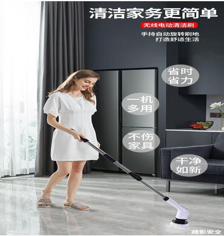 Electric Cleaning Brush Multifunctional Wireless Home Long Handle Retractable Bathroom Floor Brush Lazy Mop Long Cordless Electric Brush (Free 7 Brush Heads)