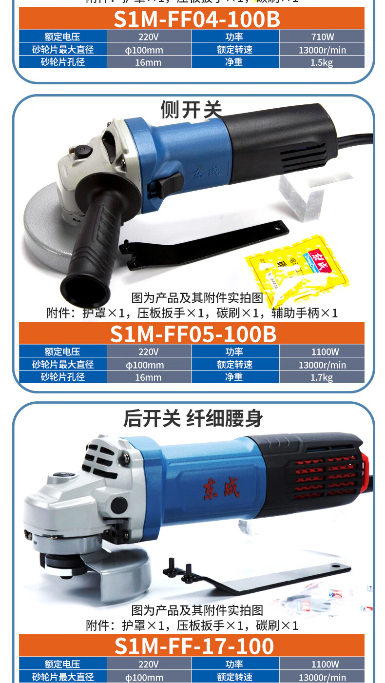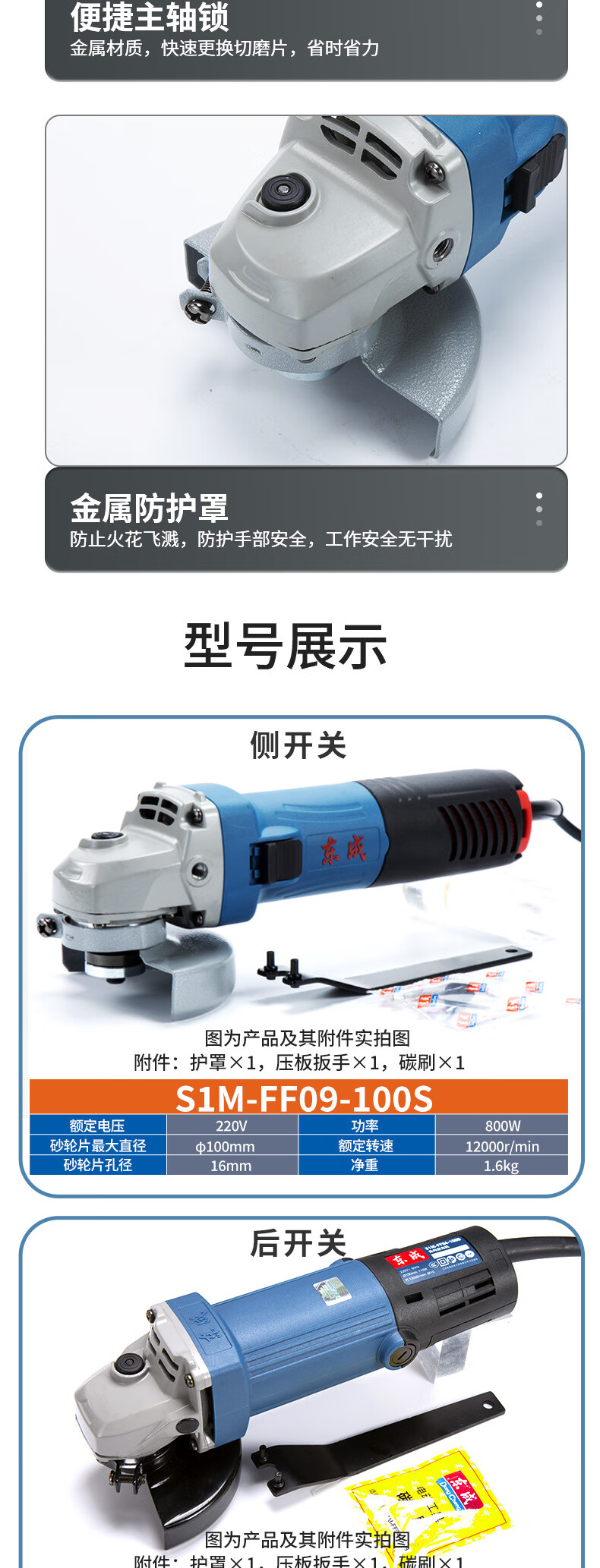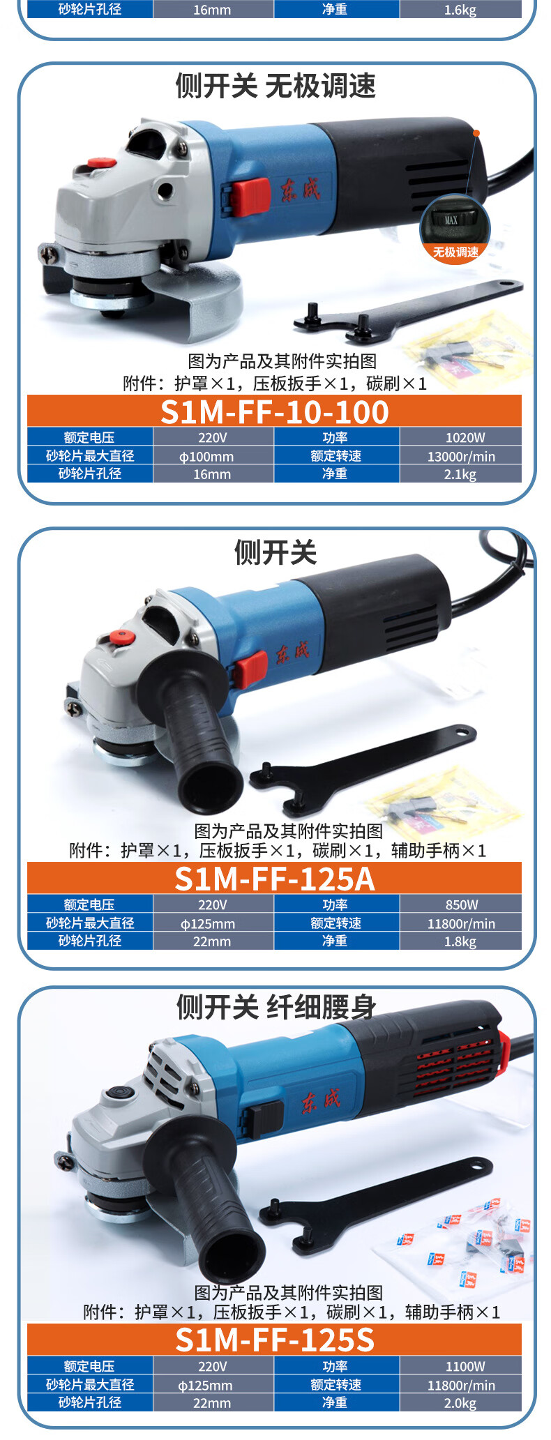 Dongcheng angle grinder polishing machine cutting machine multi-functional high-power electric tool Dongcheng grinder S1M S1M-FF-125S comes standard with 1100W side opening