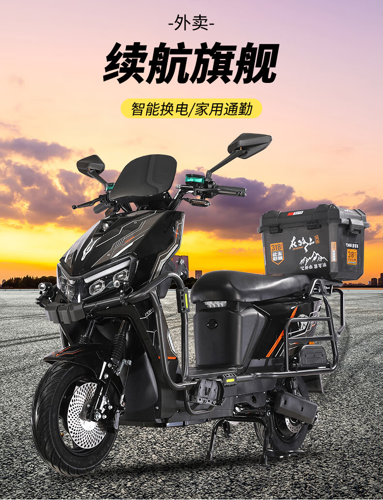 The new thunderstorm takeaway electric car 72V rechargeable lithium battery Black Knight, the same type of battery car, high-speed battery car, long-distance running king climb, top version of naked car (without battery) 60-70 yards