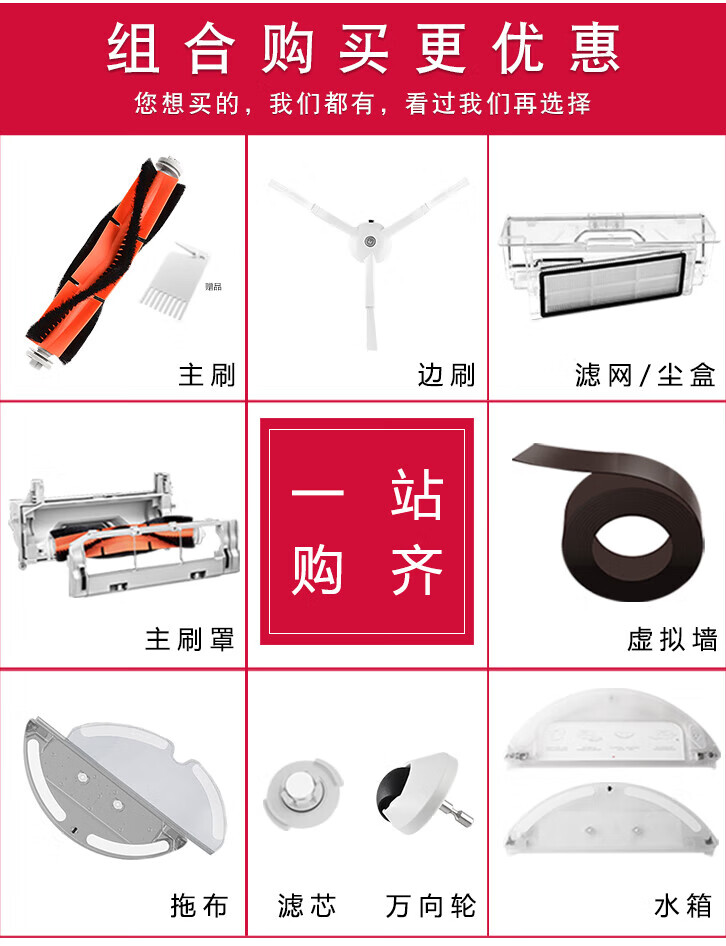 Other Mijia sweeping robot SDJQR01RR 03RR Stone T6T7 accessories side brush filter main brush cover set 31 main brush + 2 side brush + 4 water washing filter