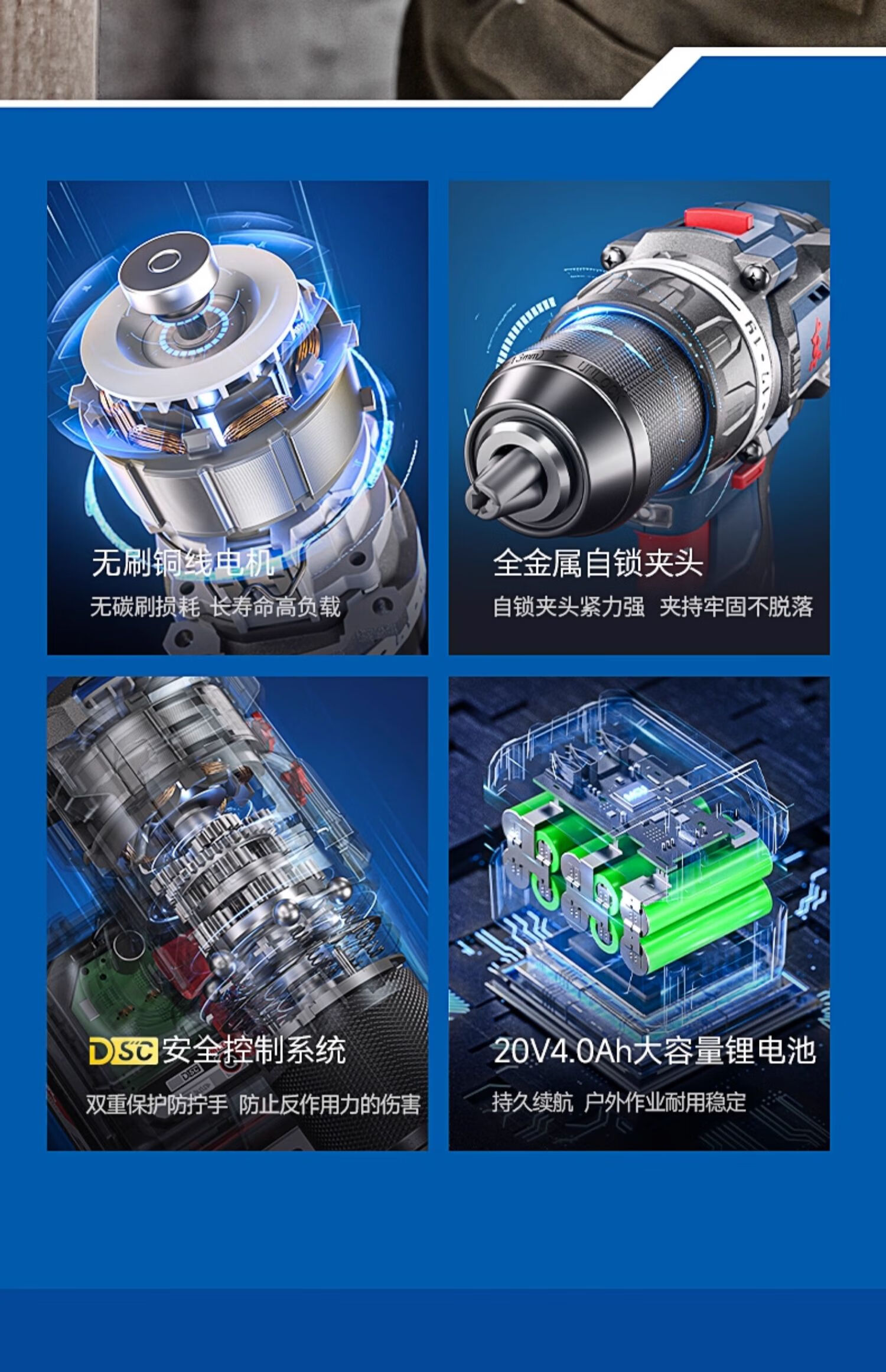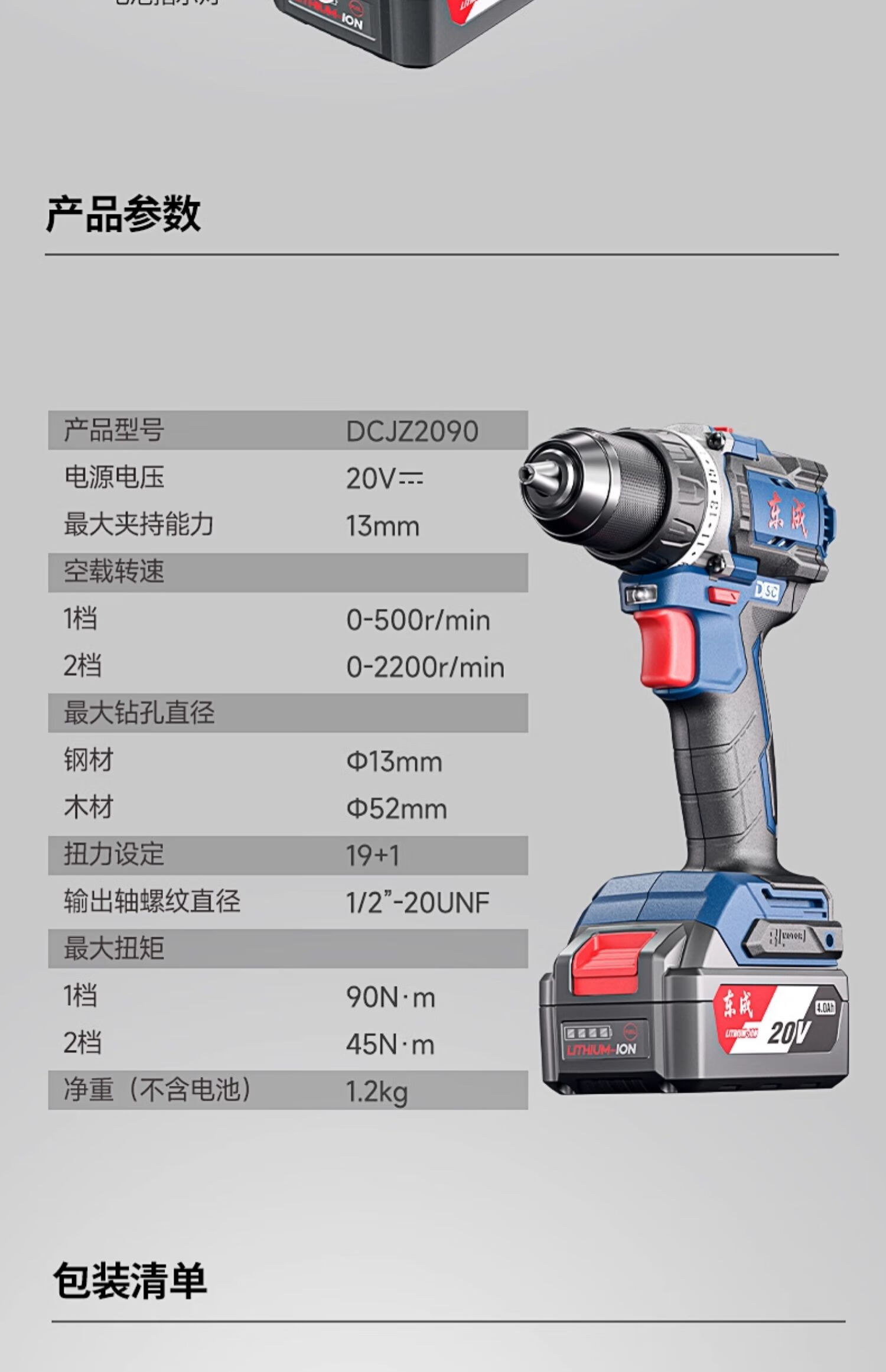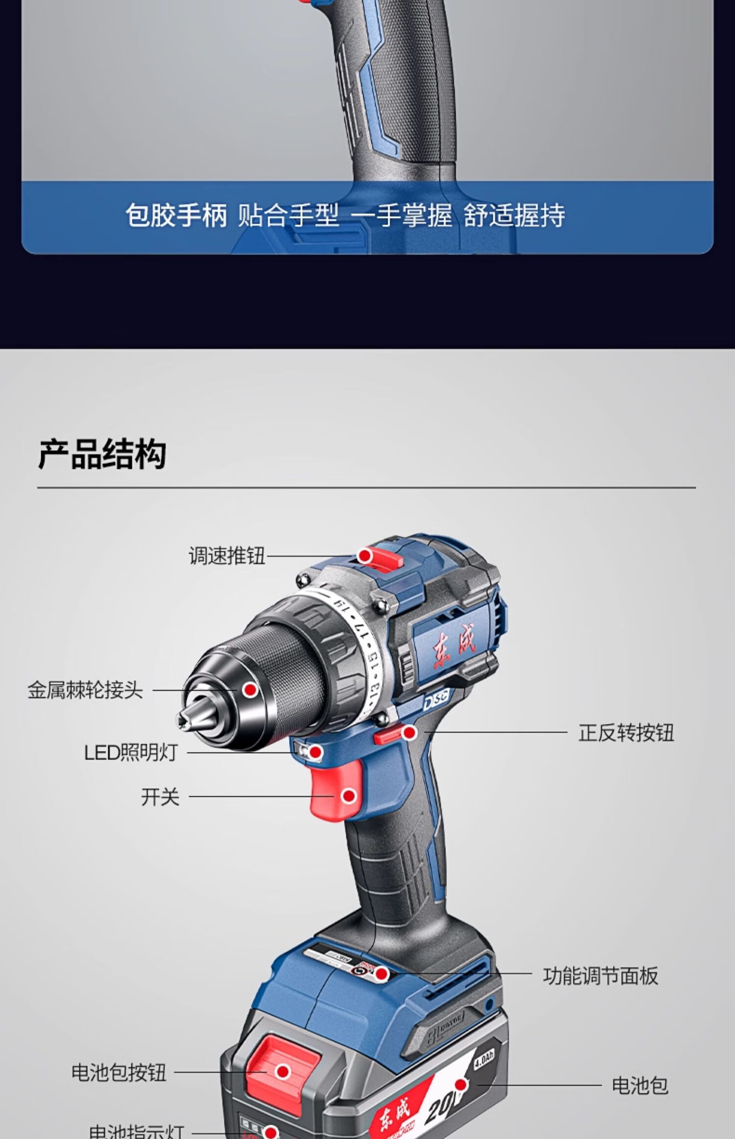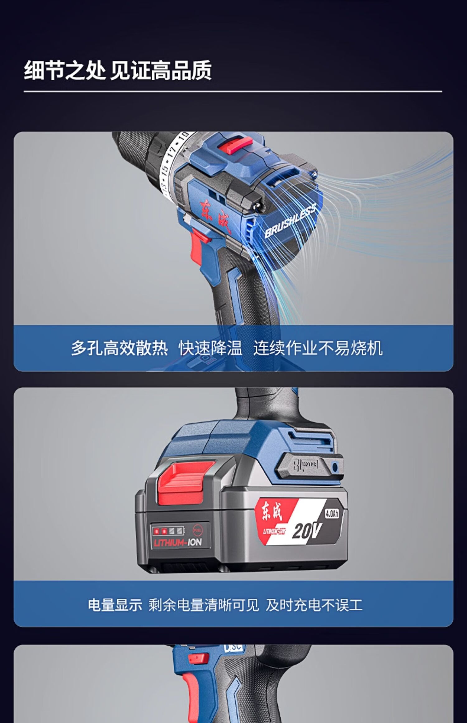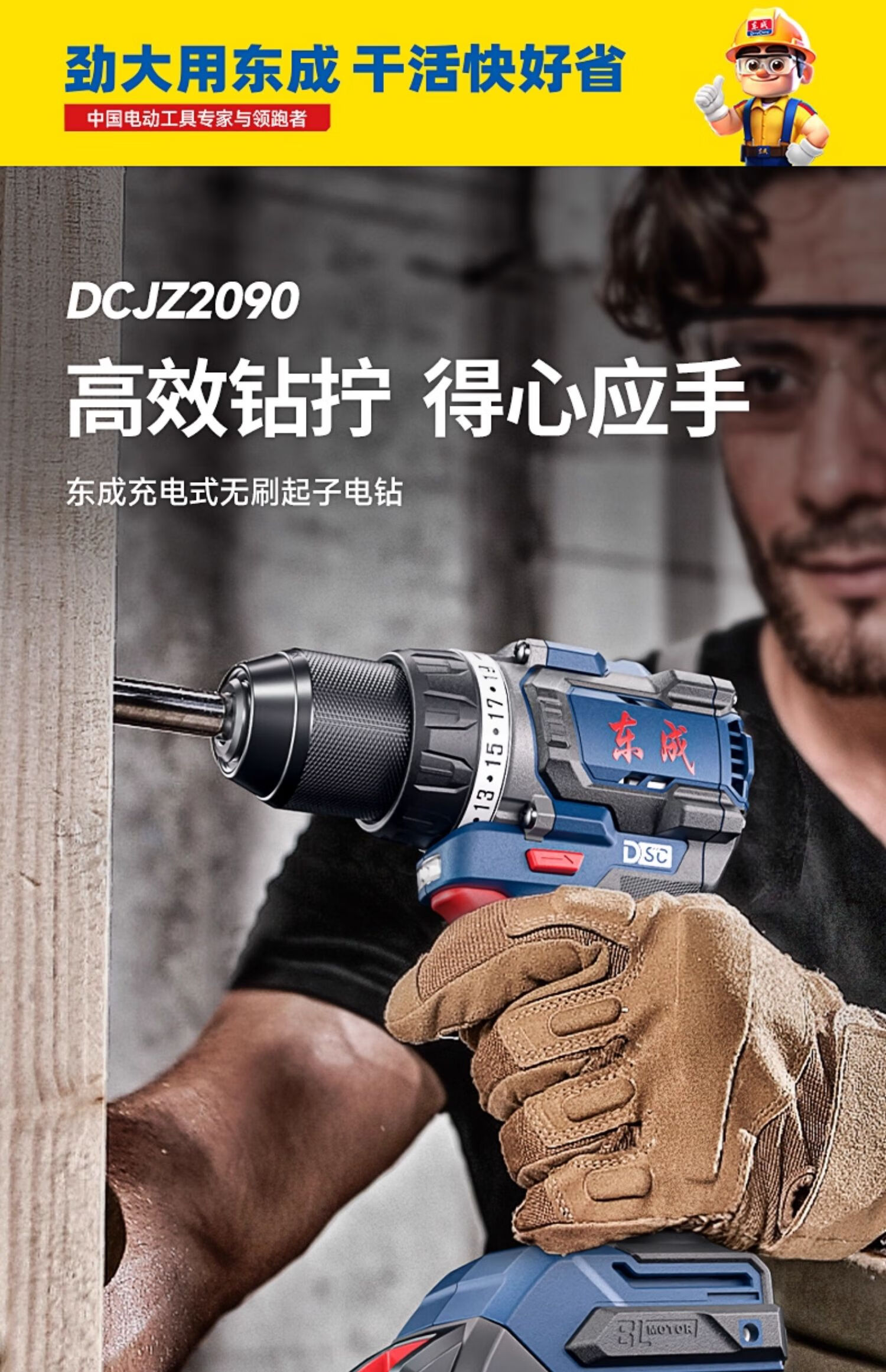 Dongcheng 20V rechargeable brushless screwdriver electric drill DCJZ2090 rechargeable forward and reverse high-power lithium electric drill DCJZ2090 bare metal