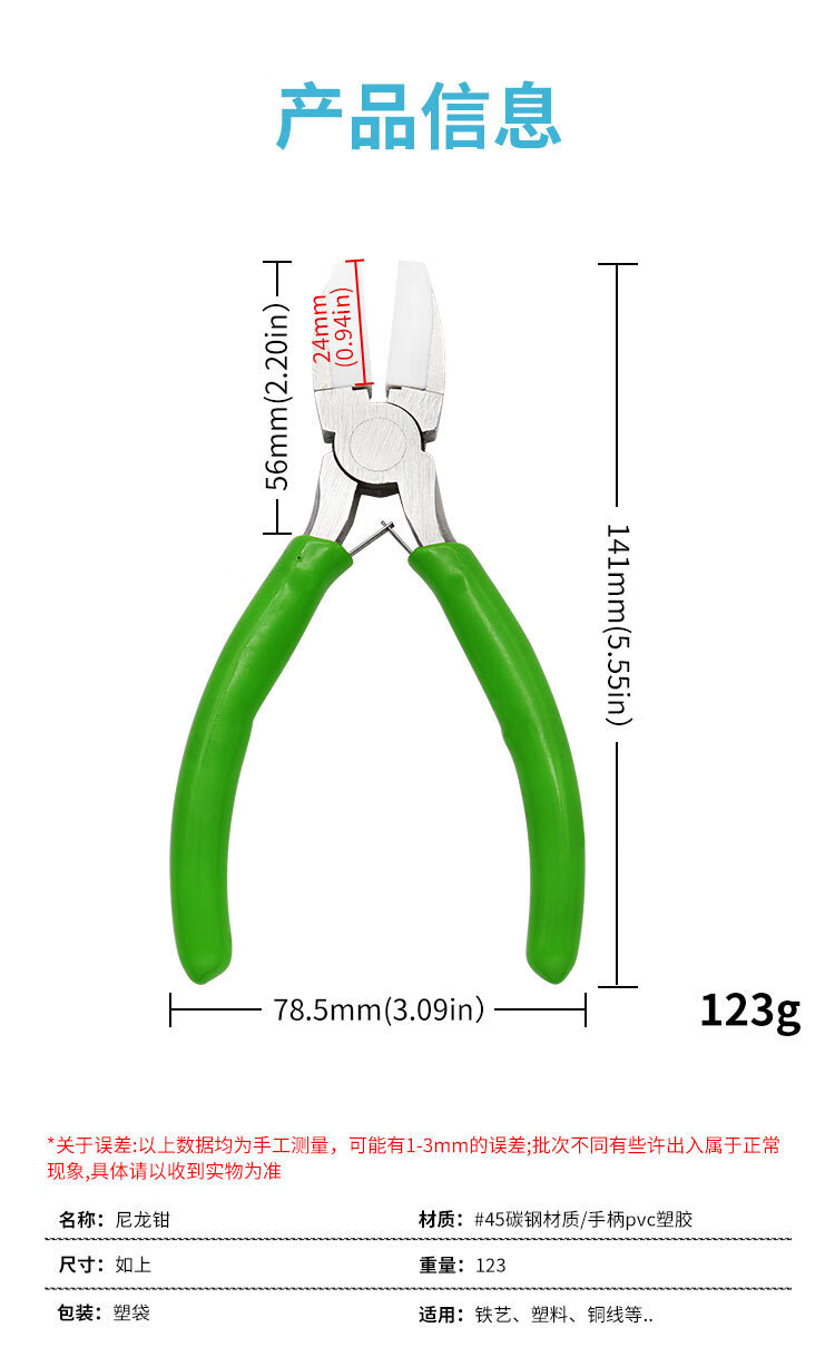 WTLYBLE 6-inch nylon pliers, flat plastic nose pliers, jewelry making and repair pliers, jewelry handmade DIY tool pliers, 6-inch nylon jewelry pliers