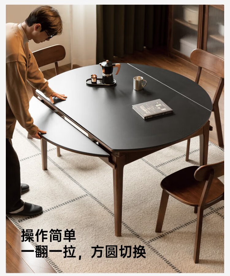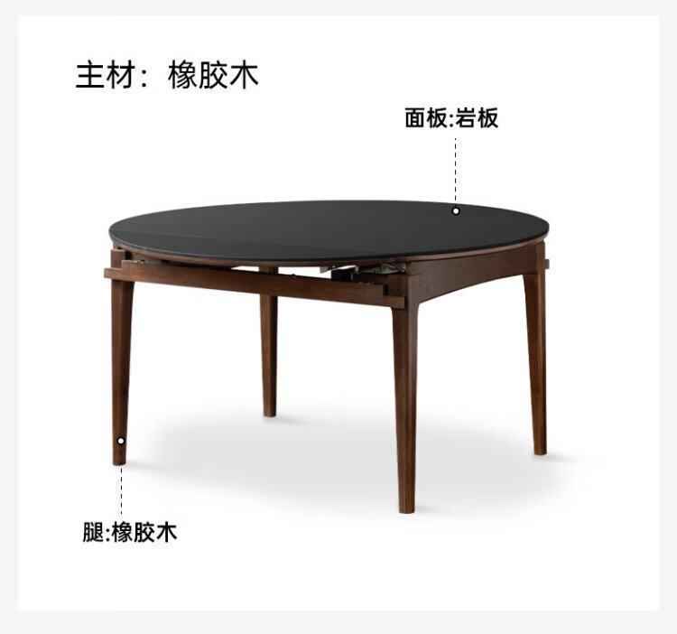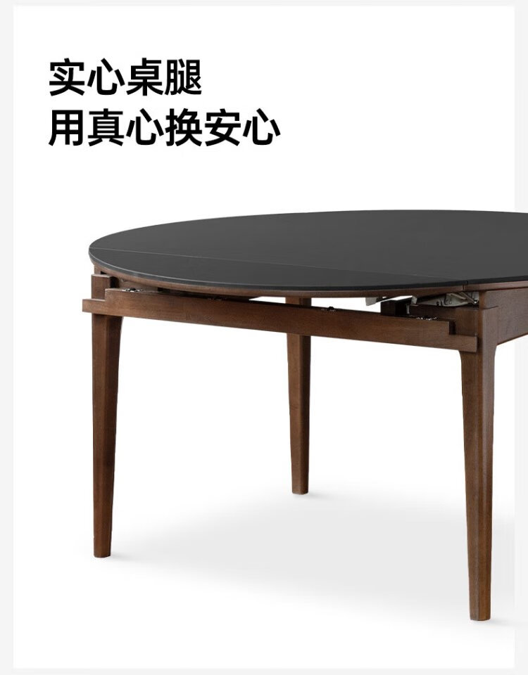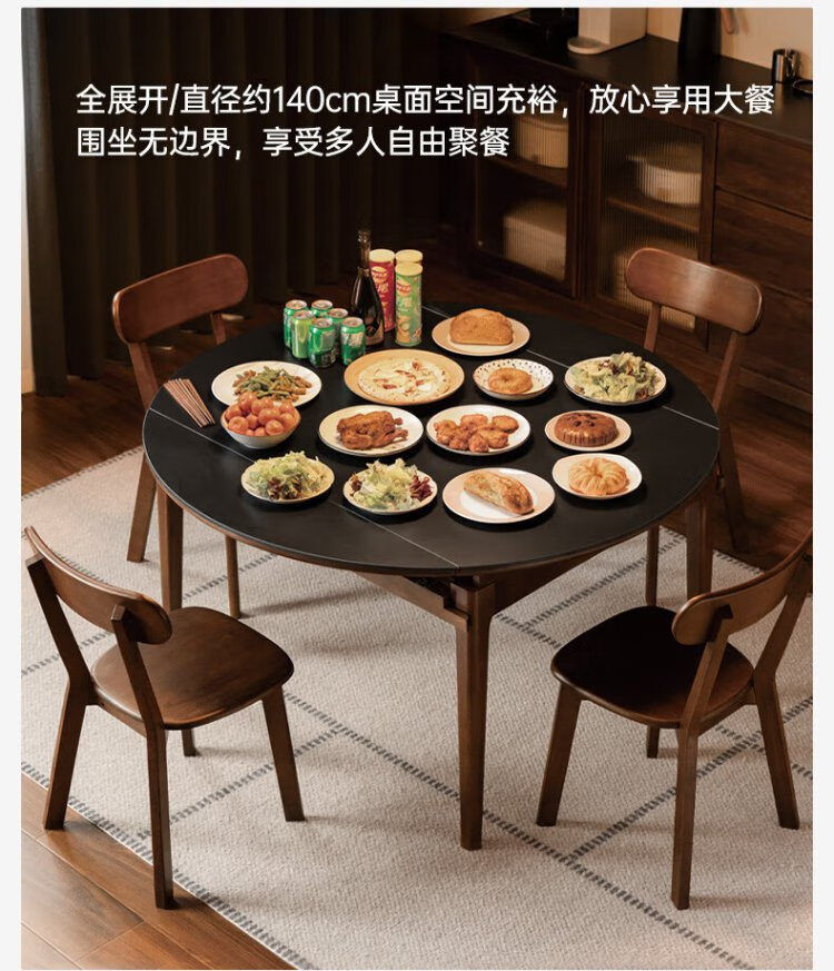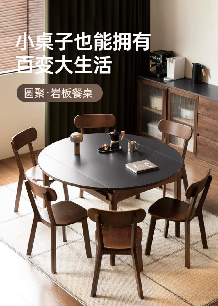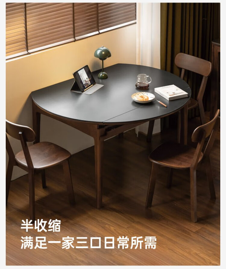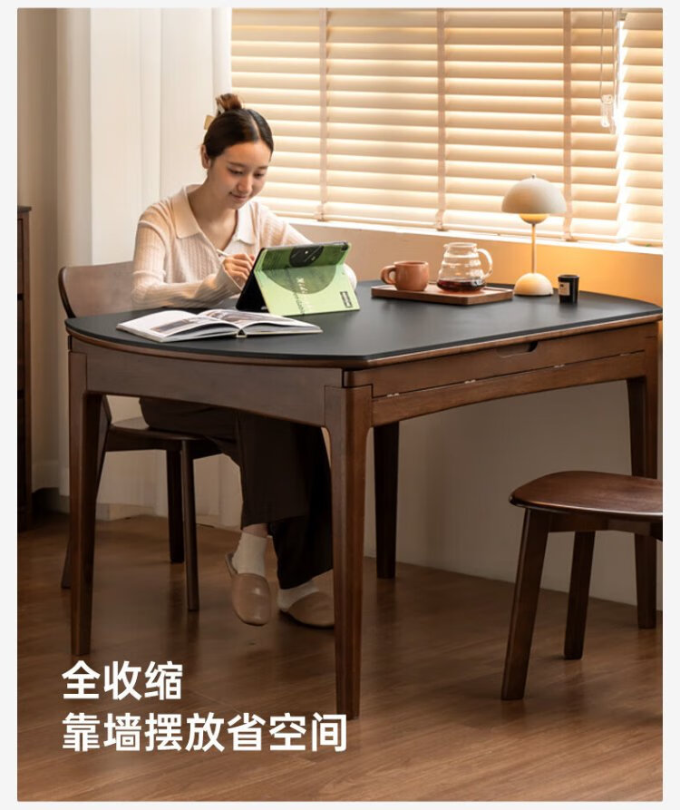 Genji Wood Language Selected Solid Wood Dining Table Modern Simple Slate Surface Dining Table Rubber Wood Multifunctional Retractable Folding Dining Table 0.86-1.3m Pure Black Slate Dining Table + Chairs*4