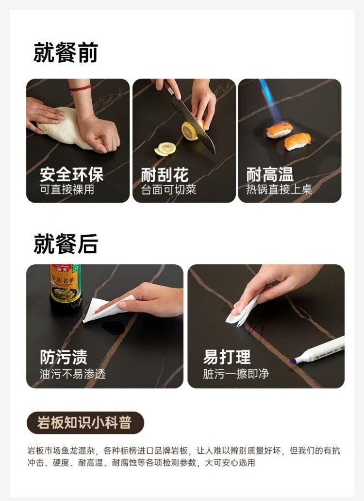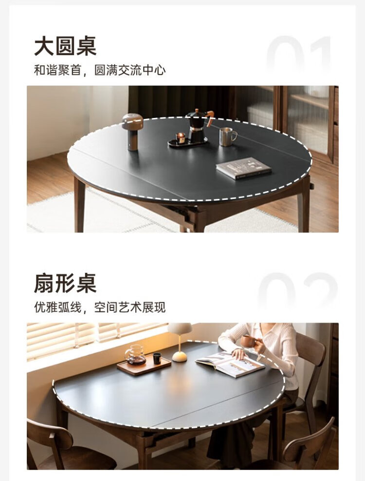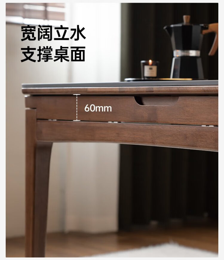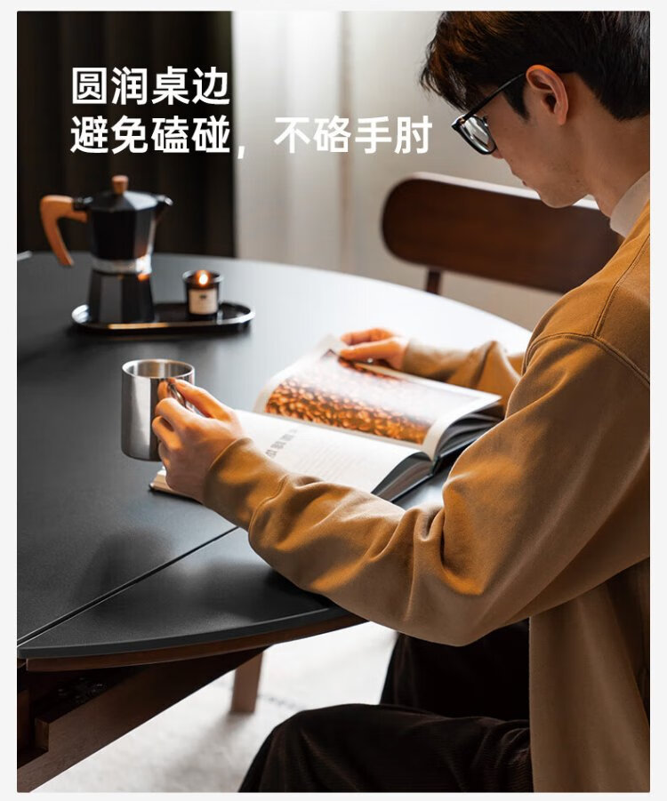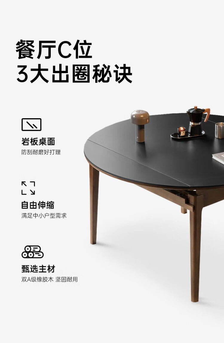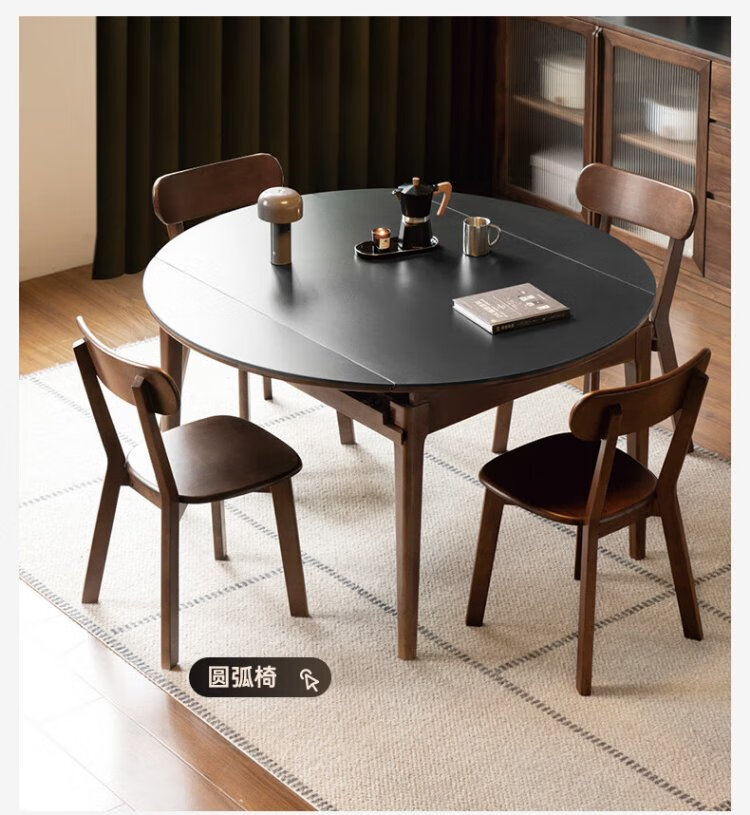Genji Wood Language Selected Solid Wood Dining Table Modern Simple Slate Surface Dining Table Rubber Wood Multifunctional Retractable Folding Dining Table 0.86-1.3m Pure Black Slate Dining Table + Chairs*4