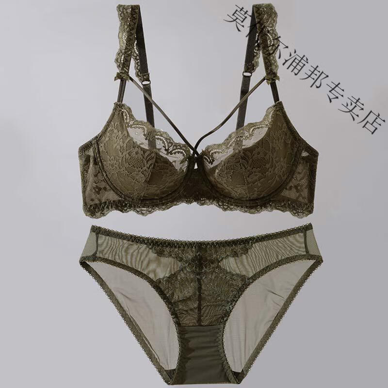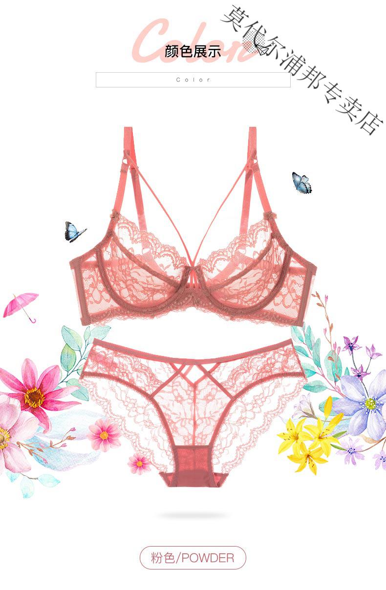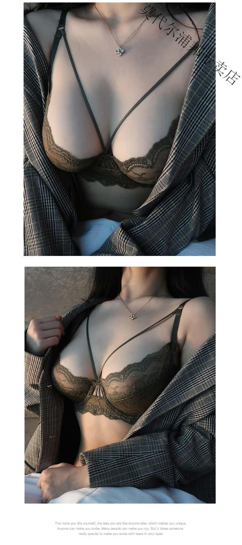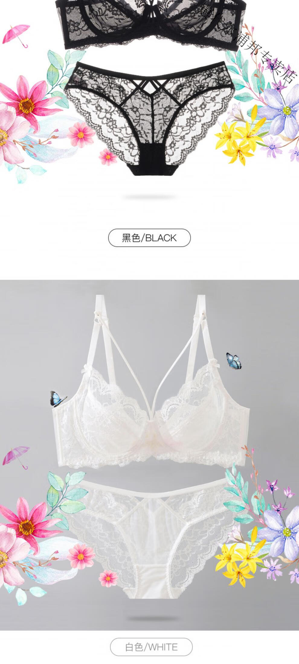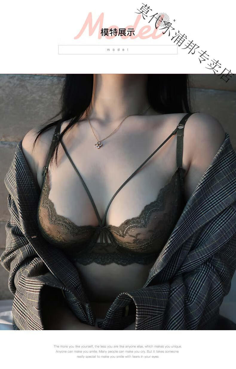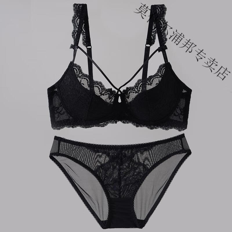 Modal Sexy Pure Desire Thin Underwear Set Women's Big Breast Revealing Small Breast Push Up Large Size Bra Black 0.3CM Thin Cotton 80B =36B