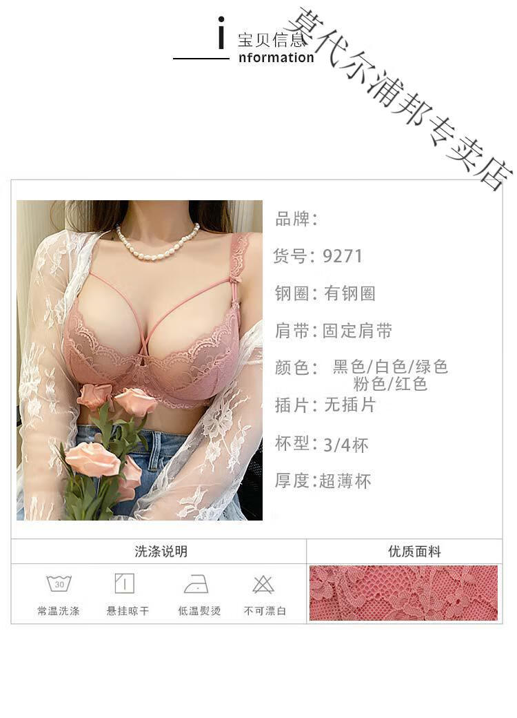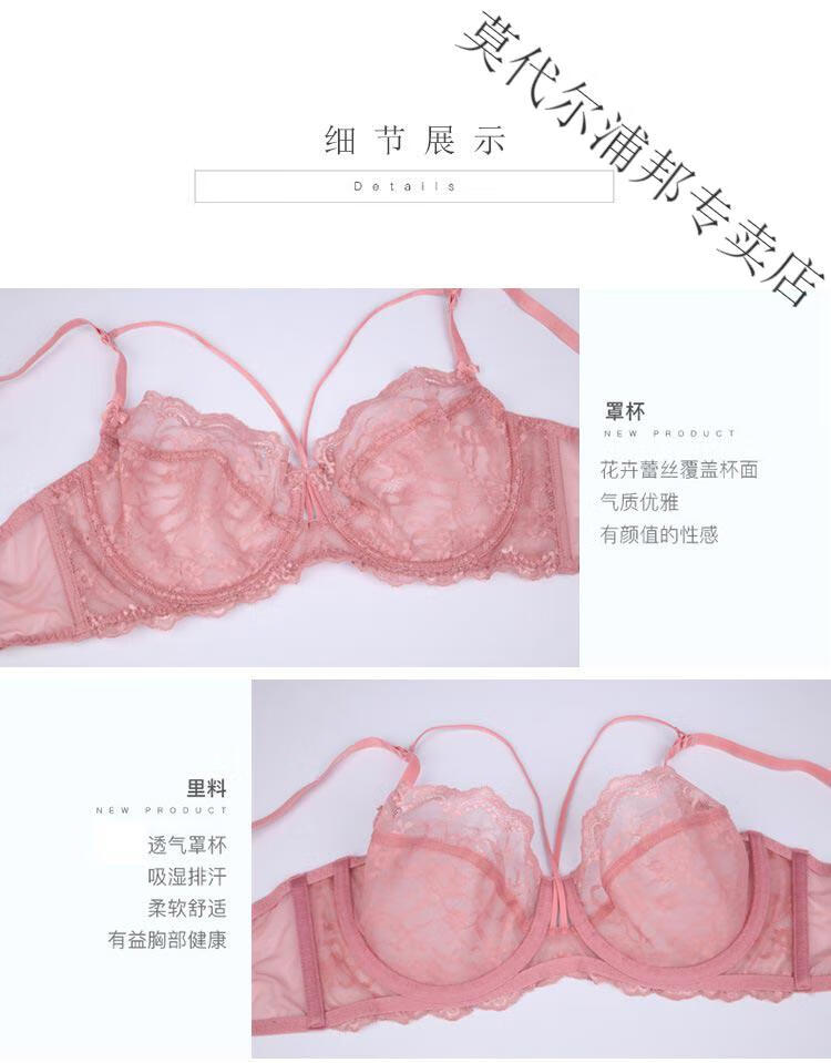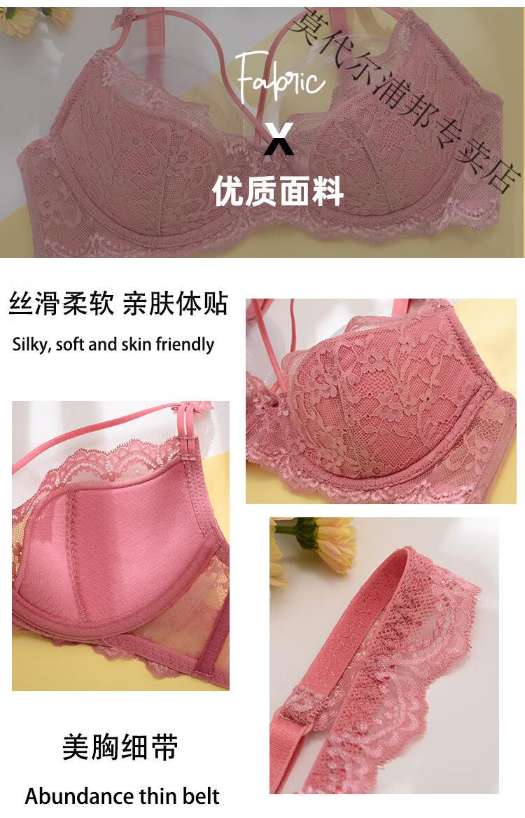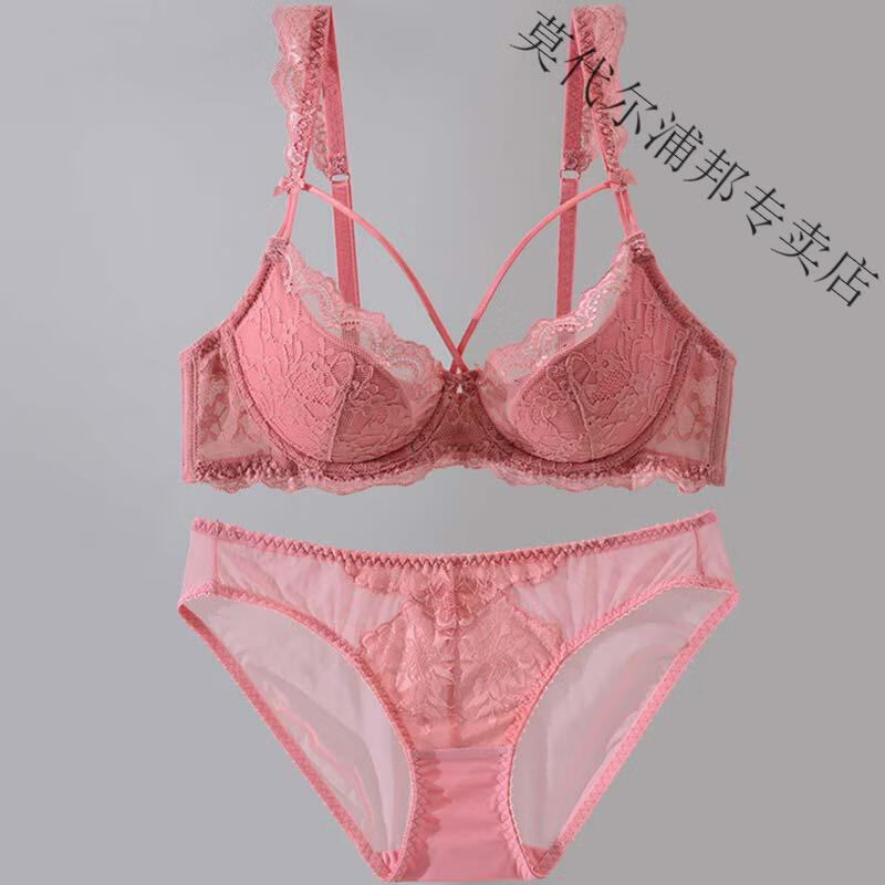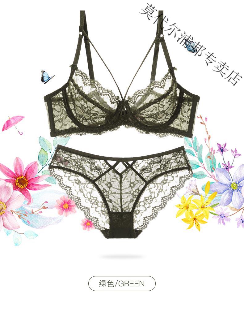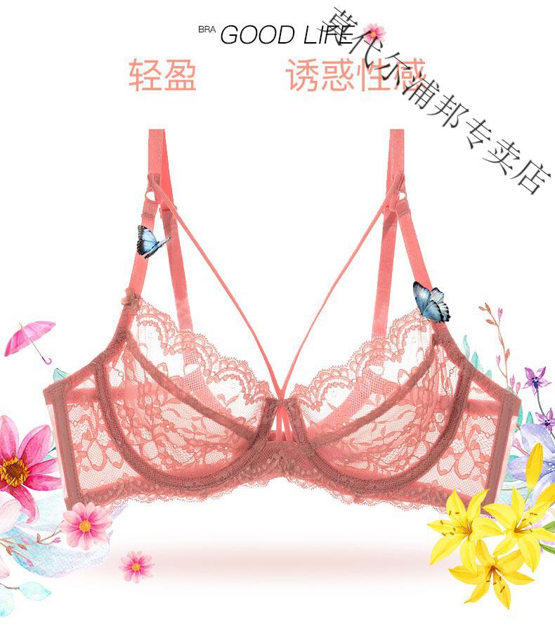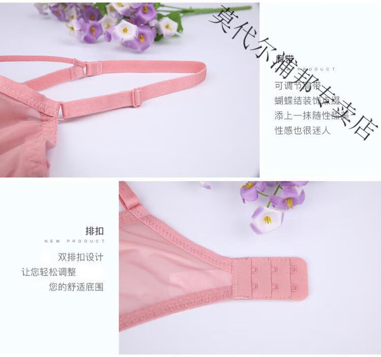 Modal Sexy Pure Desire Thin Underwear Set Women's Big Breast Revealing Small Breast Push Up Large Size Bra Black 0.3CM Thin Cotton 80B =36B