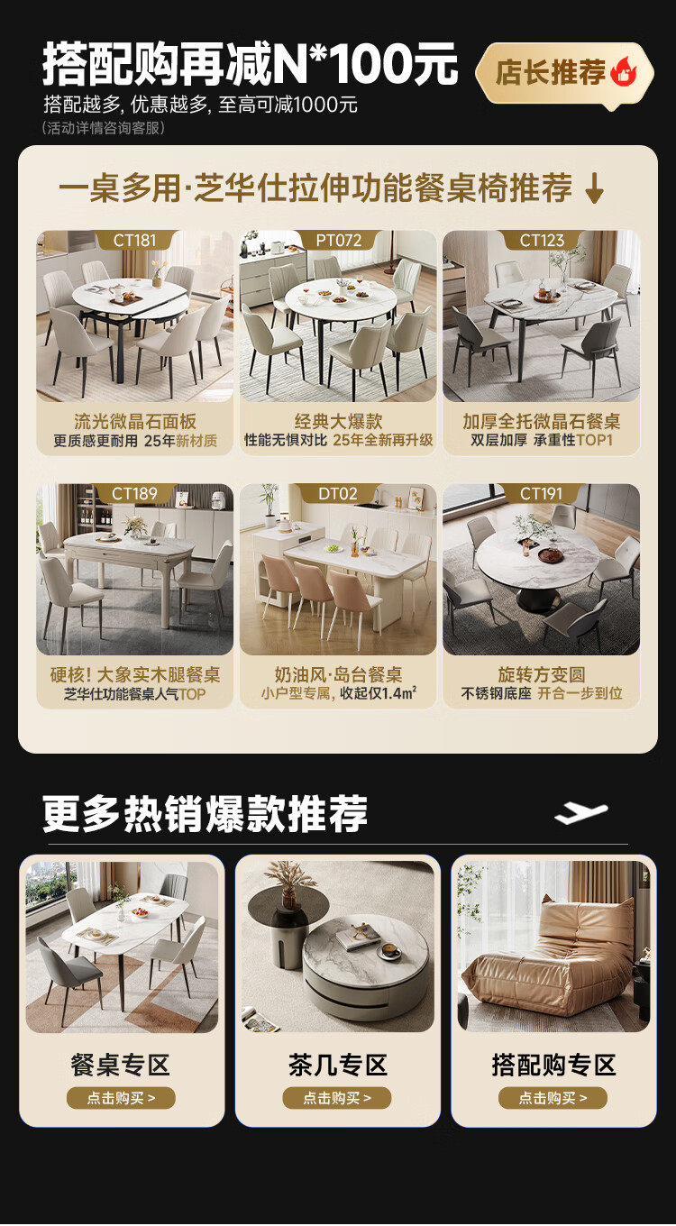 Chivas microcrystalline stone dining table light luxury and high-end 2025 new folding retractable home small apartment CT189 Chivas Regal CT189 dining table + 11671 dining chairs 4 priority delivery (ask customer service for details)