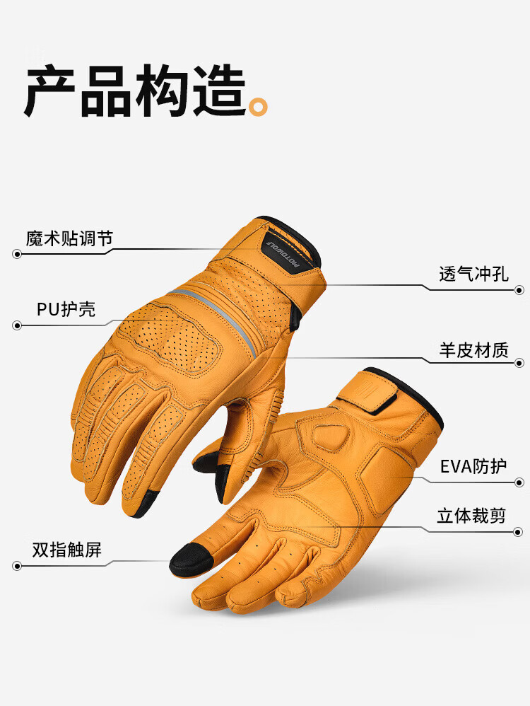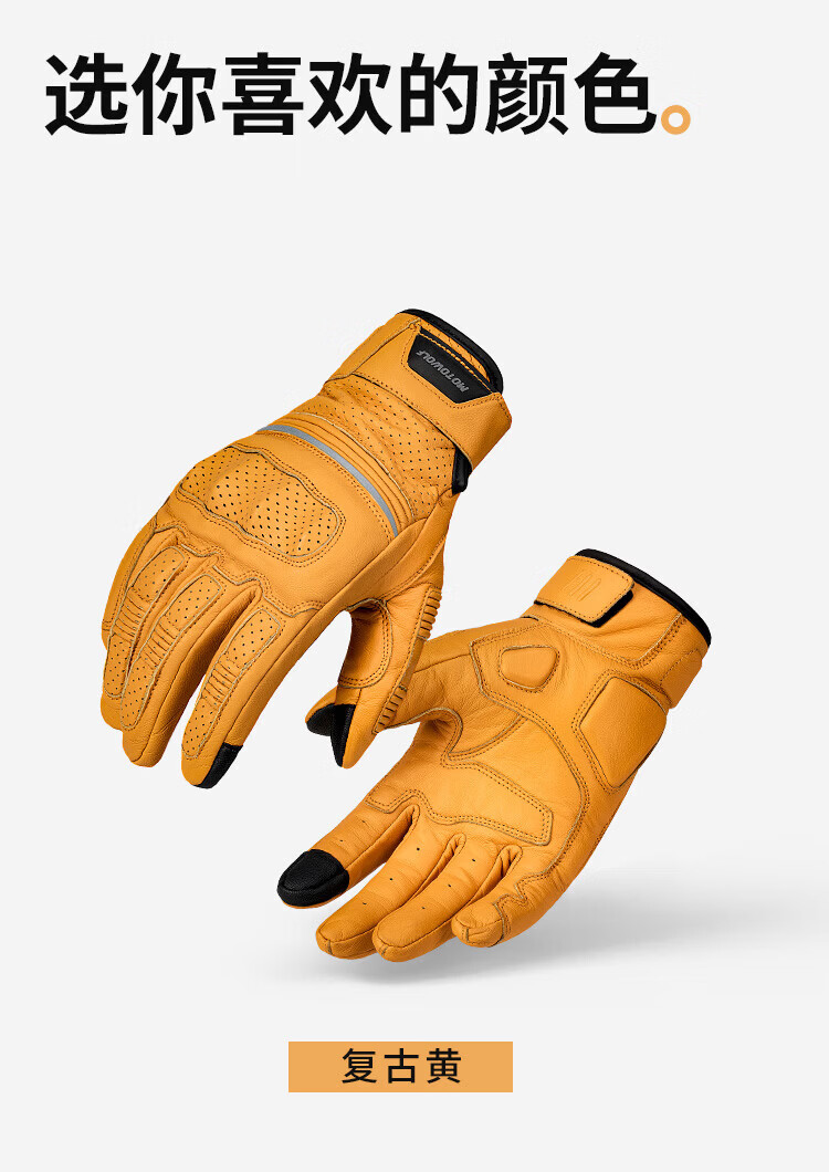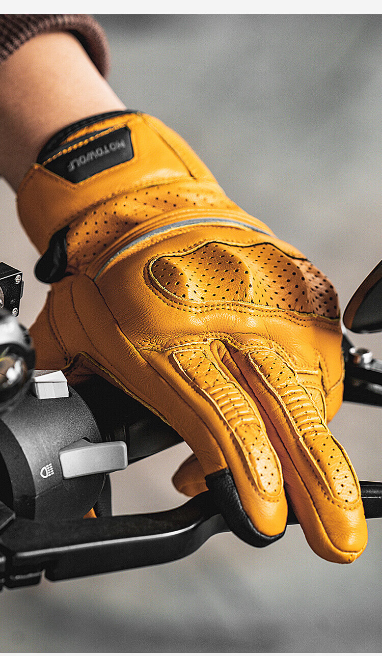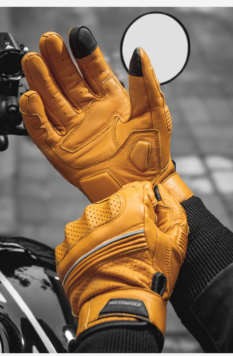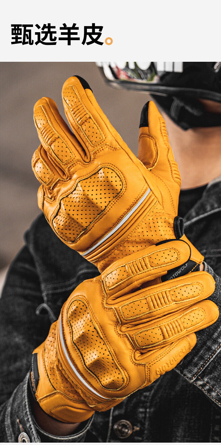 MOTOWOLF Summer Motorcycle Gloves Retro Breathable Genuine Leather All-Season Cycling Equipment Motorcycle Rider Equipment for Men Shadow Black Genuine Sheepskin/Mesh Breathable XL Two-finger Touch Screen