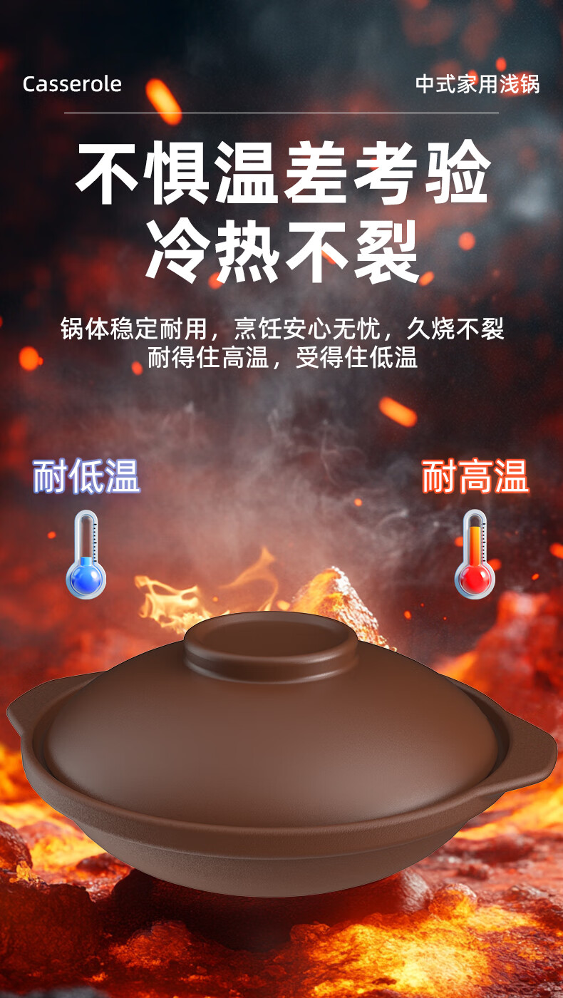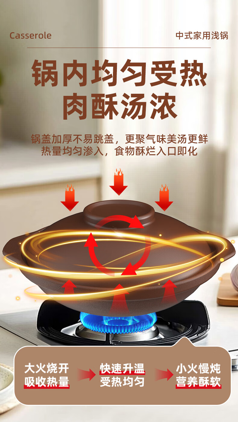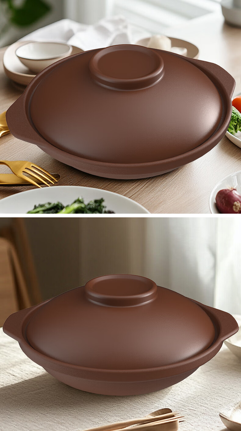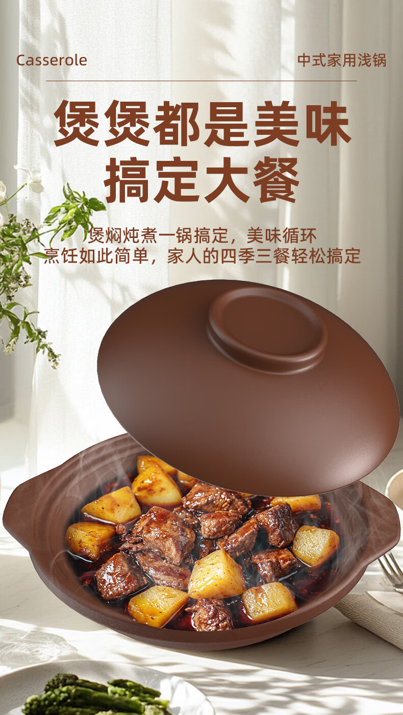 Kangshu Purple Clay Clay Pot Household Stewing Pot Earthen Clay Pot High Temperature Resistant Dry Burning Non-Cracking Gas Stove Special Clay Rice Pot Shallow Pot Stone Pot Kangshu Purple Clay Shallow Pot for 3-5 People 2500ml