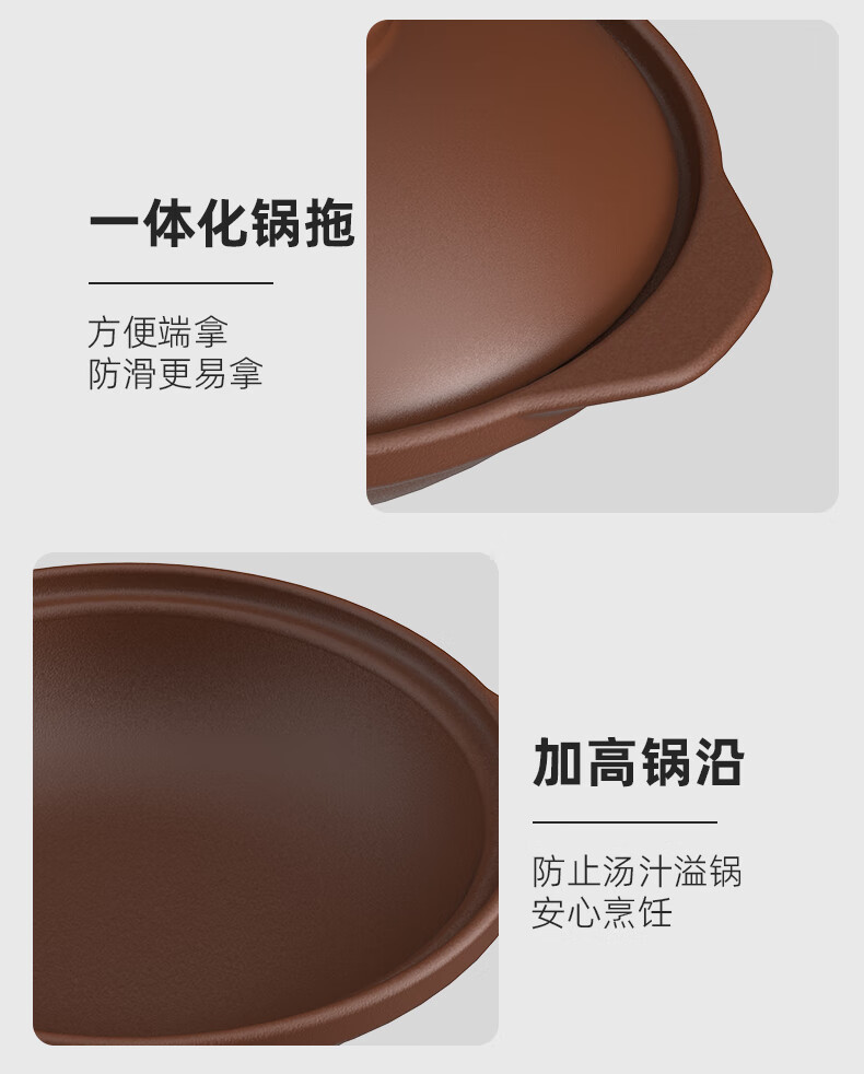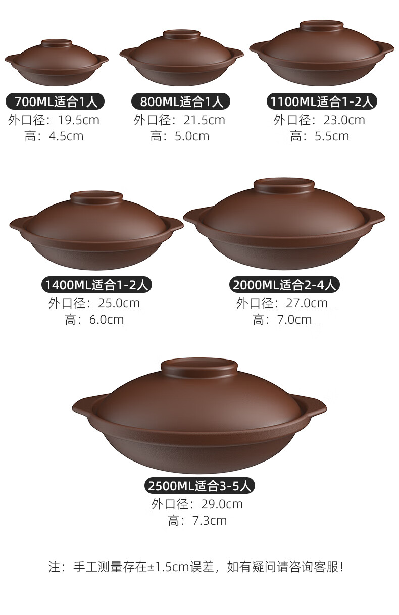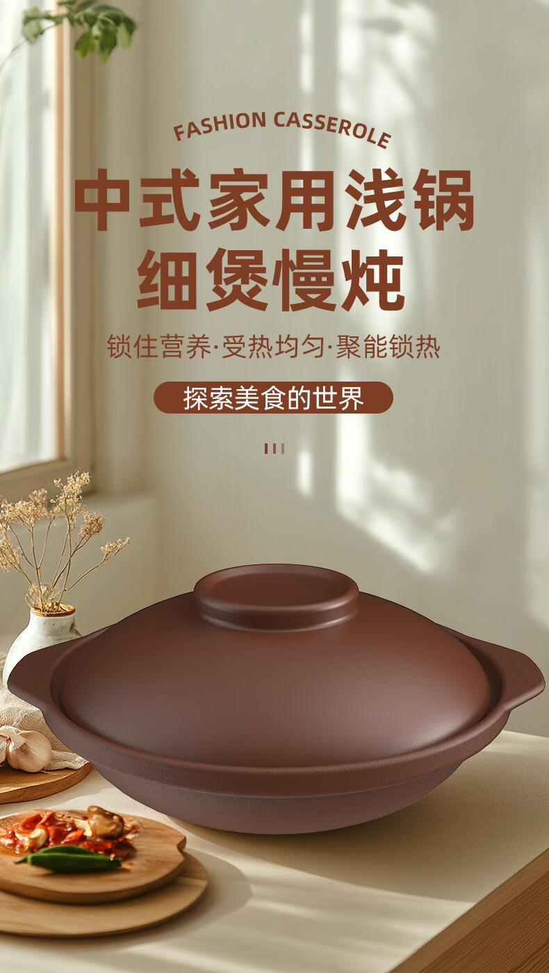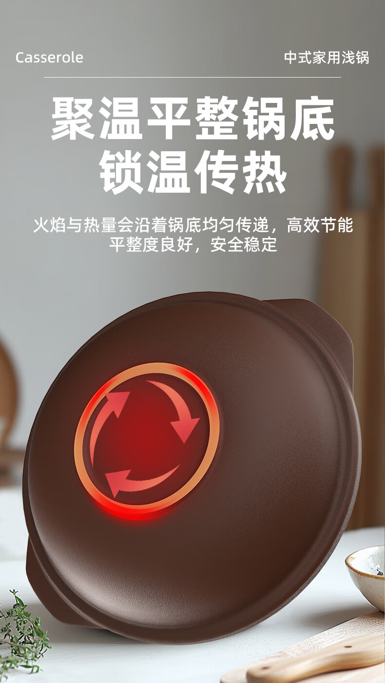 Kangshu Purple Clay Clay Pot Household Stewing Pot Earthen Clay Pot High Temperature Resistant Dry Burning Non-Cracking Gas Stove Special Clay Rice Pot Shallow Pot Stone Pot Kangshu Purple Clay Shallow Pot for 3-5 People 2500ml