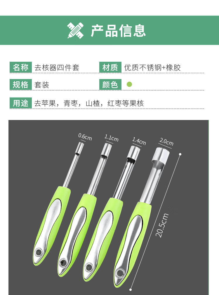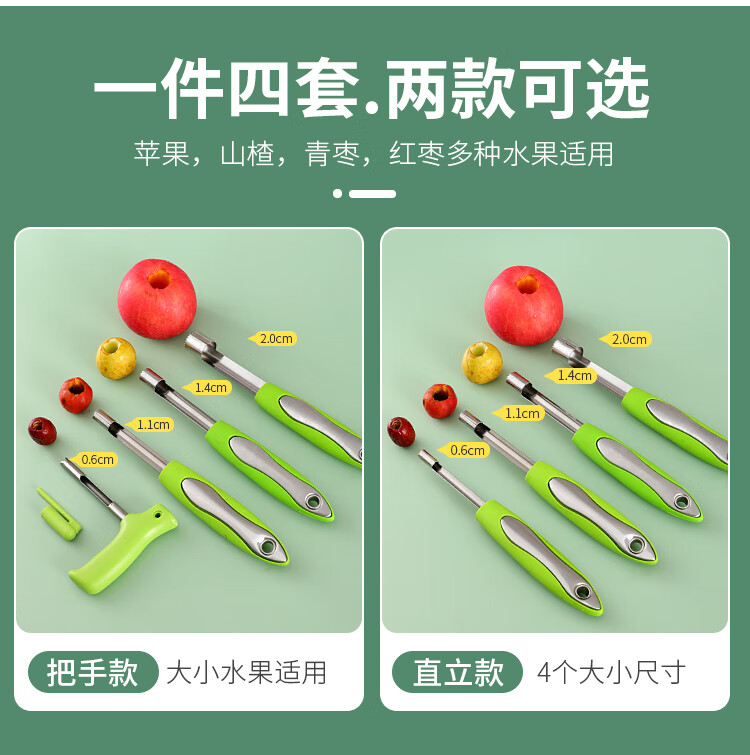 Jingxingsha fruit corer, household multifunctional hawthorn and red date corer, glycerin coring fruit tool set of four, set of four stand-up corer suitable for a variety of fruits
